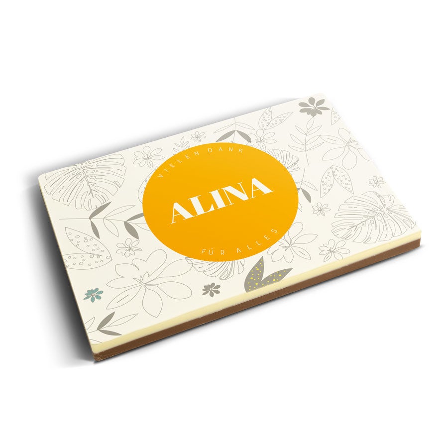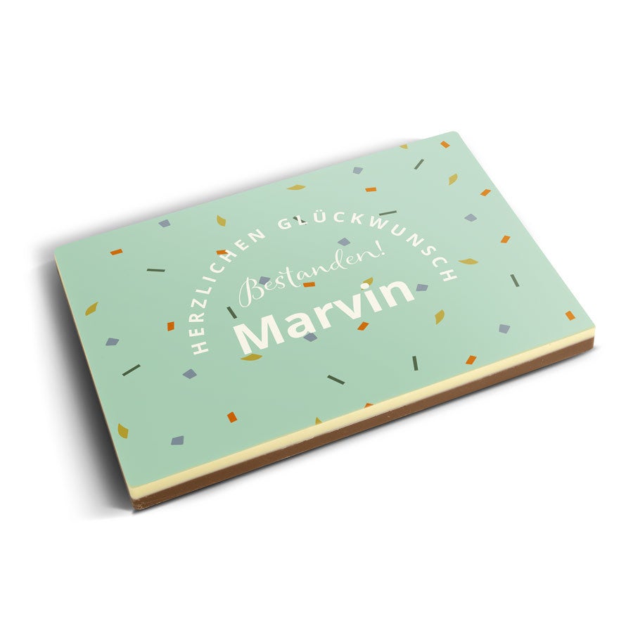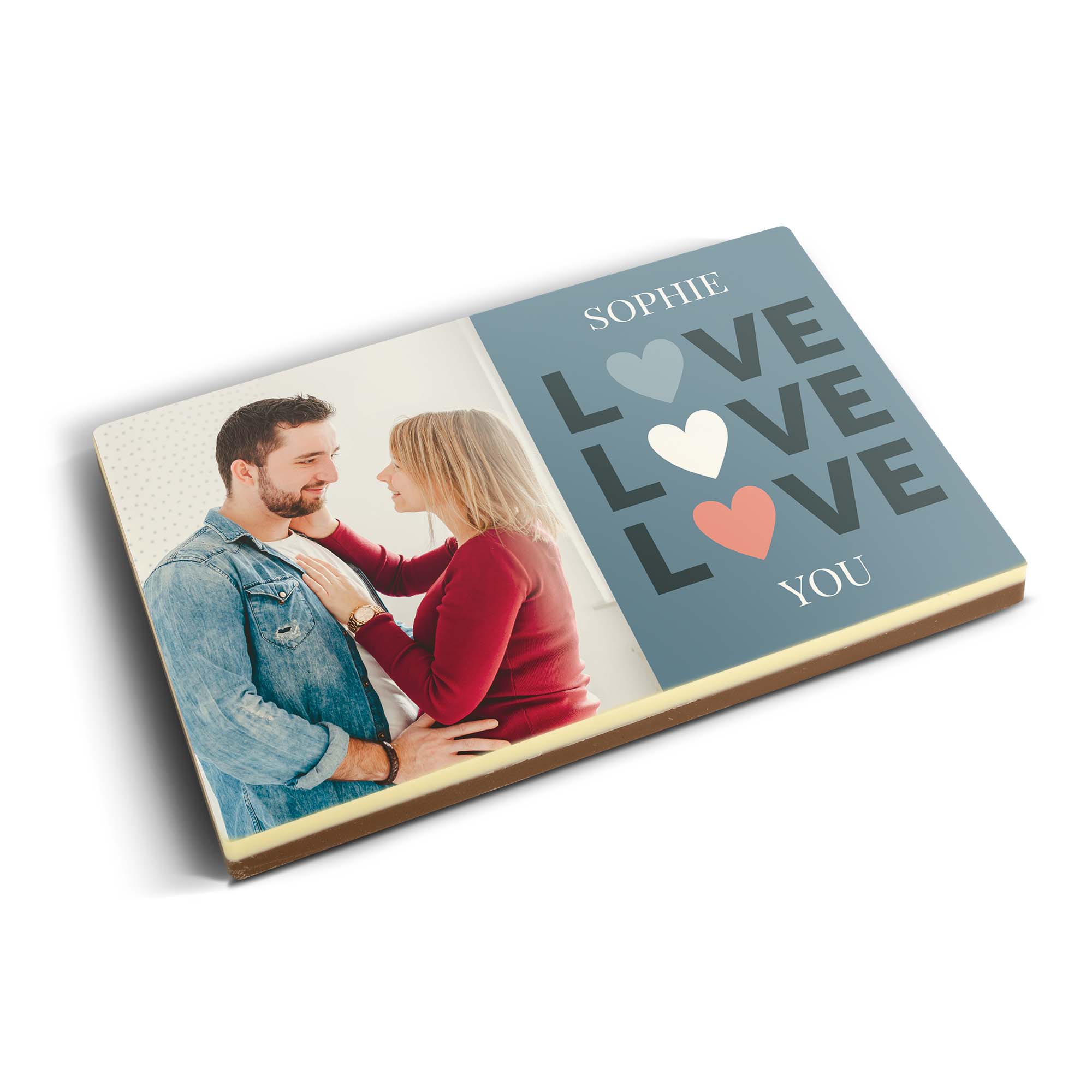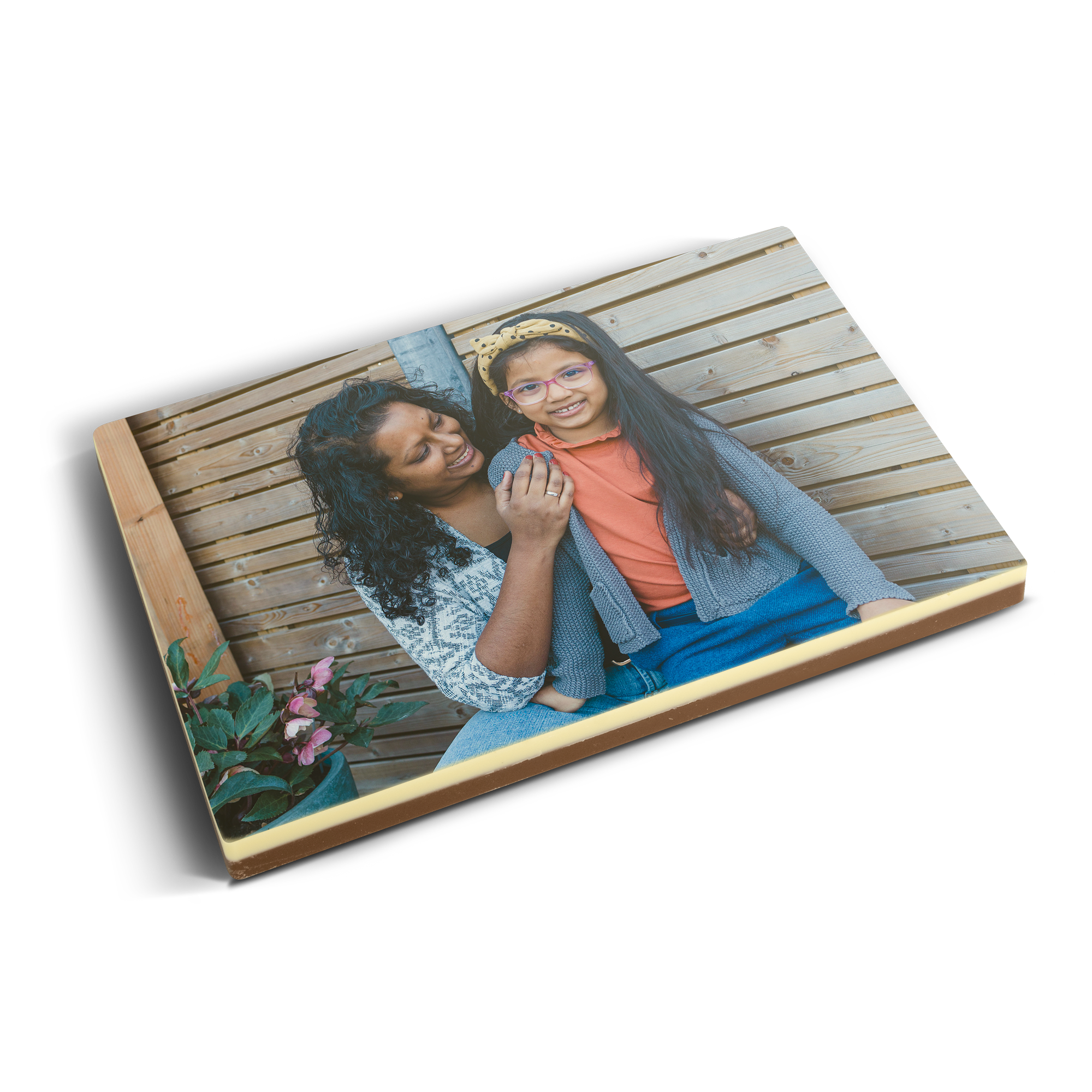 Подробнее о фотографии на шоколаде:Вкус шоколада: молочный с белым верхним слоемРазмер: 16,3 x 10,8 x 1,2 смВес: 240 граммов шоколадаПерсонализация: печать с фото и логотипомПечать: полноцветная съедобная печатьПри температуре 25°C или выше рекомендуем добавить в заказ охлаждающий элемент. Рекомендации по хранению: Можно хранить до 10 недель в прохладном, темном месте при температуре от 14 до 18°C. Информация об аллергенах: содержит сою, молоко и может содержать следы орехов.Состав:Молочный шоколад: сахар, какао-масло, сухое цельное молоко, какао-масса, эмульгатор (соевый лецитин), натуральный ароматизатор ванили. Не менее 34% какао-продуктов. Белый шоколад: сахар, какао-масло, сухое цельное молоко, эмульгатор (соевый лецитин), натуральный ароматизатор ванили. Содержание какао-продуктов не менее 29%.