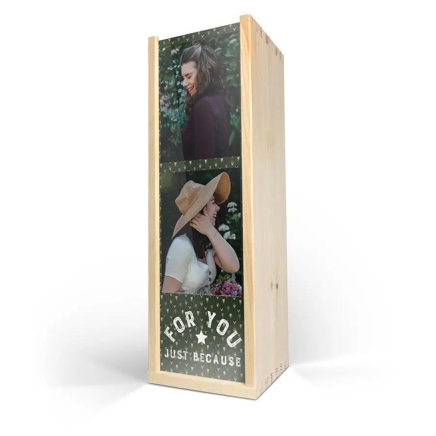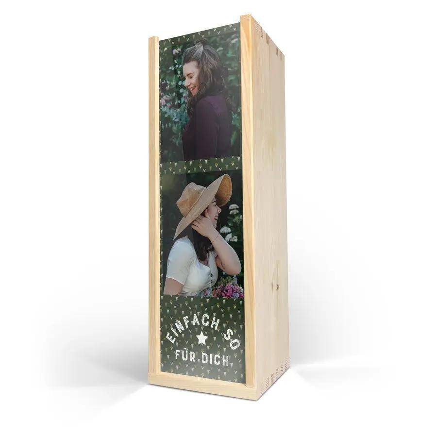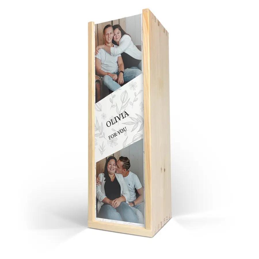 Изысканное вино Maison de la Surprise в роскошном деревянном футляре с фотографией, логотипом и/или текстом по вашему выбору. Создайте свой прямо сейчас!