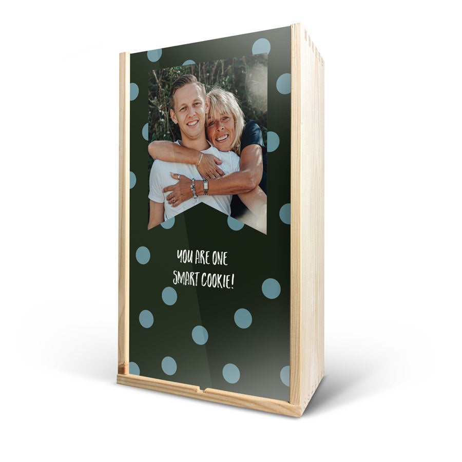 Деревянный футляр из FSC-сертифицированной древесины, возможность персонализации с фото, текстом или логотипом.