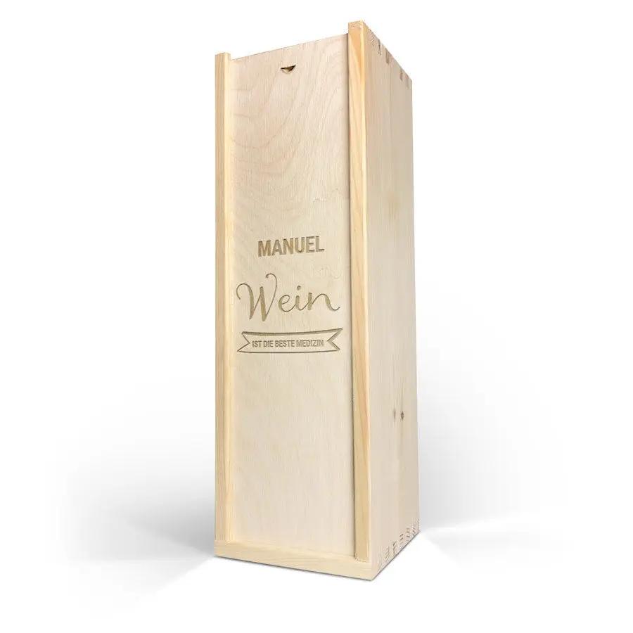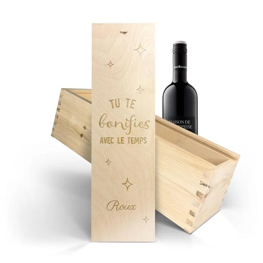 Восхитительное вино Maison de la Surprise в роскошном деревянном футляре с указанием имени и/или текста по вашему выбору. Создайте свой прямо сейчас!