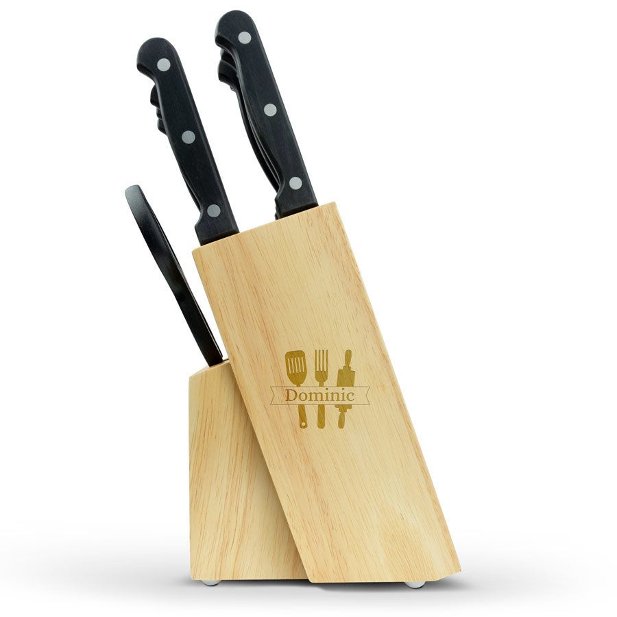 Деревянный блок ножа (включая набор ножей) - Право гравировки
