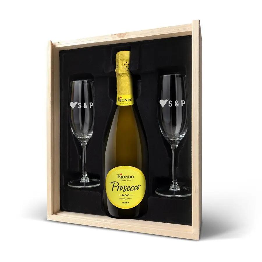 Подарочный набор шампанского с гравированными очками - Riondo Prosecco Spumante