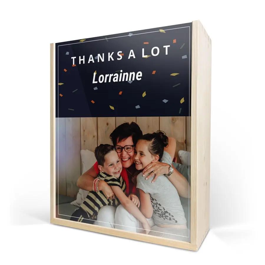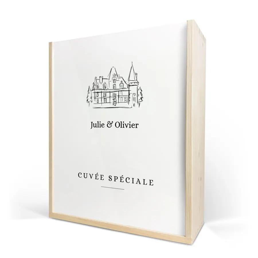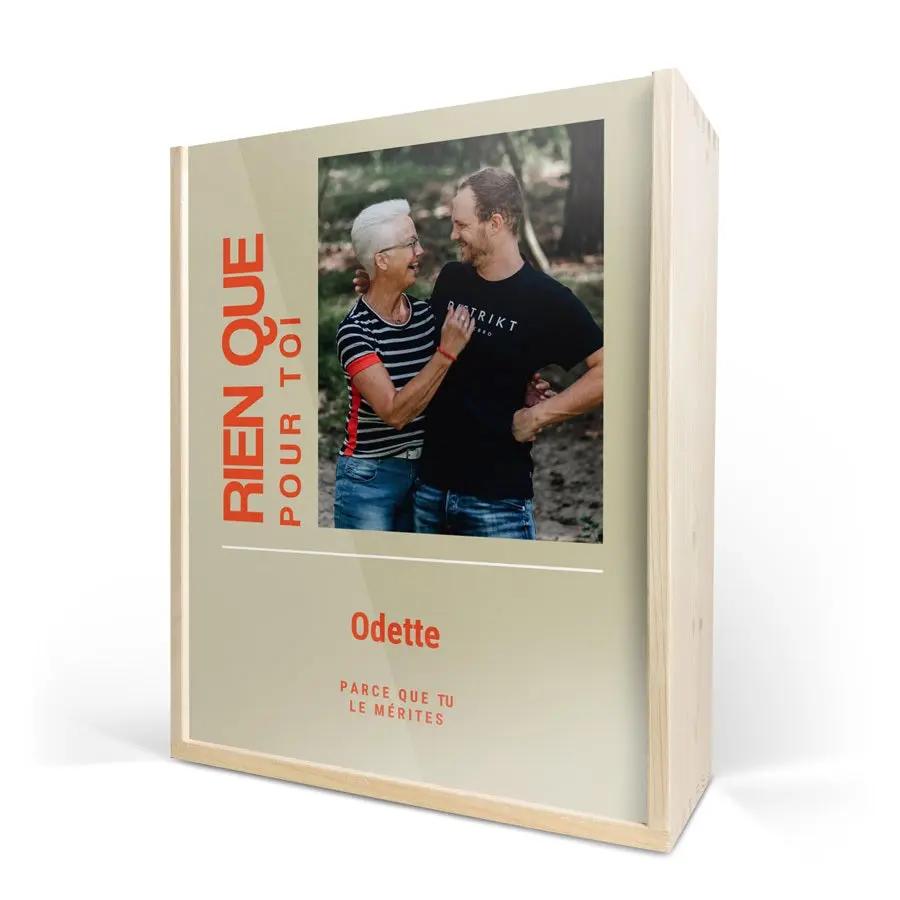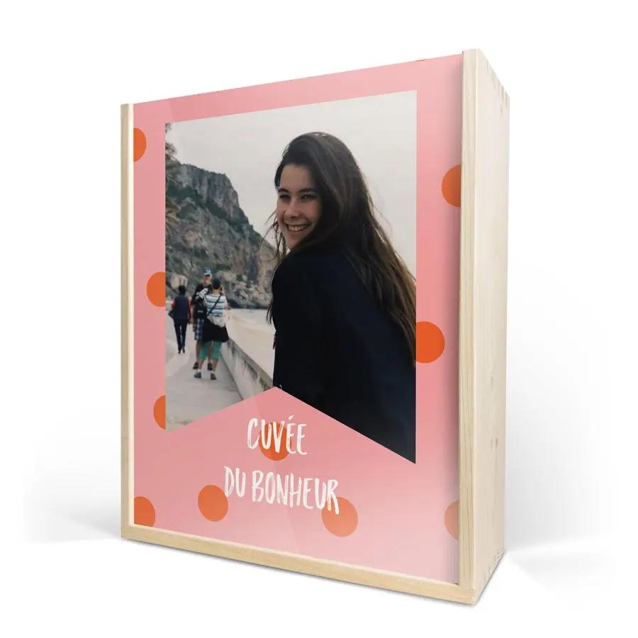 Бутылка изысканного вина в роскошном персонализированном футляре. С фотографией, логотипом, коллажем, именем и/или текстом по вашему выбору!