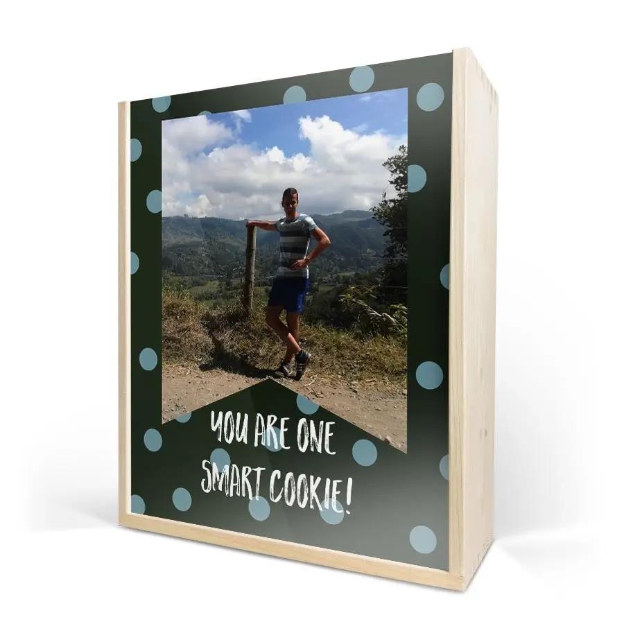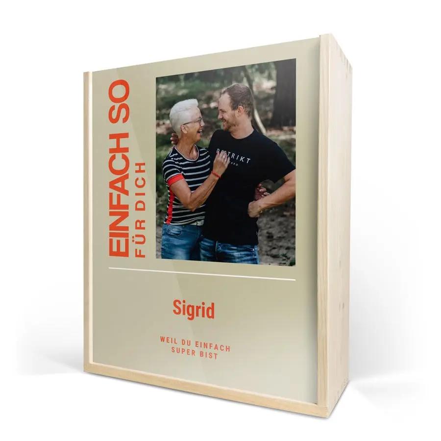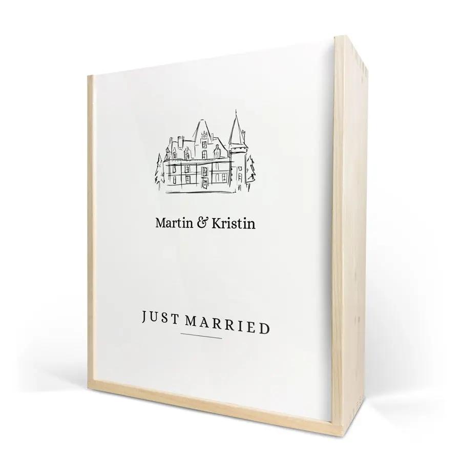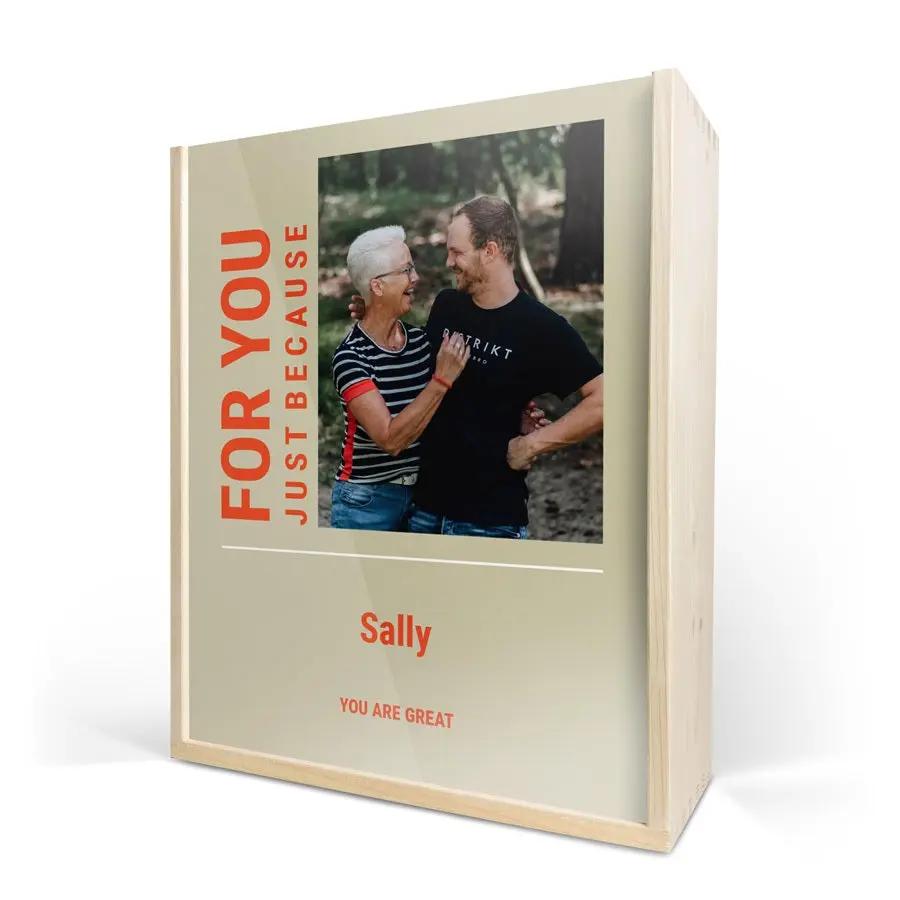 Бутылка изысканного вина в роскошном персонализированном футляре. С фотографией, логотипом, коллажем, именем и/или текстом по вашему выбору!