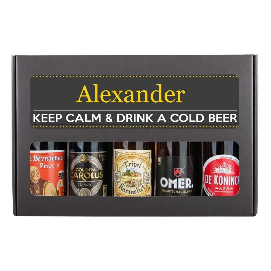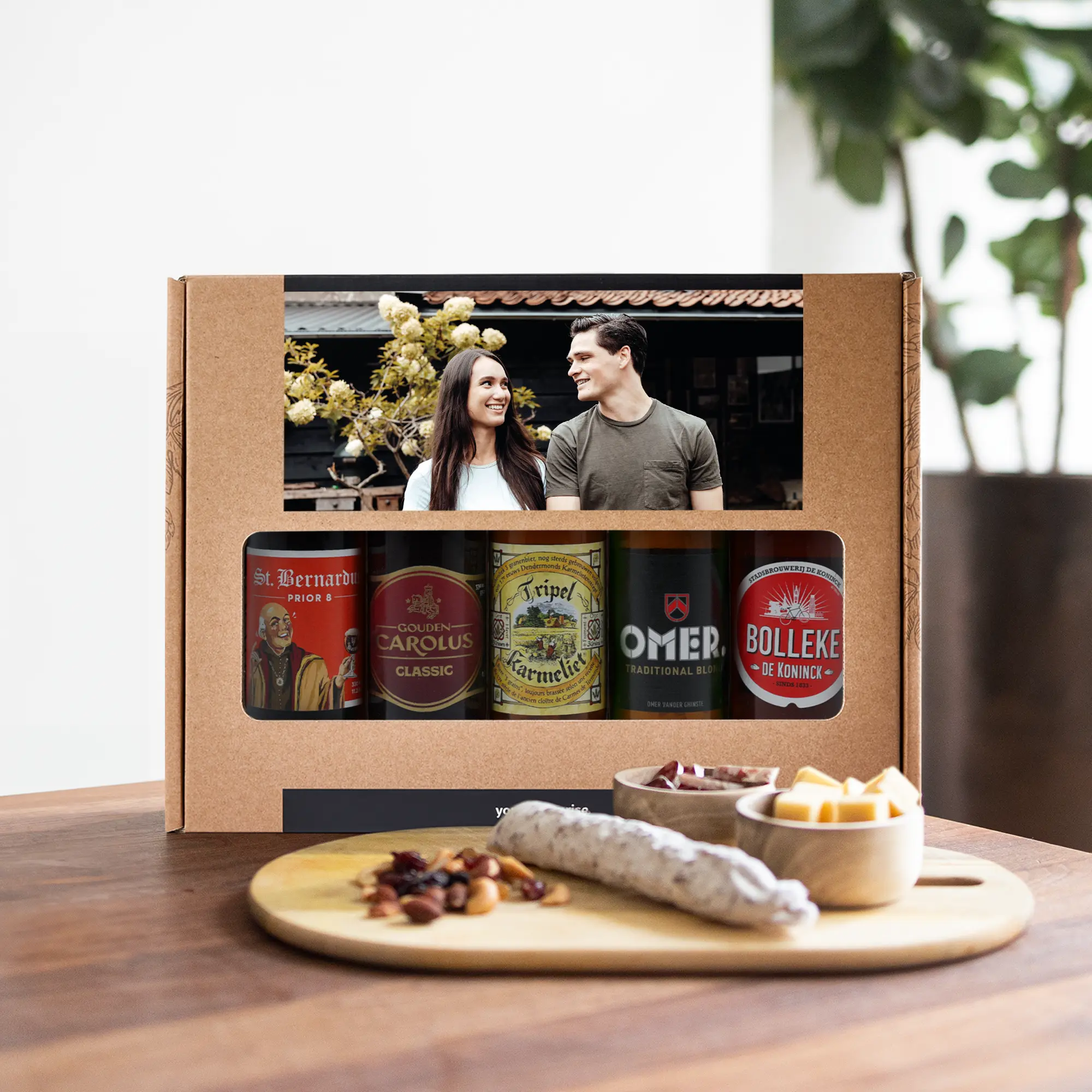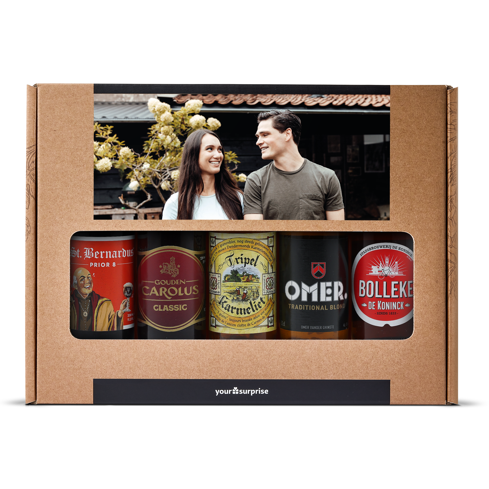 Вкусный подарочный набор с вашим фото и текстом, состоящий из 5 различных сортов бельгийского пива. С индивидуальным дизайном!