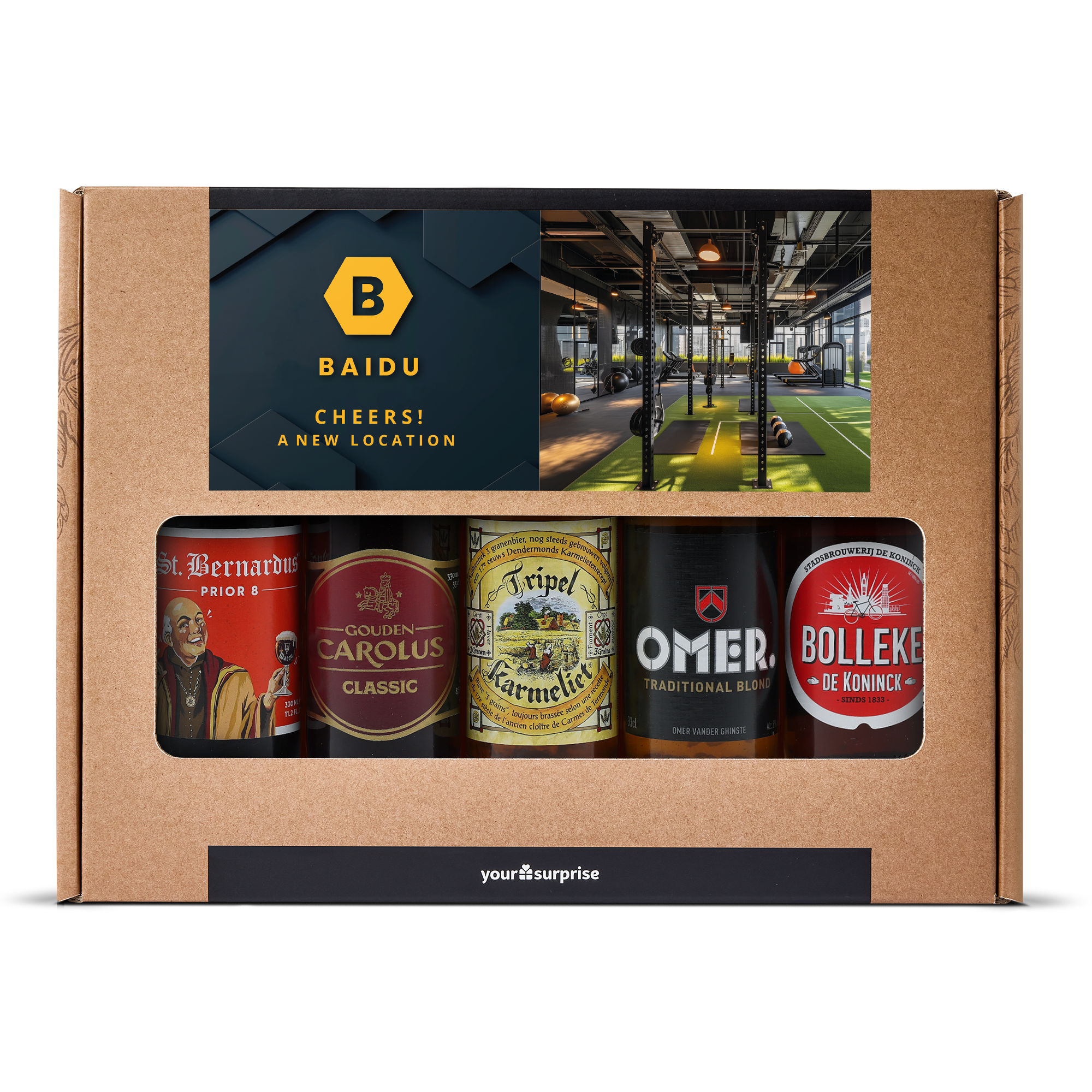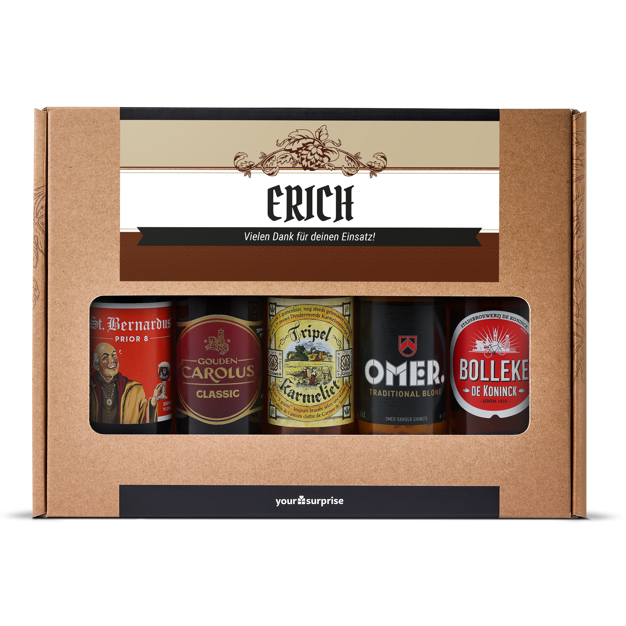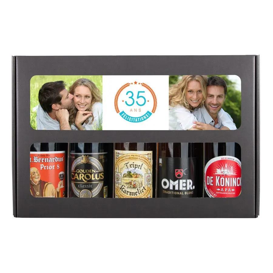 Вкусный подарочный набор с вашим фото и текстом, состоящий из 5 различных сортов бельгийского пива. С индивидуальным дизайном!