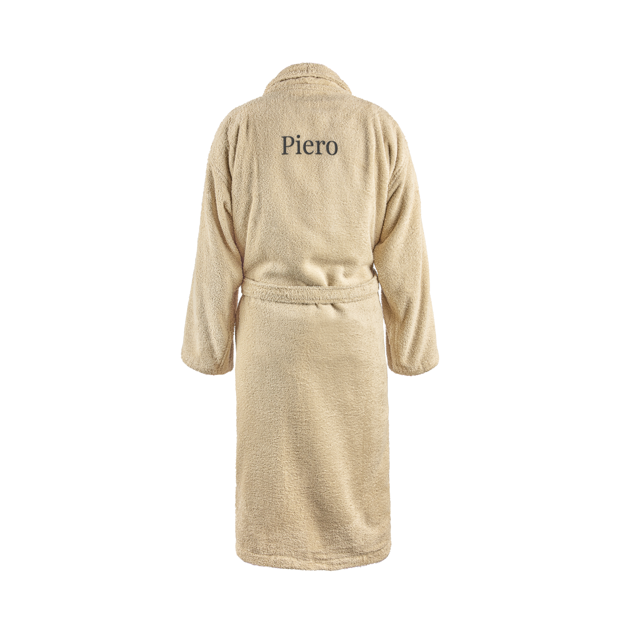Подробнее о халате:Цвет: бежевыйРазмер: L/XLМатериал: 100% мягкий хлопокКачество: 380 г/м²Модель: базоваяДлина: 120 смШирина плеч: 21 смШирина спинки: 65 смДлина рукава: 56 смПерсонализация: имя или текст на спинкеСпособ персонализации: красивая вышивкаДополнительная информация: антистатичная и дышащая тканьИнструкция по стирке: стирать при 40°C