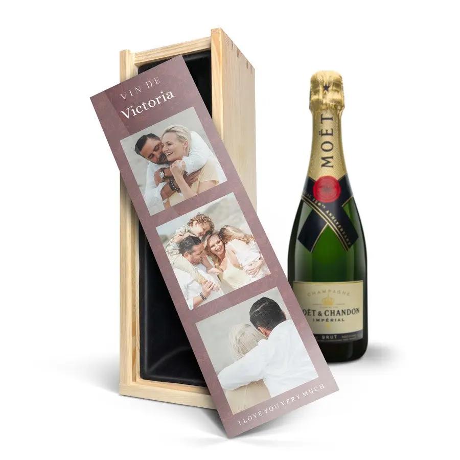 Персонализированный деревянный футляр делает этот подарок уникальным и незабываемым. Шампанское Moët & Chandon - символ роскоши и праздника.