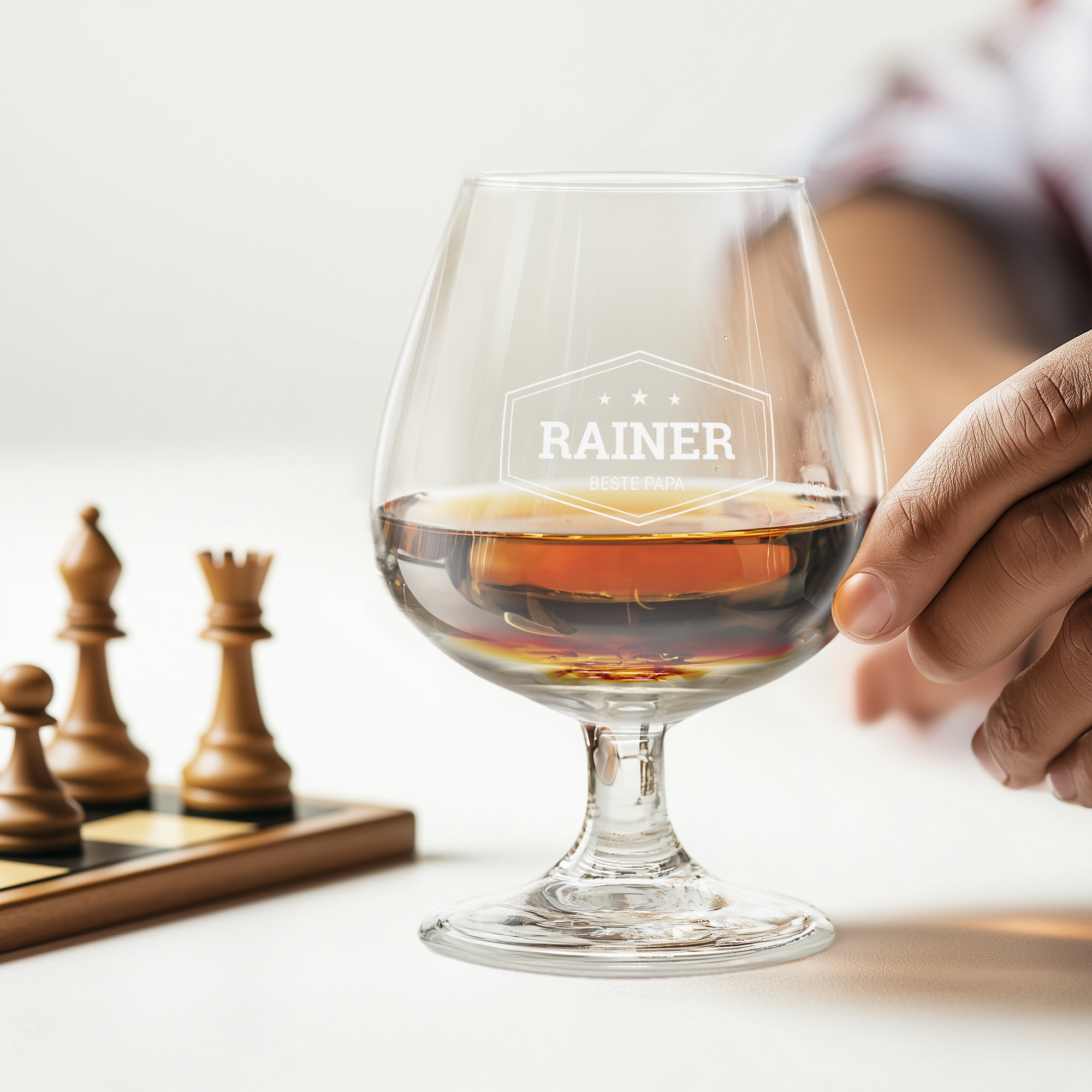 Подробнее о бокале для бренди:Диаметр: 7,5 смВысота: 12,5 смОбъём: 370 млПерсонализация: с гравировкой имени и/или текстаГравировка: белая, поэтому конечный результат отличается от изображения на предварительном просмотреДополнительно: Можно мыть в посудомоечной машинеЗакажите также именную бутылку бренди