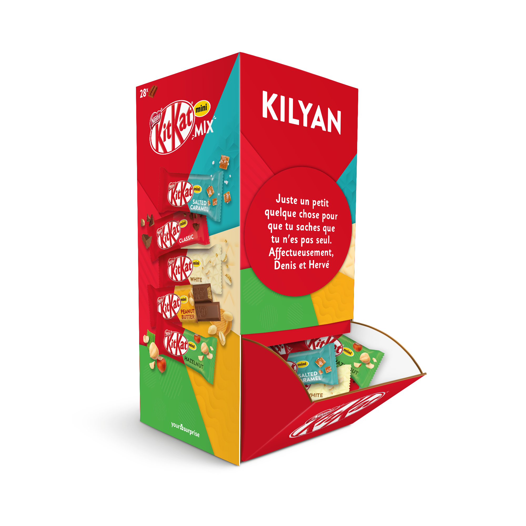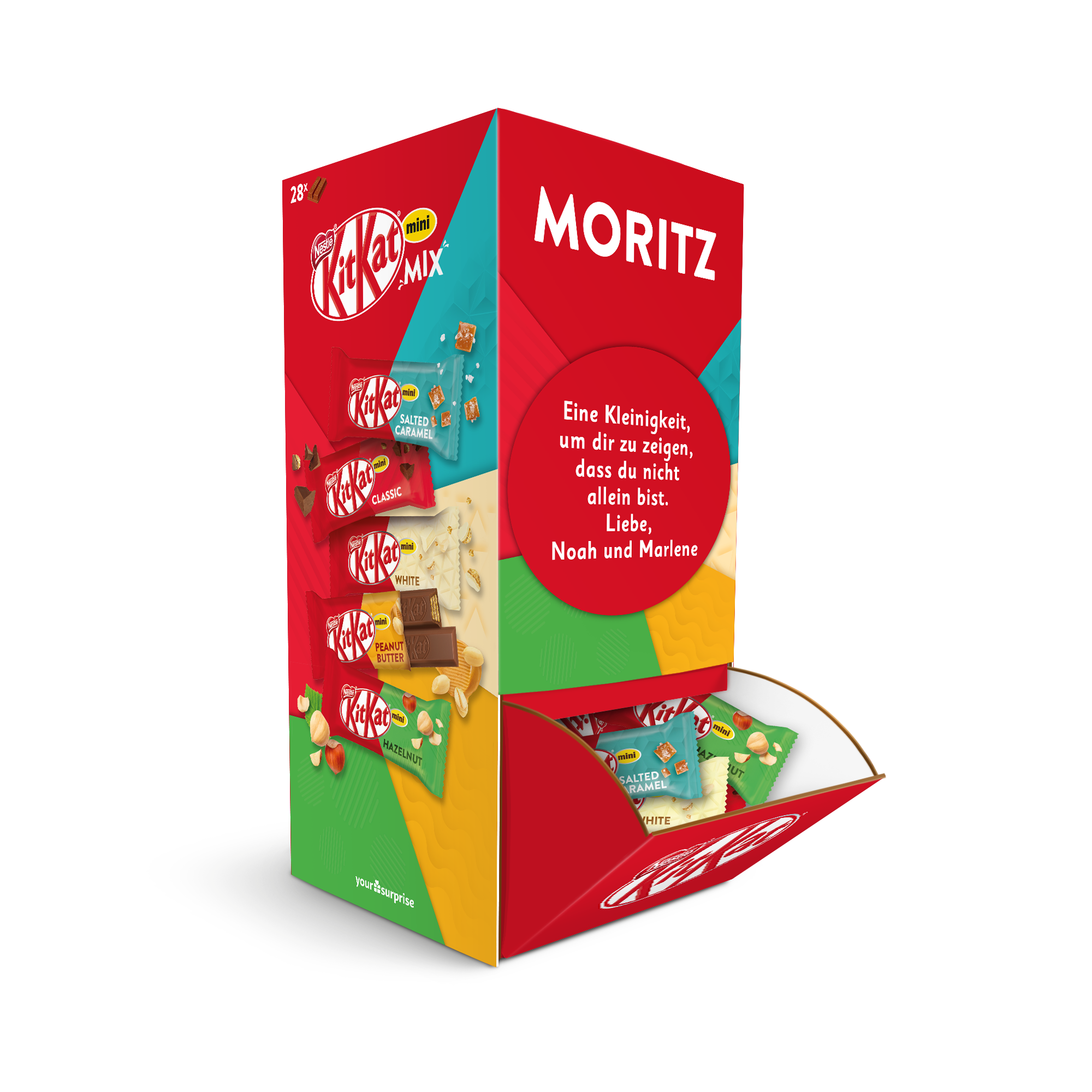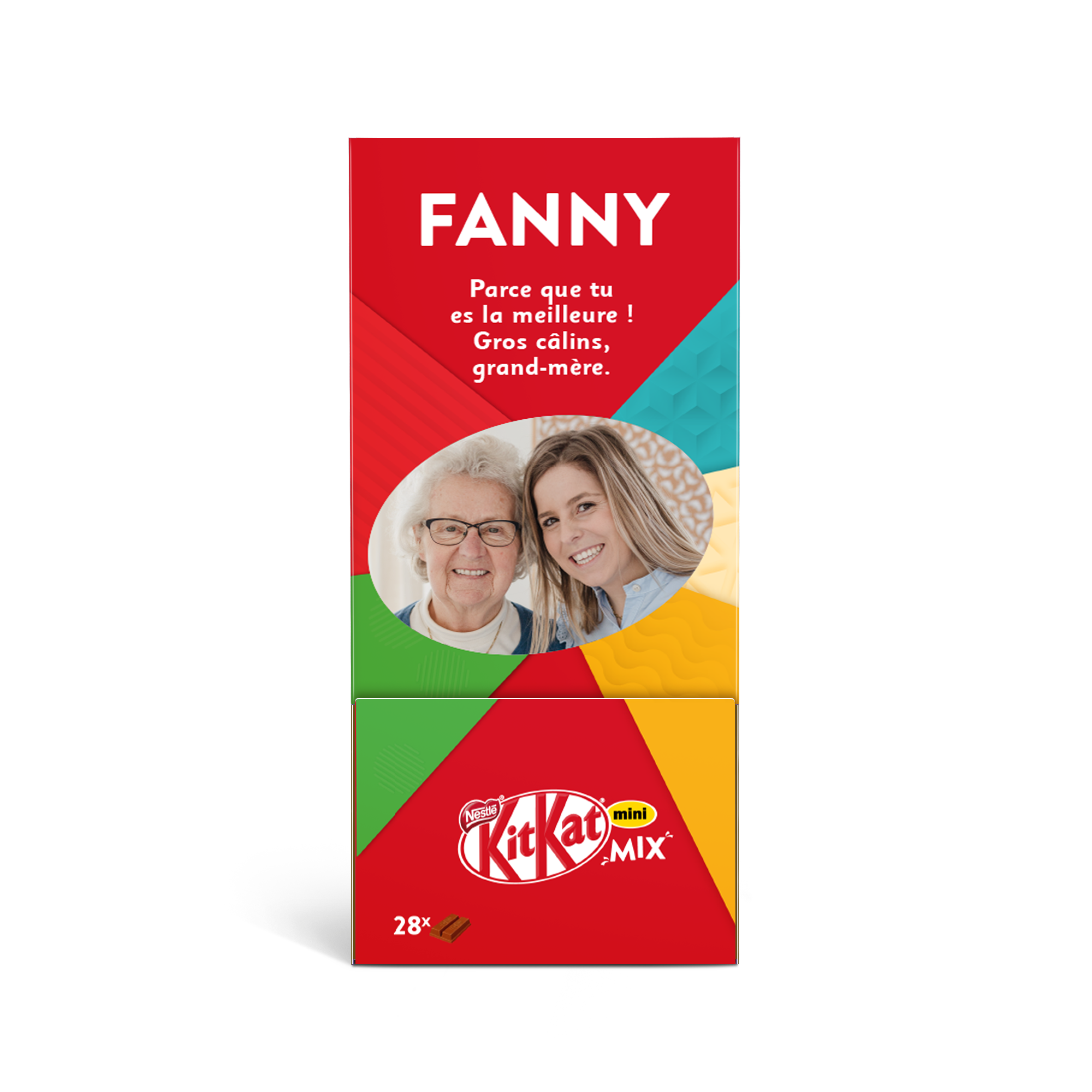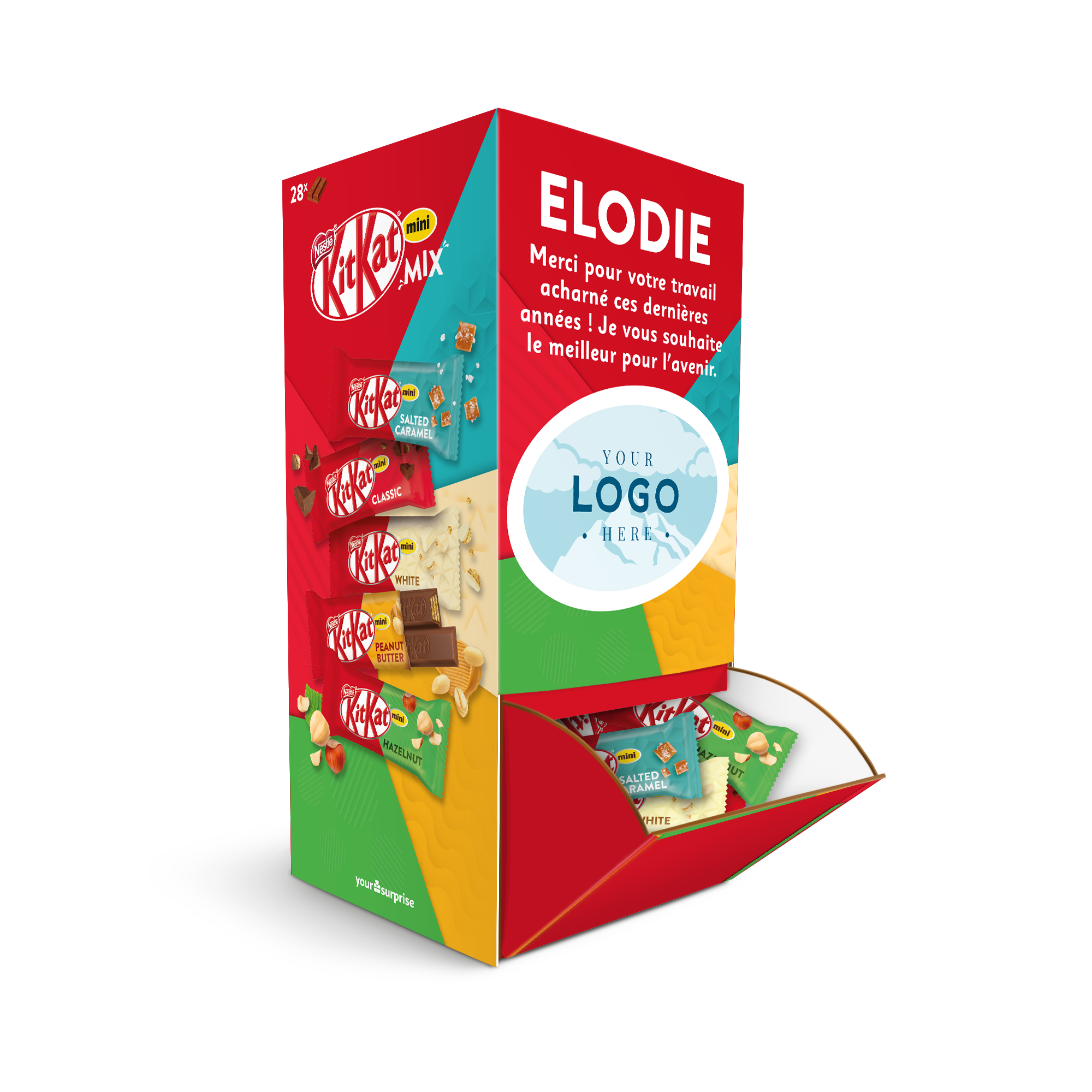 Подарочная коробка KitKat Mini Mix содержит 28 шоколадных конфет 5 разных вкусов и может быть персонализирована вашей фотографией и/или текстом по вашему выбору!