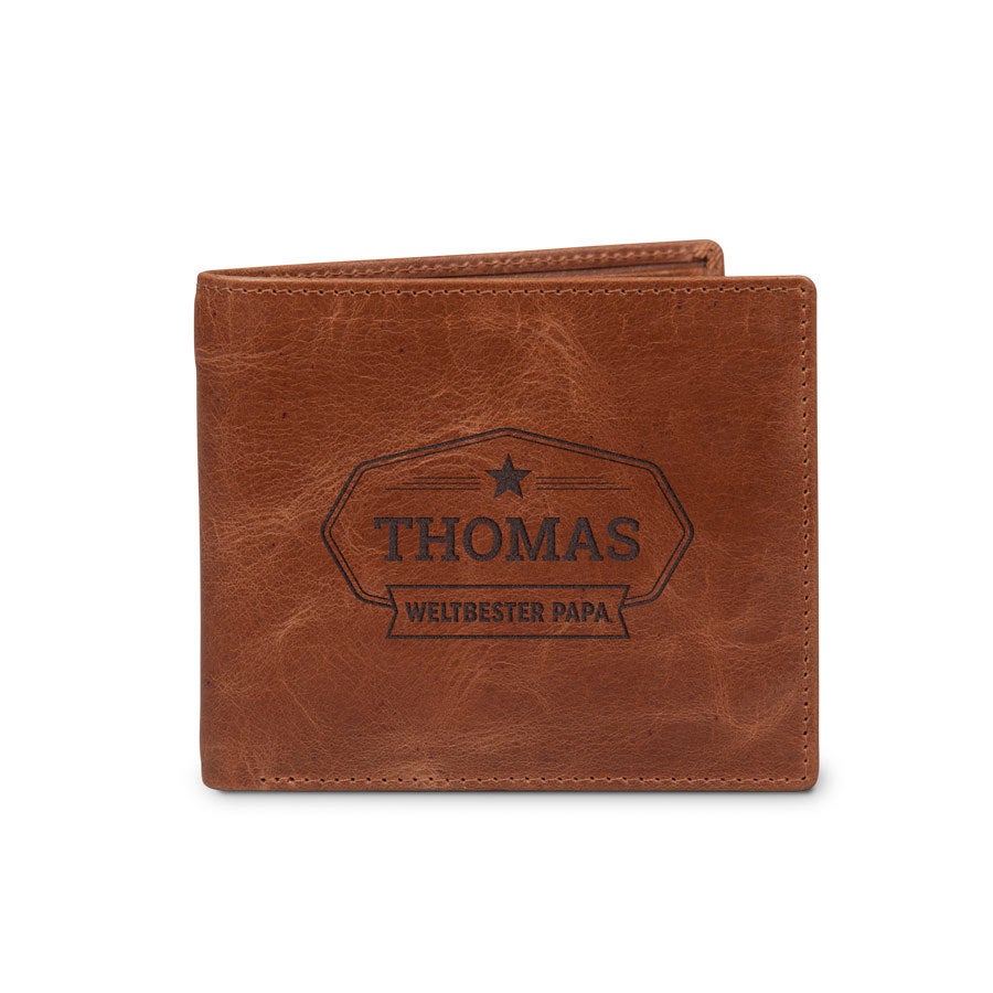 Подробнее о кожаном кошельке с гравировкой:Модель: складной купюрникМатериал: Натуральная кожа буйвола растительного дубленияРазмеры: 11,5 x 9,5 x 2,3 смЦвет: коричневый (бренди)Содержимое: отделение для карточек, фотографий, банкнот и монетОтделка: высококачественная лазерная гравировкаПерсонализация: С именем и/или текстомДополнительно: Кожа является натуральным продуктом. Это означает, что ваш подарок может немного отличаться от примера на фотографии.