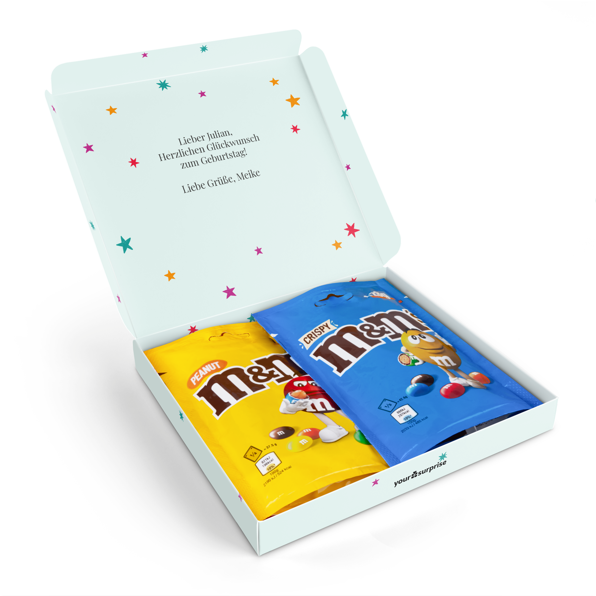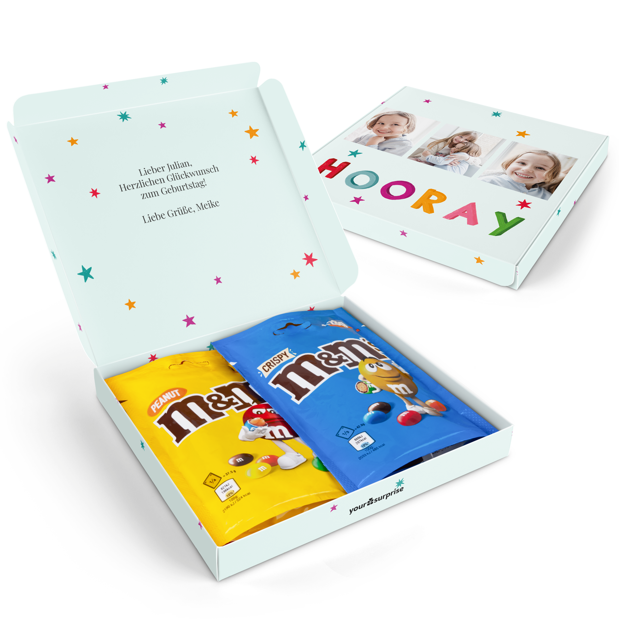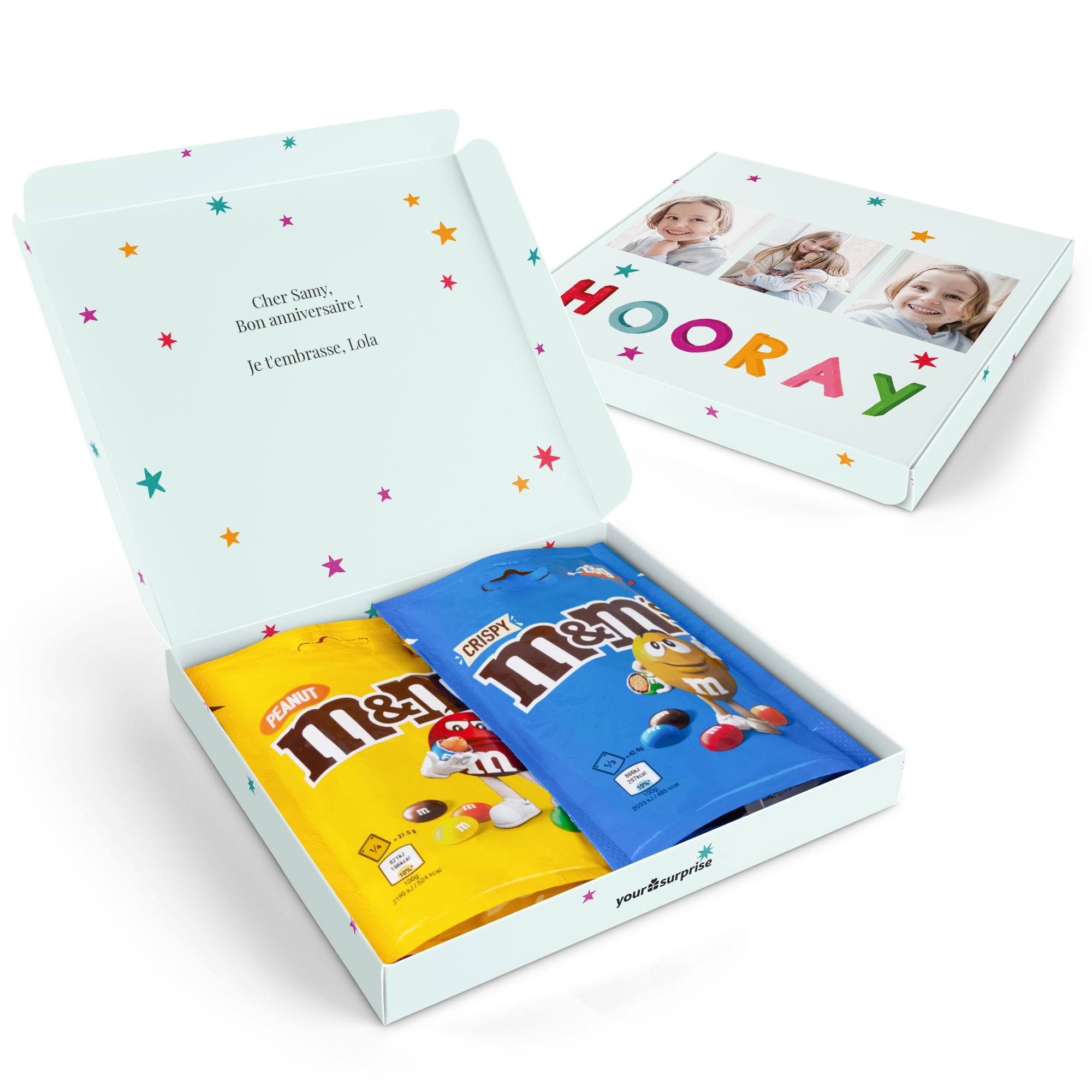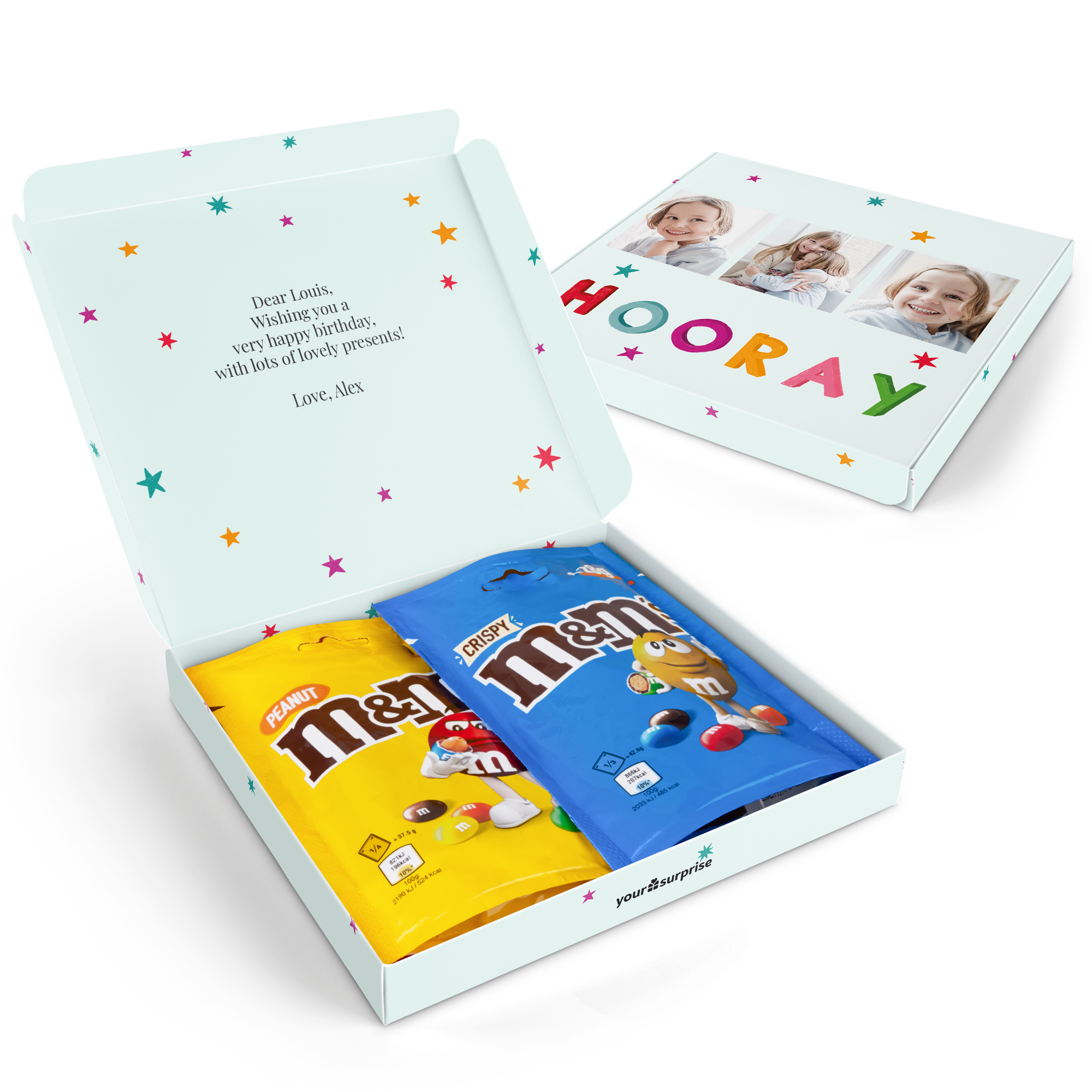 Вкусная коробка шоколадных конфет M&M's, персонализированная изображением и текстом по вашему выбору. Удивите этим вкусным подарком!