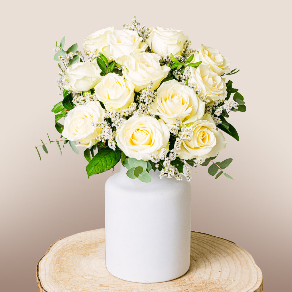 Поделитесь классической розой со своими близкими с нашим букетом из белых белых. С элегантностью, классом и чистотой дюжина белых роз - изящный способ выразить свои чувства в тех случаях, когда нужны только чистые эмоции, такие как свадьбы, юбилеи и демонстрации любви. __Подробнее об этом букете: __ * 12 белых роз премиум-класса * Декоративная зелень