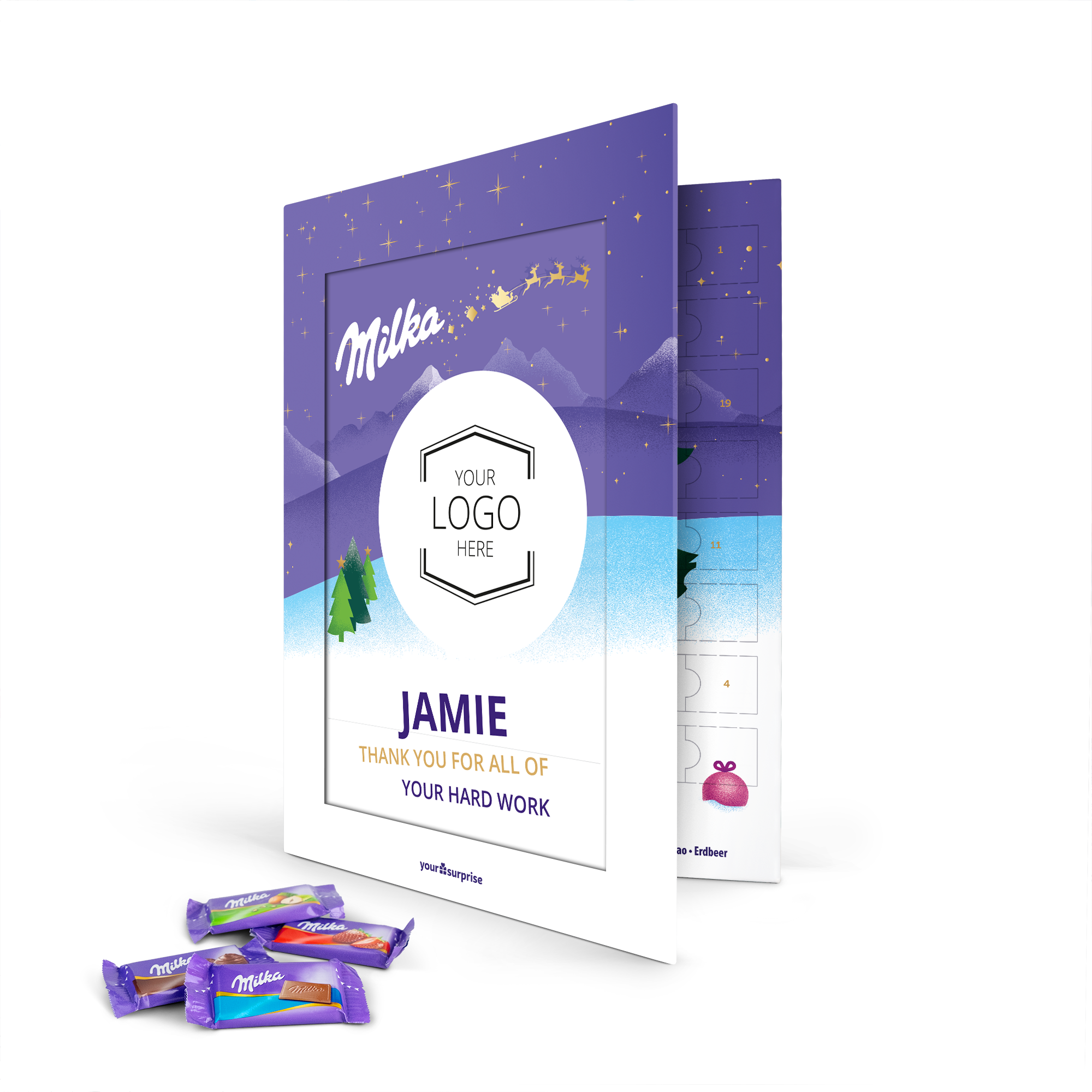 Персонализированный адвент-календарь с любимым шоколадом Milka, создающий праздничное настроение на каждый день декабря.