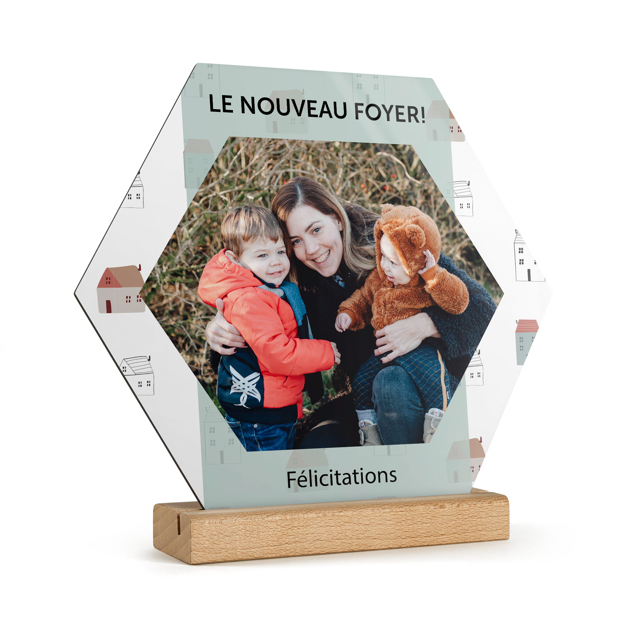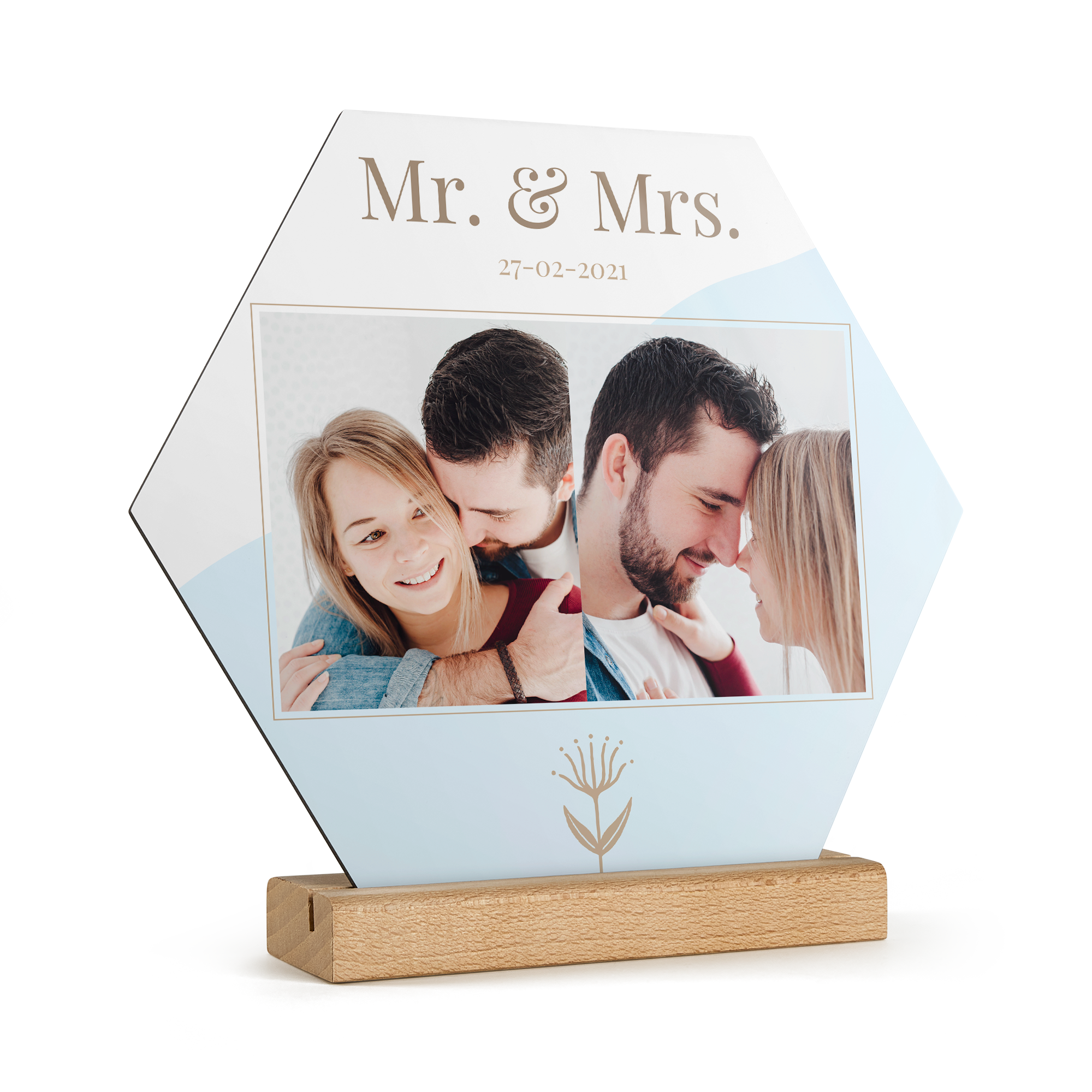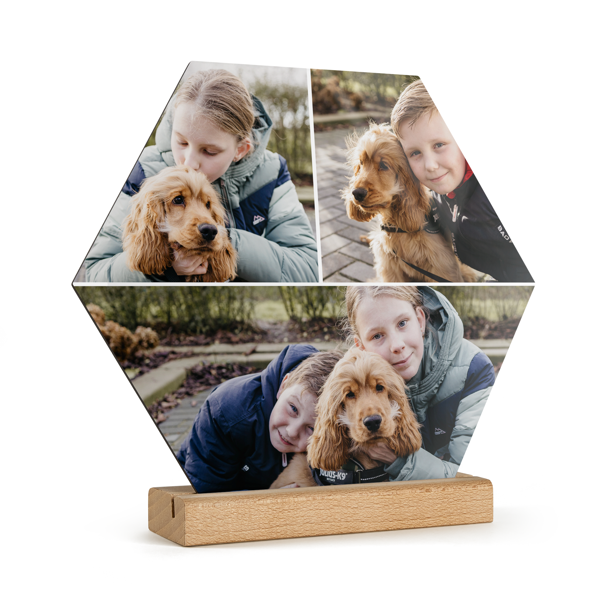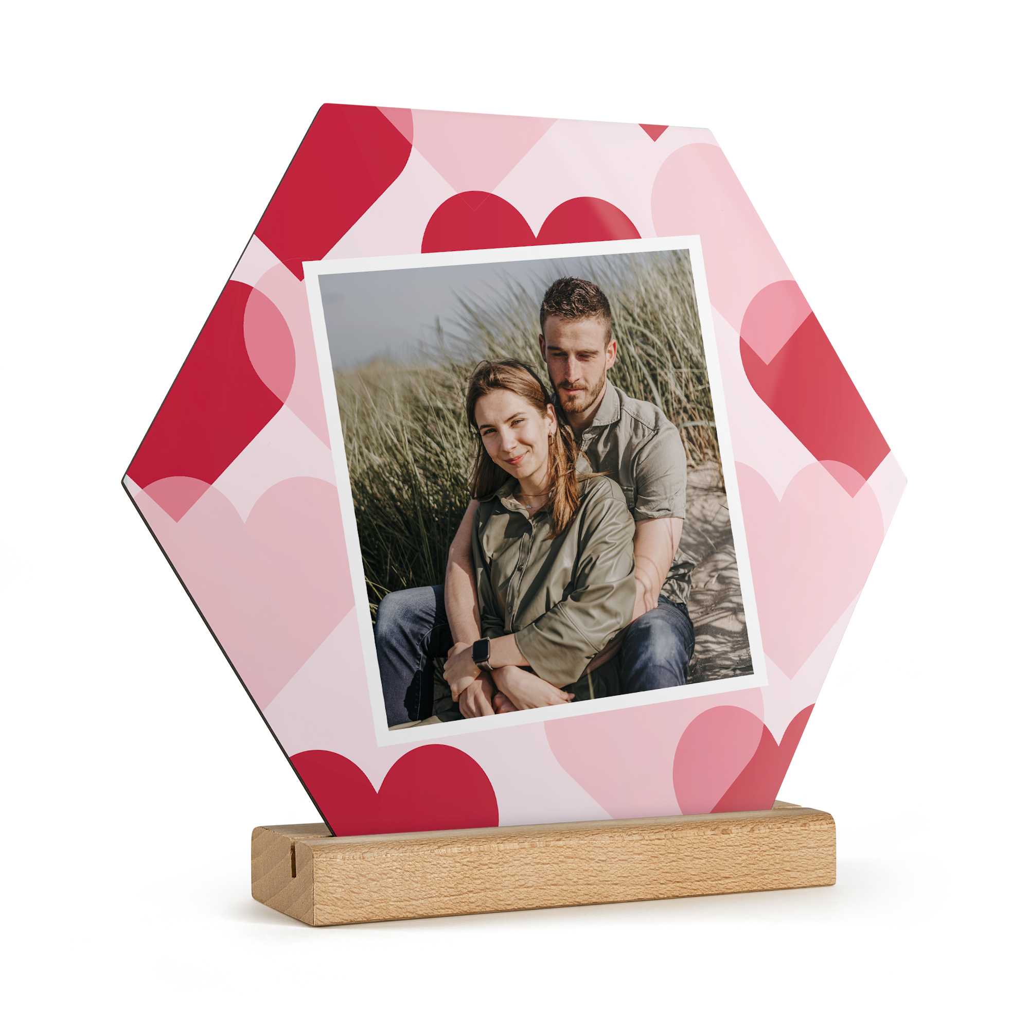 Подробнее о деревянной панели:Форма: шестиугольникМатериал: высококачественная фанераОтделка: глянцевое покрытиеРазмеры панели: 23 x 20 x 20 x 0,3 смРазмеры подставки: 15 x 5 x 2 x 2 смПерсонализация: с помощью фотографии, текста и/или логотипаПечать: четкими, яркими цветами