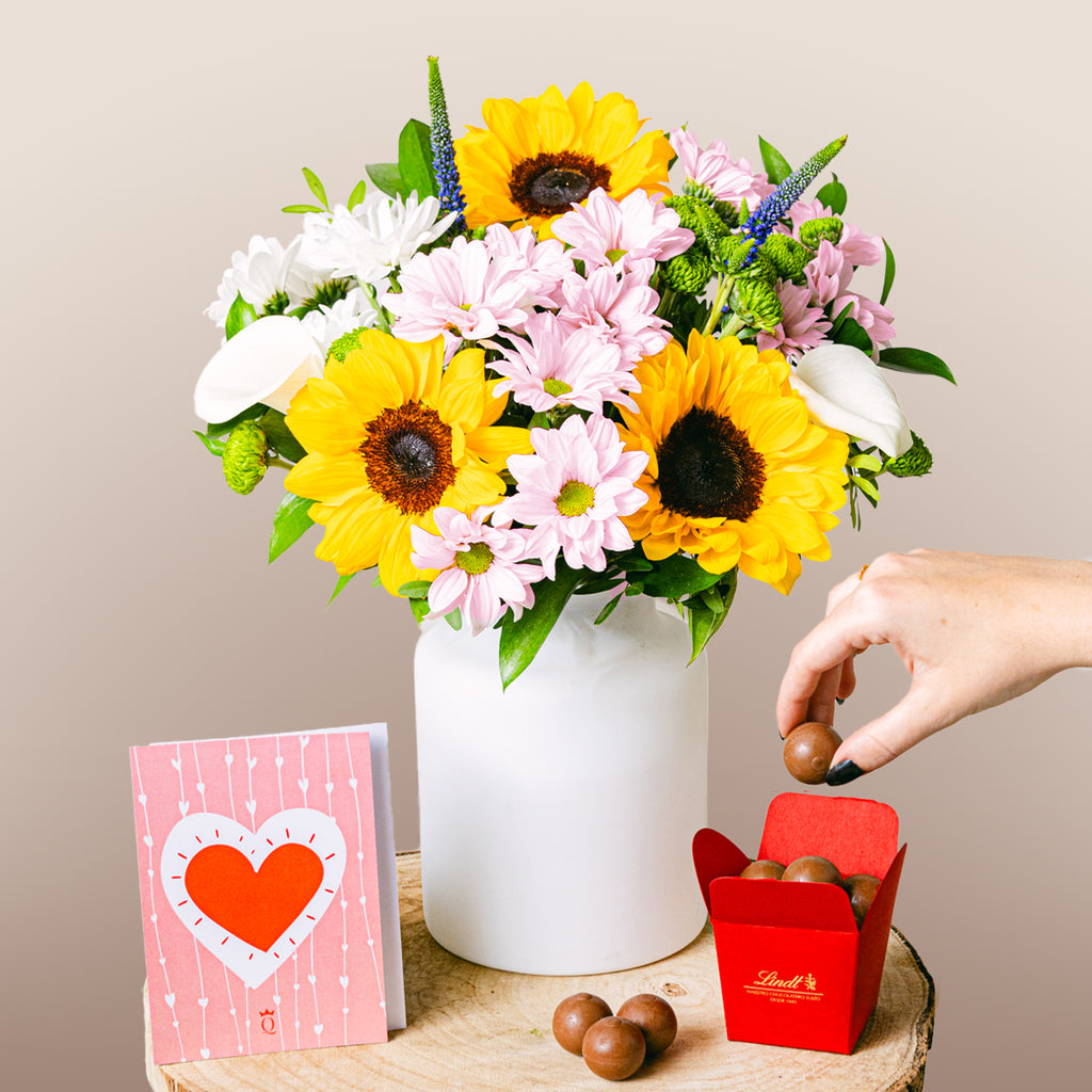 Этот букет сочетает в себе энергию солнца и нежность лилий, создавая атмосферу тепла и радости. Он идеально подходит для тех, кто ценит яркие краски и позитивные эмоции.