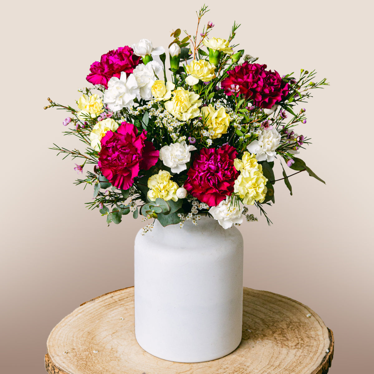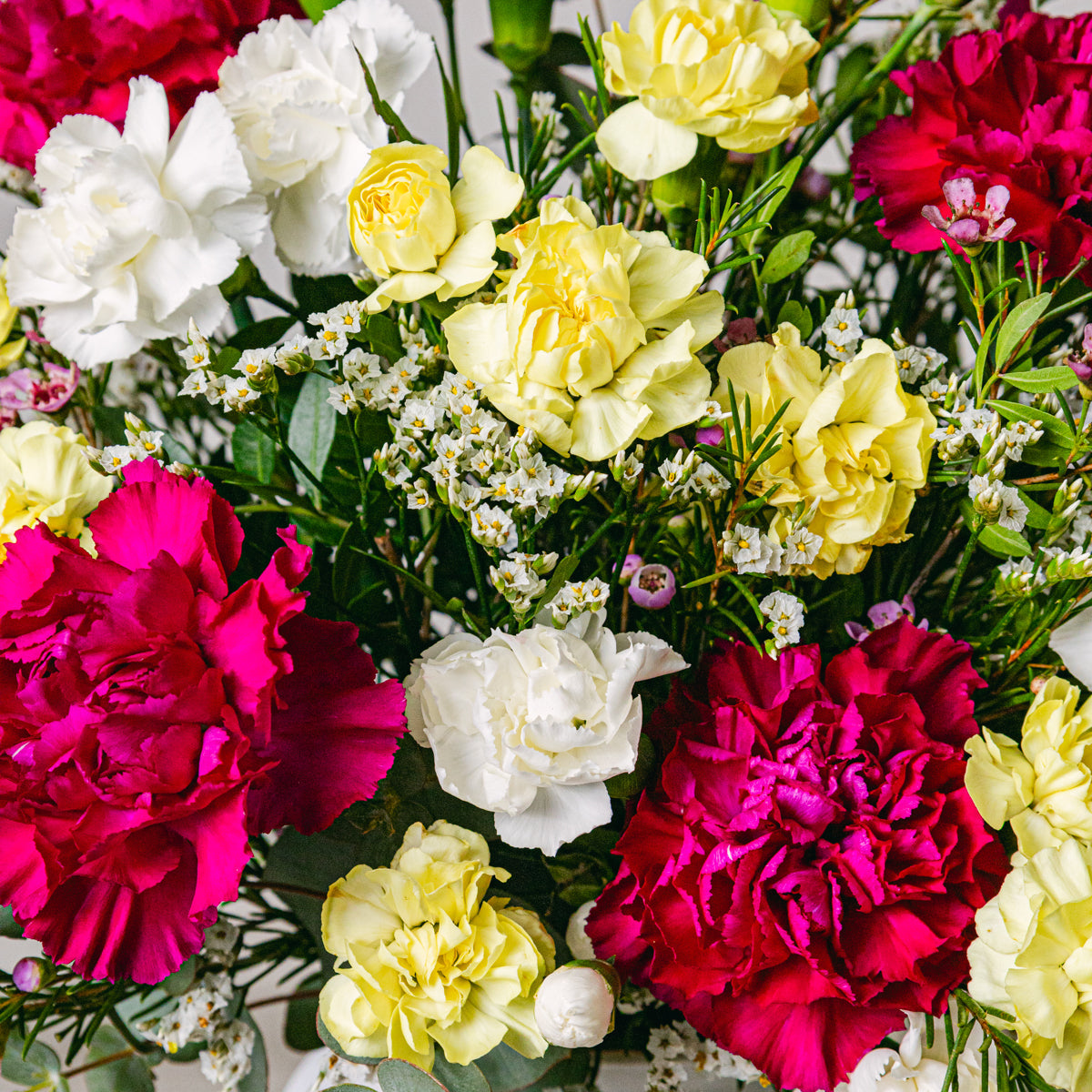 По прибытии: Поместите гвоздики и лимониум в чистую вазу со свежей водой.