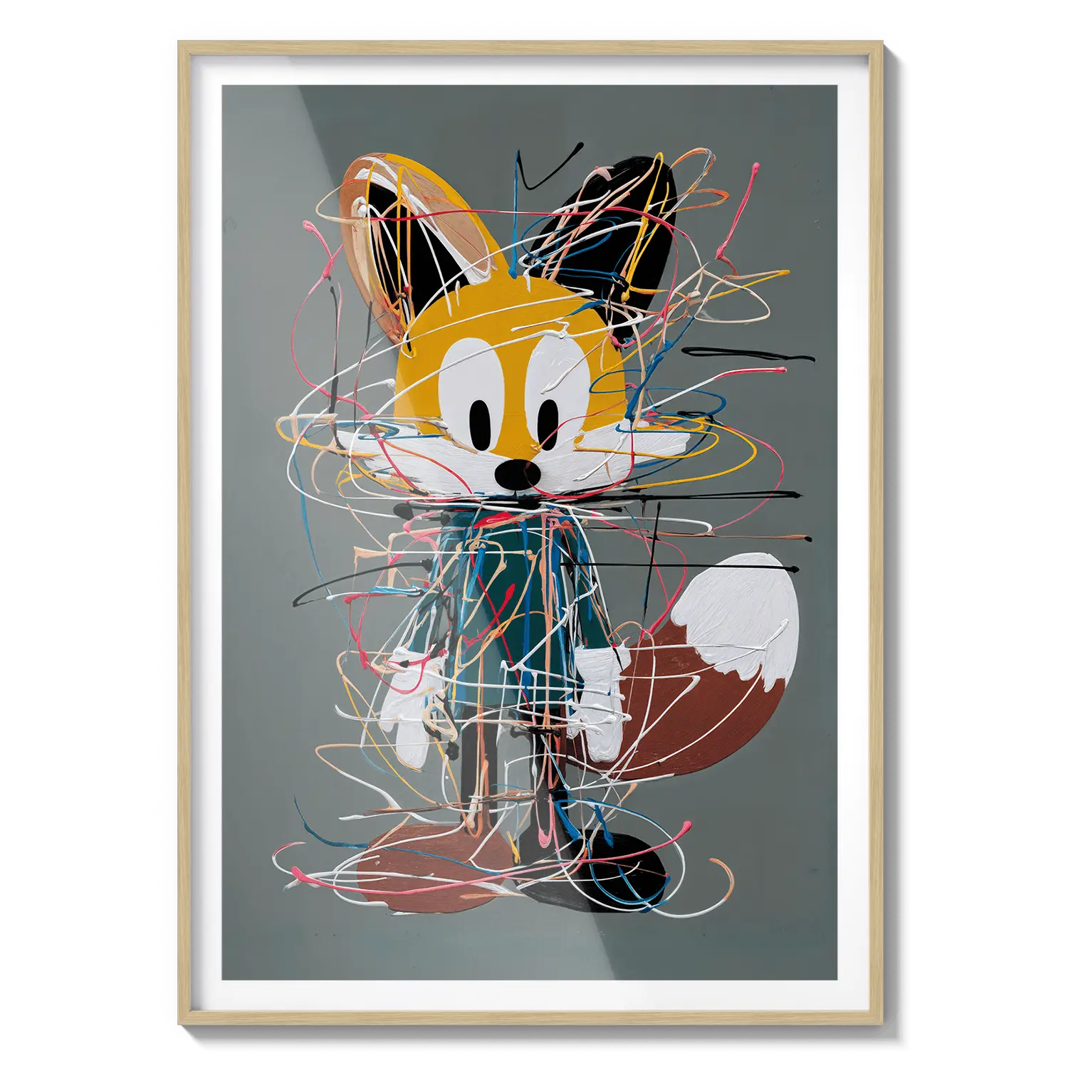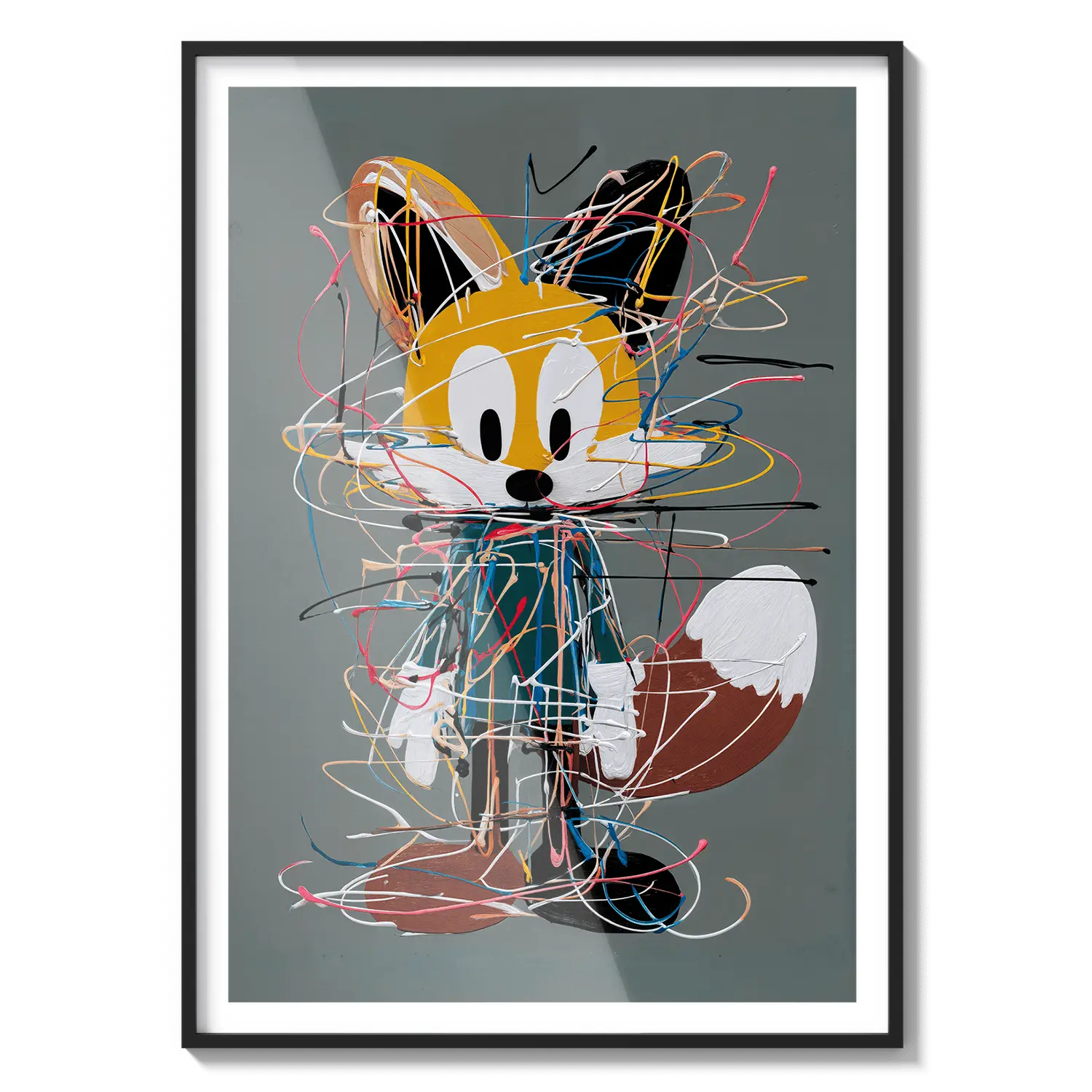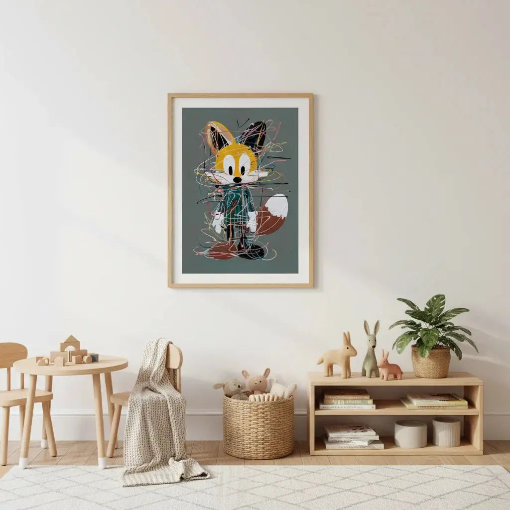 Озорной лис в стиле каракулей, наполненный выразительными линиями и игривым характером. Радостное произведение искусства, призванное вызывать улыбки.