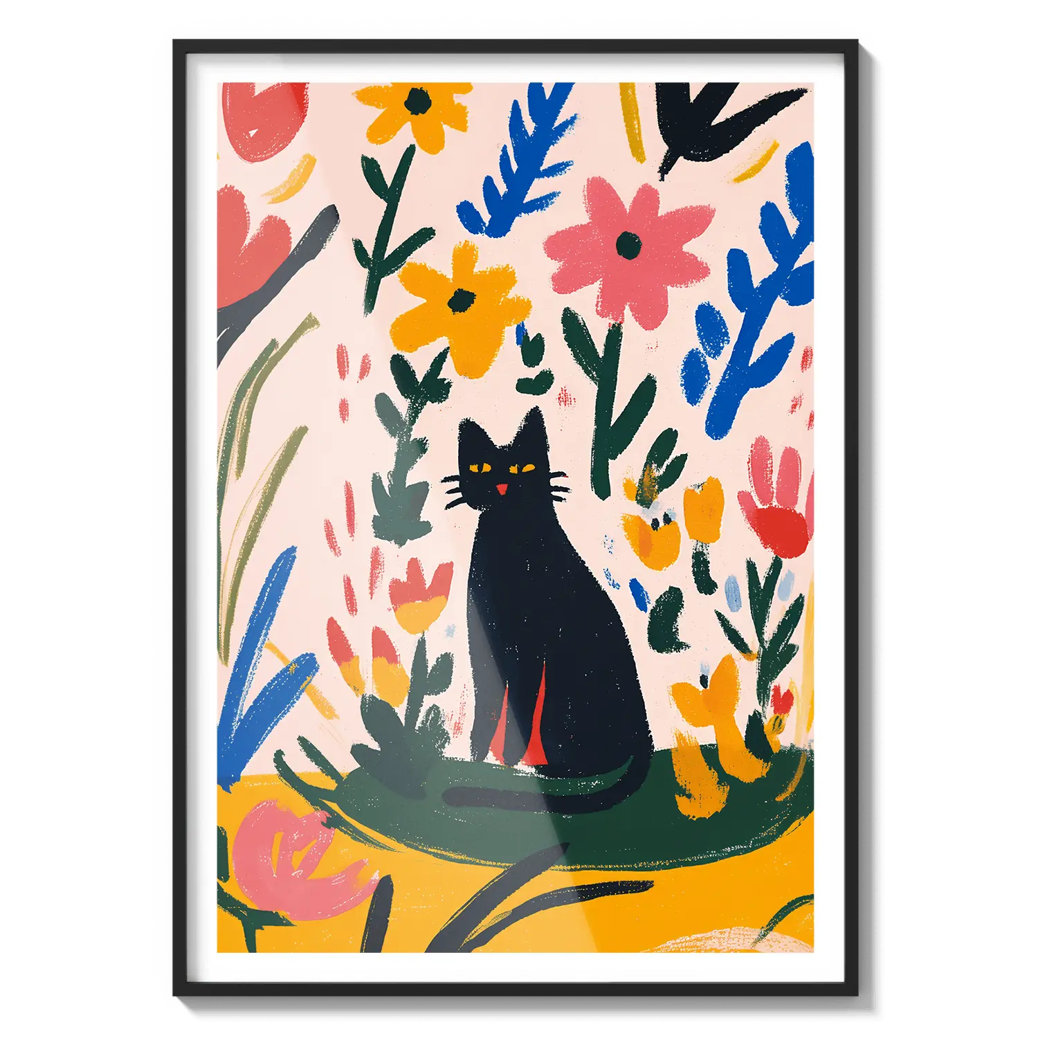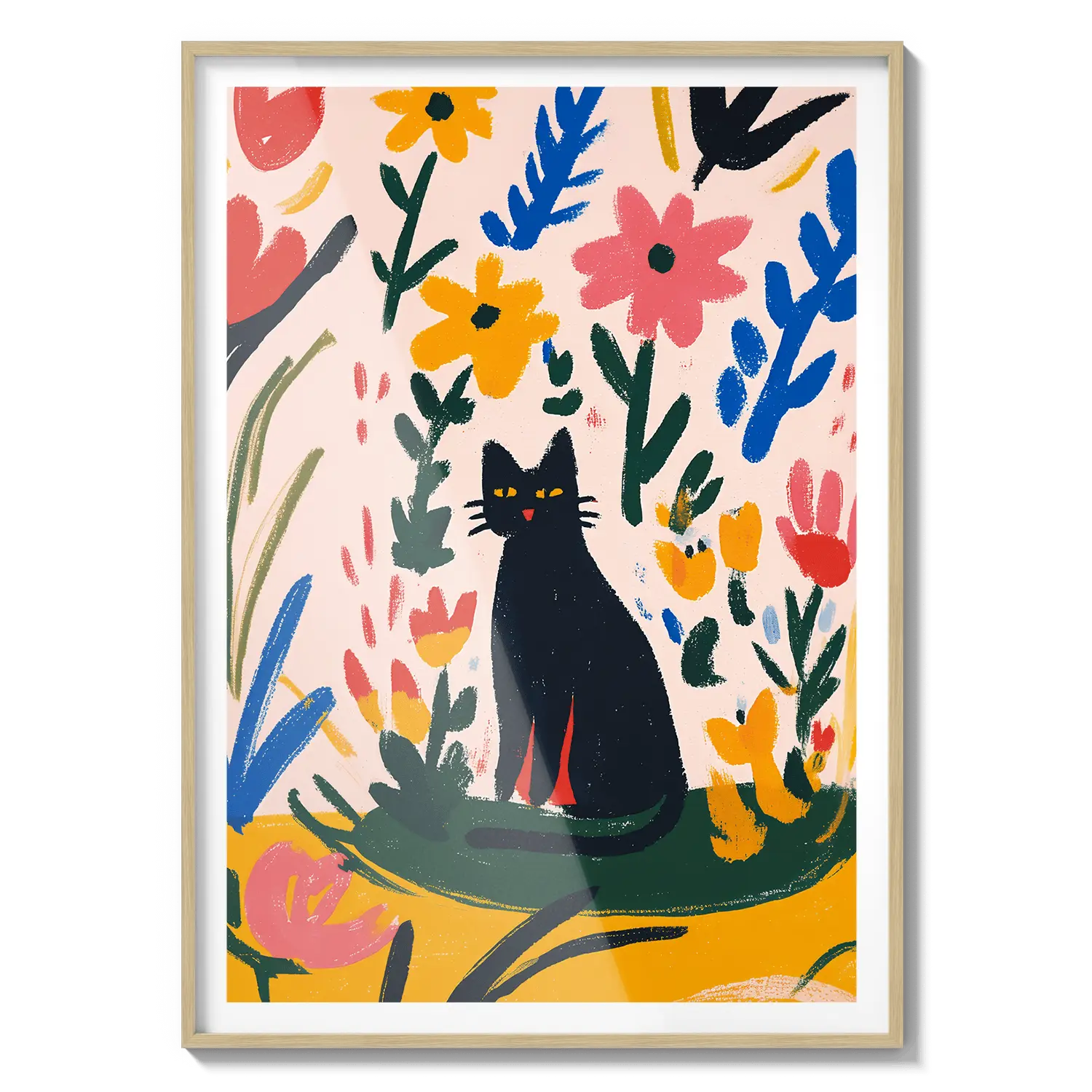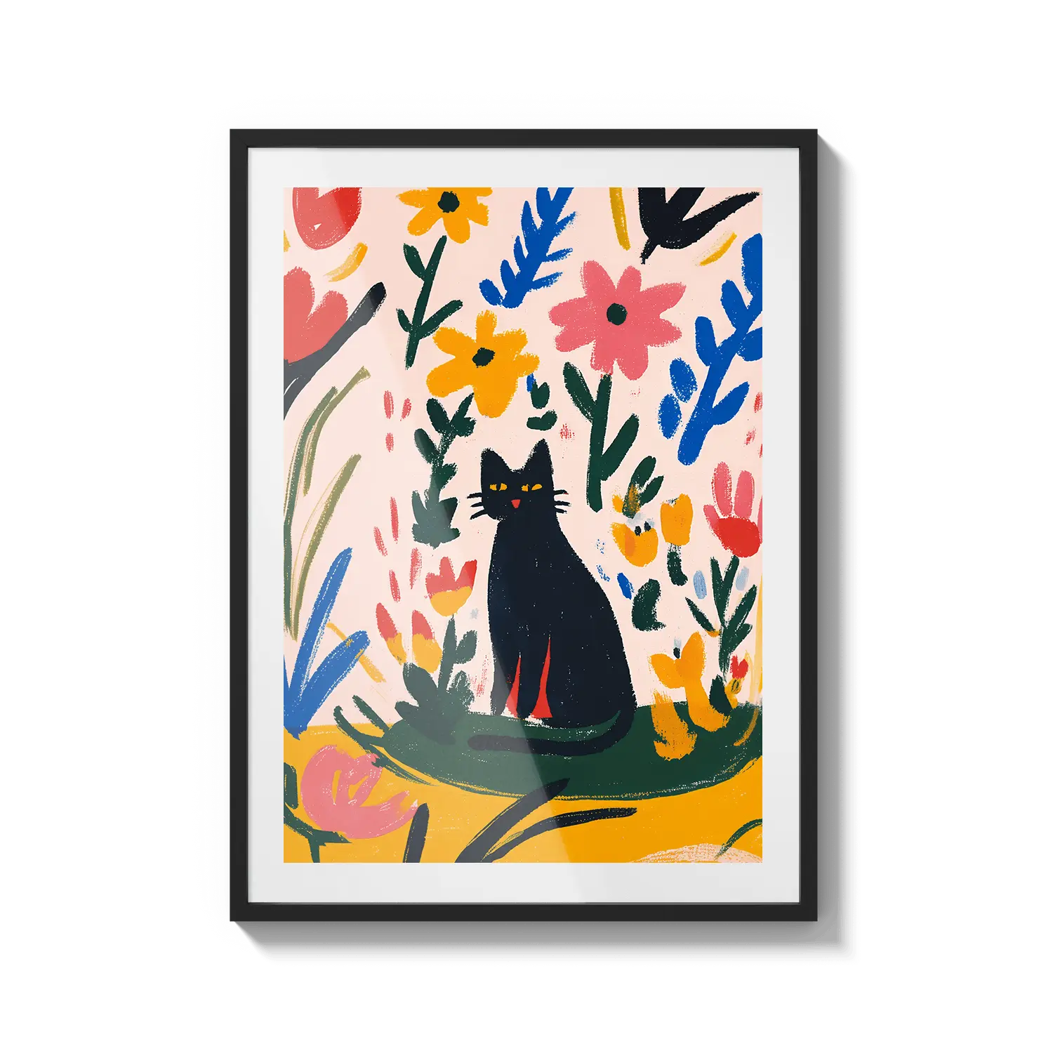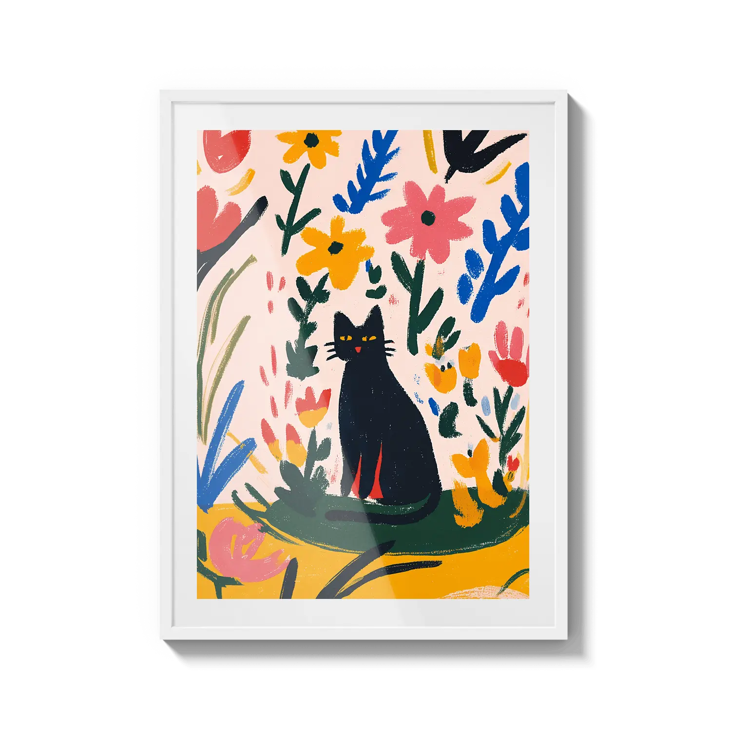 Очаровательная графическая сцена с кошкой, отдыхающей среди красочных листьев, излучающая игривое тепло. Прекрасный подарок, чтобы скрасить чей-то день.