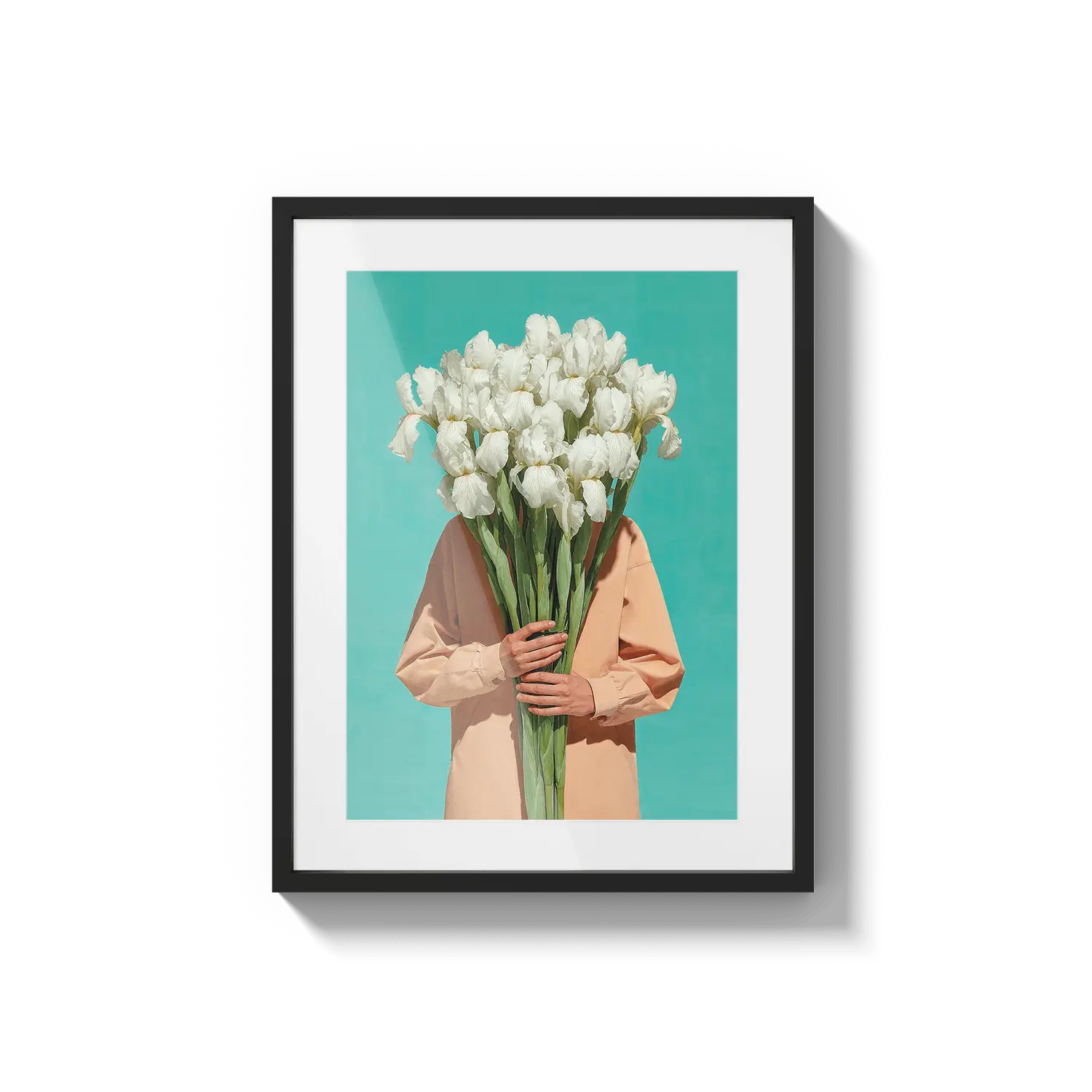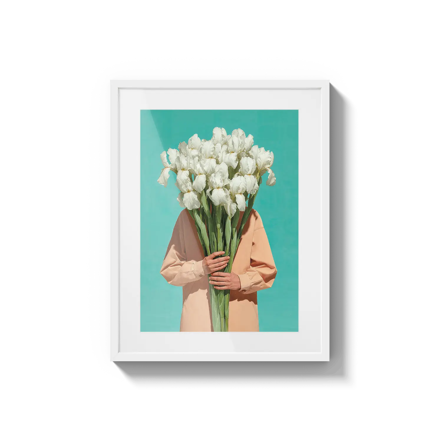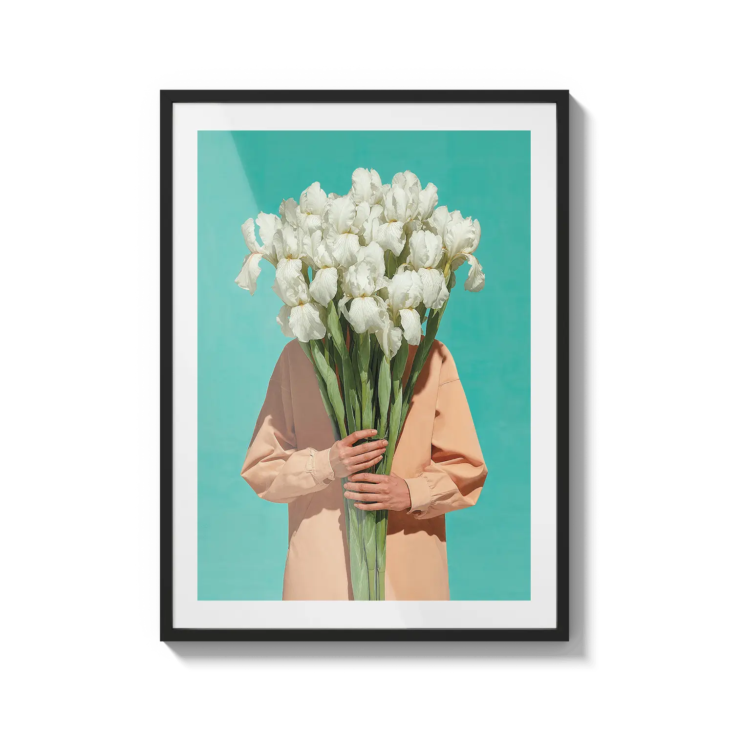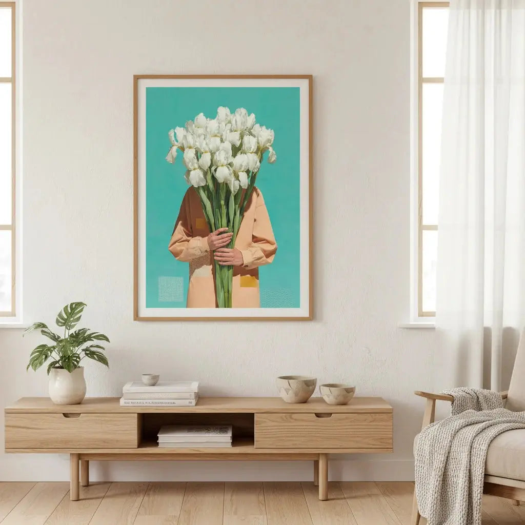 Безмятежная фигура, стоящая в сияющем поле цветов, окутанная теплым светом и покоем. Нежное произведение искусства, чтобы вдохновлять надежду.