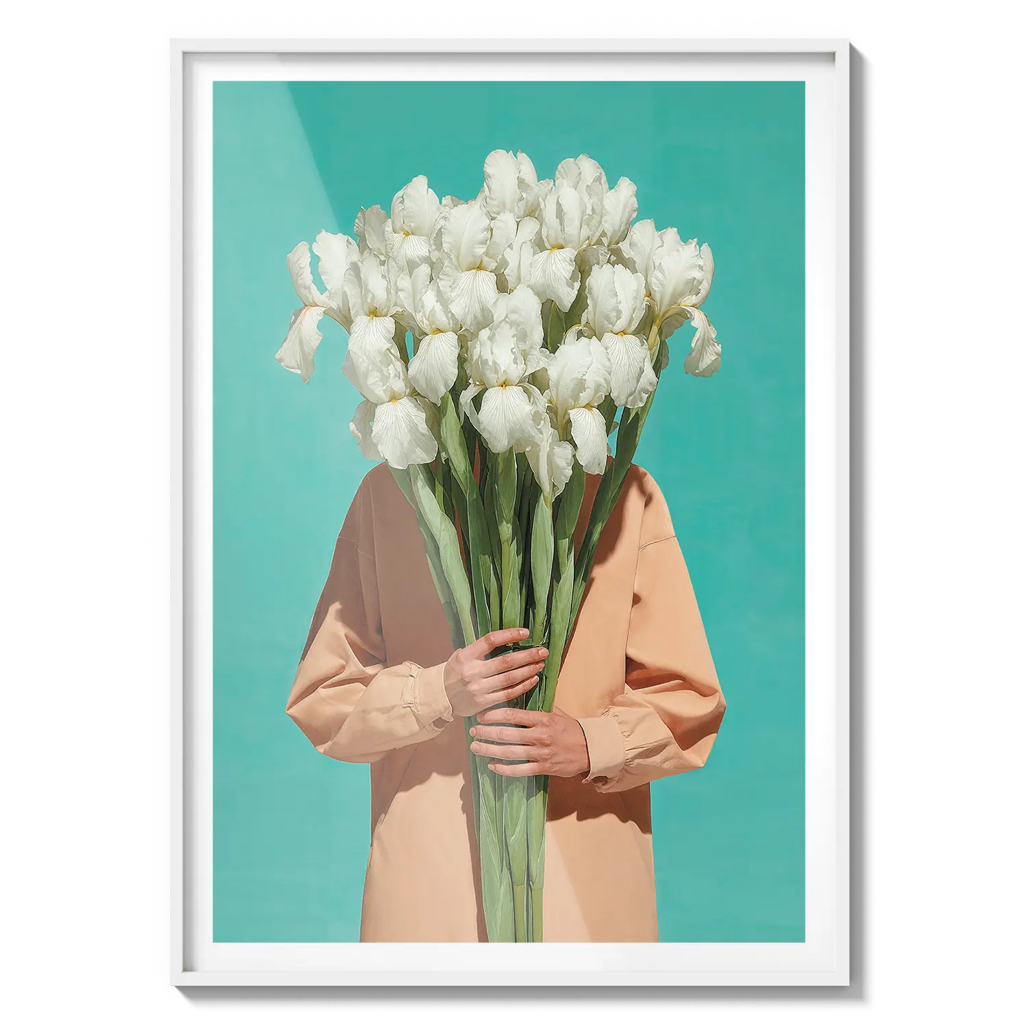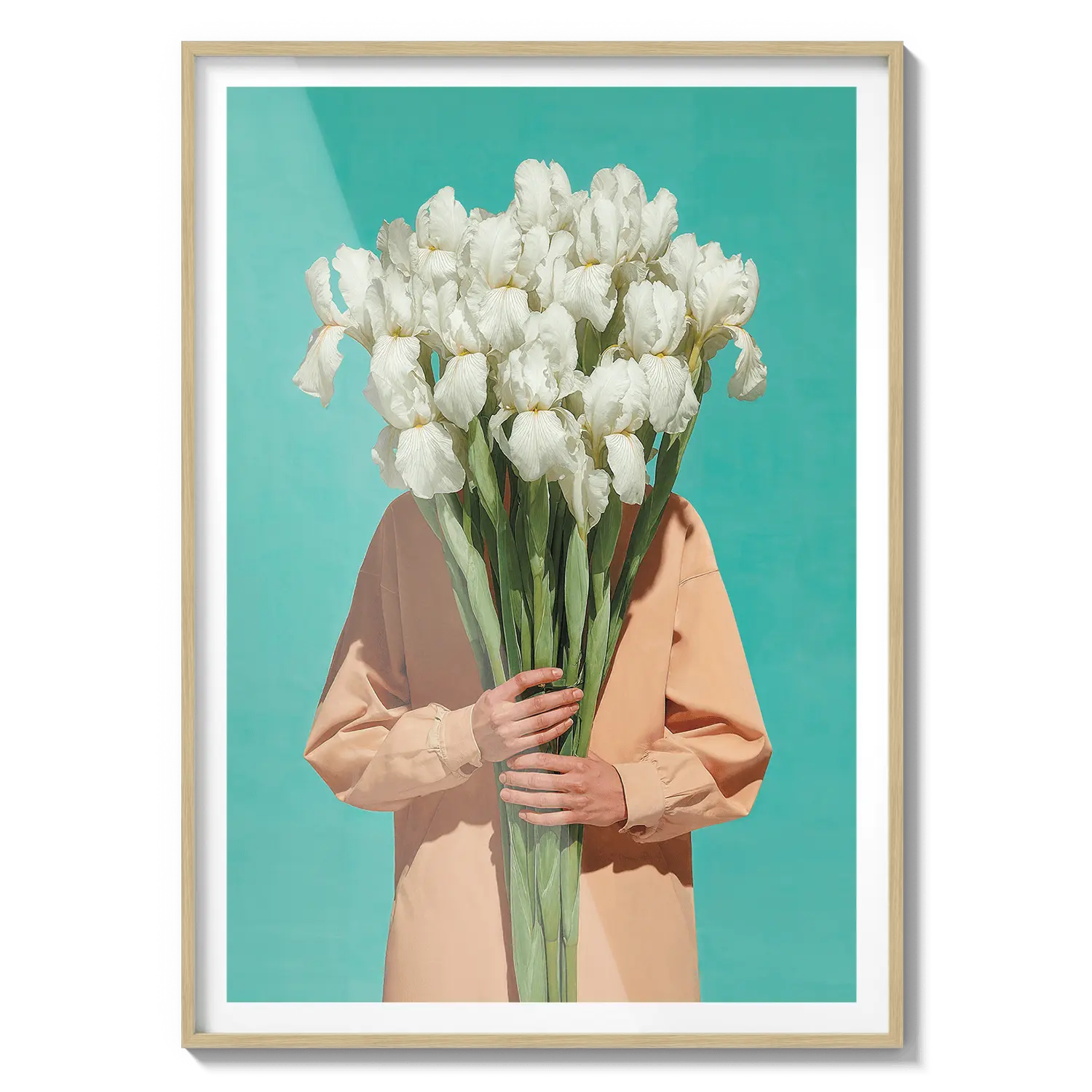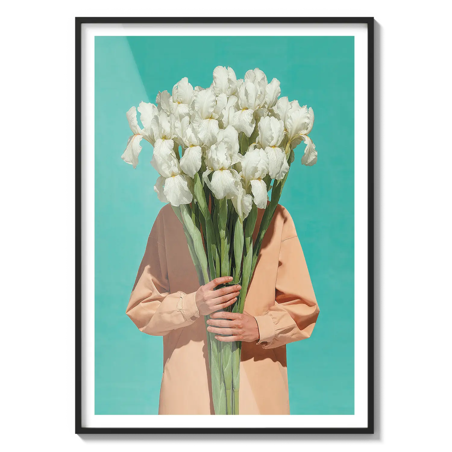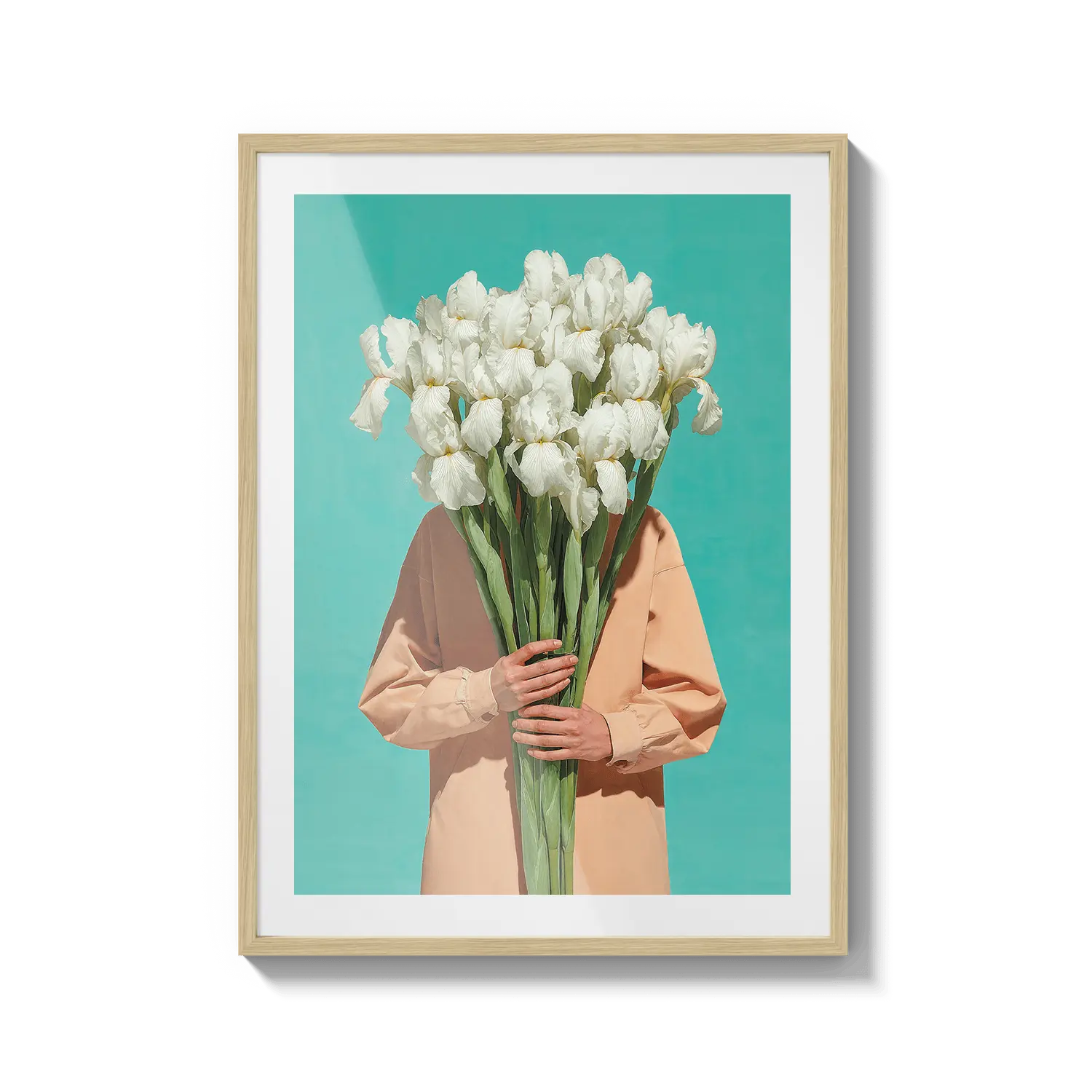 Безмятежная фигура, стоящая в сияющем поле цветов, окутанная теплым светом и покоем. Нежное произведение искусства, чтобы вдохновлять надежду.