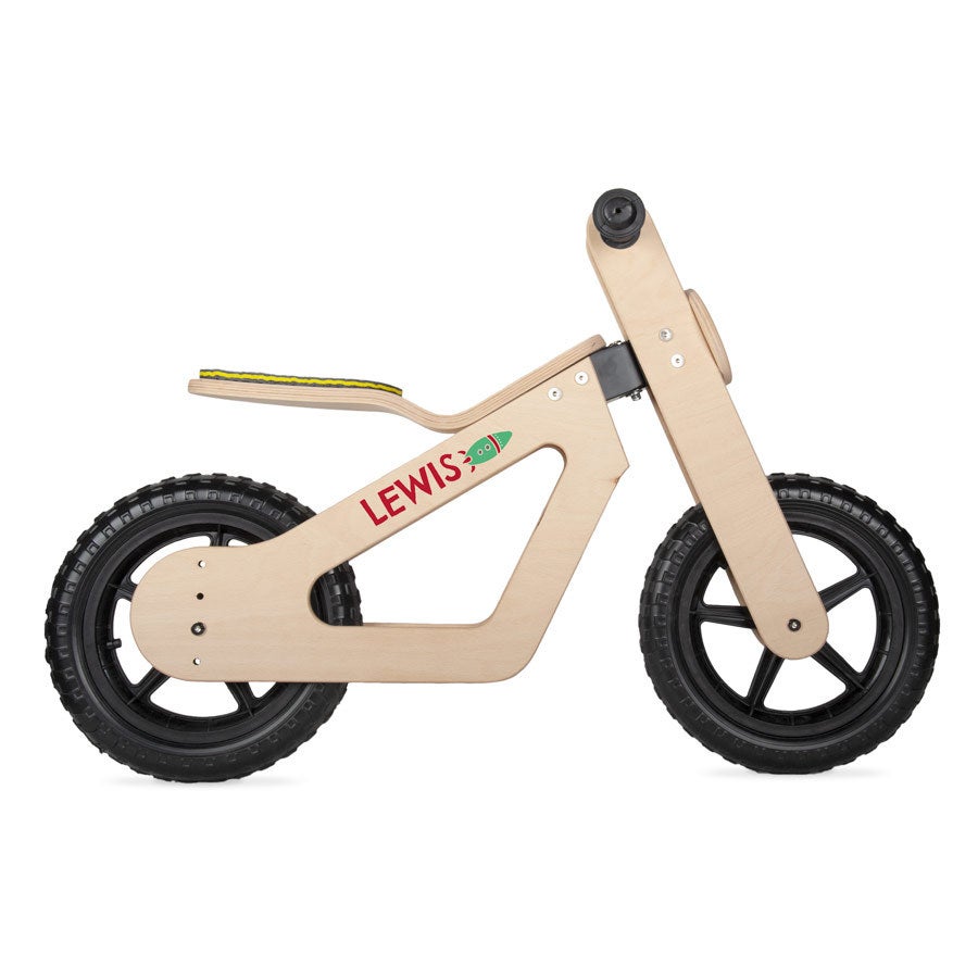 Деревянный беговел с именем. Уникальный подарок для детей. Высококачественный бук с блестящей наклейкой. Идеальный подарок для настоящих гонщиков!