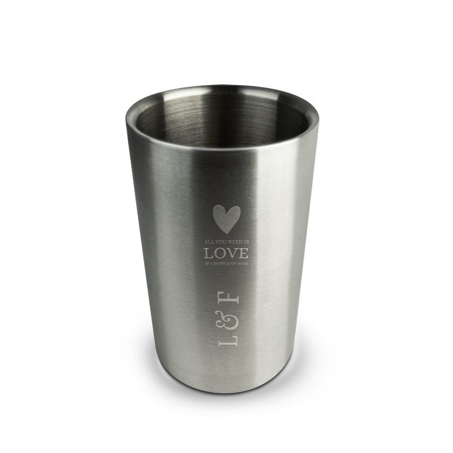 Нержавеющая сталь, серебристый цвет, персонализированная гравировка текста.