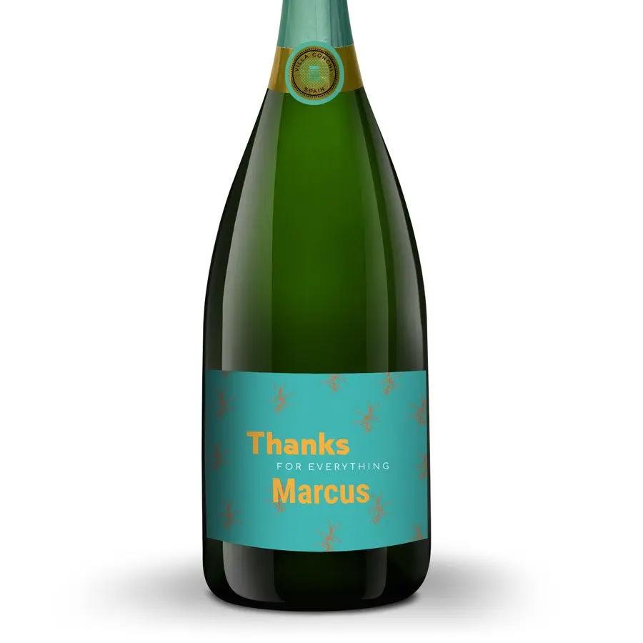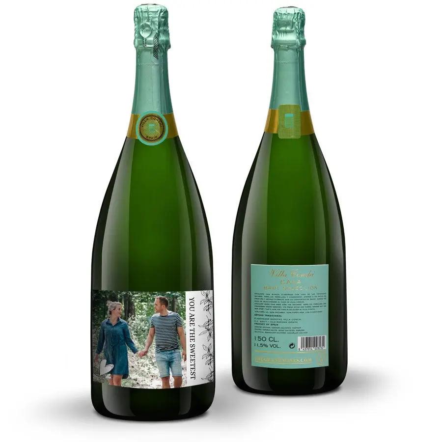 Подробнее о персонализированной этикетке: Персонализация: с фотографией, именем и/или логотипом Размещение персонализации: полностью на этикетке Печать: идеальное изображение и в полном цвете Дополнительно: включает роскошный деревянный футляр Подробнее об игристом вине: Бренд: Villa Conchi Тип: кава Объём: 1500 мл Страна происхождения: Испания Виноград: Шардоне, Макабео, Парельяда, Шарелло Характер: Villa Conchi — свежее вино с восхитительными фруктовыми нотками. Прекрасно сочетается с салатами, а также прекрасно в качестве аперитива.