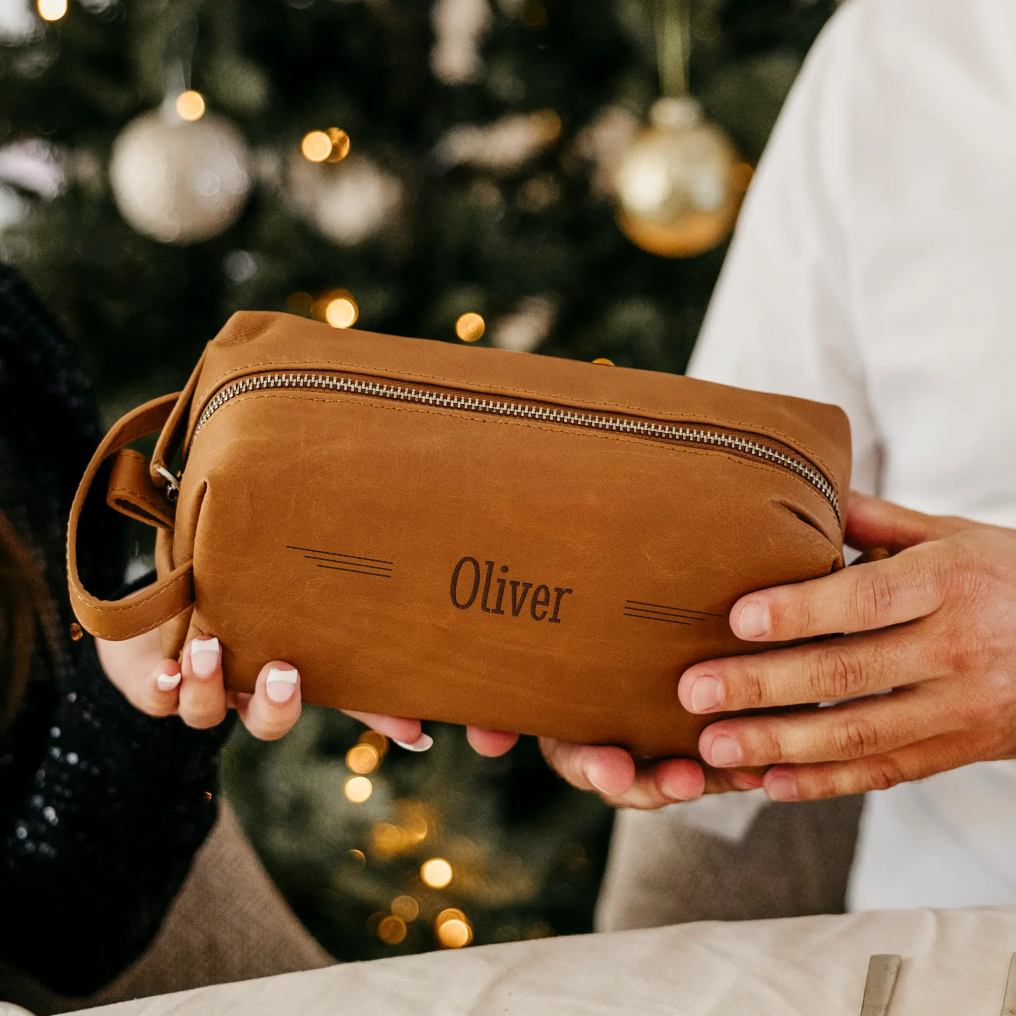 Храните все свои любимые аксессуары в этой красивой роскошной кожаной косметичке. Персональная гравировка вашего имени или текста.