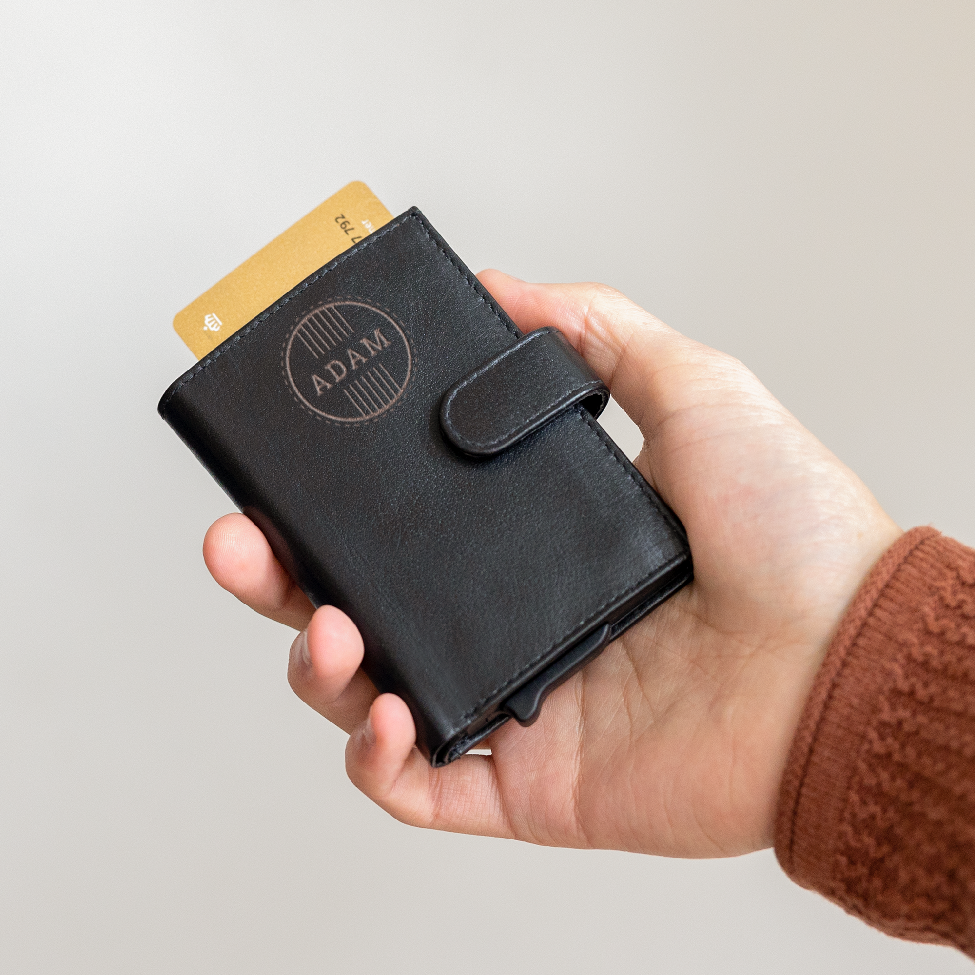 Уникальная кожаная визитница с гравировкой имени на ваш выбор. Поистине уникальный подарок!