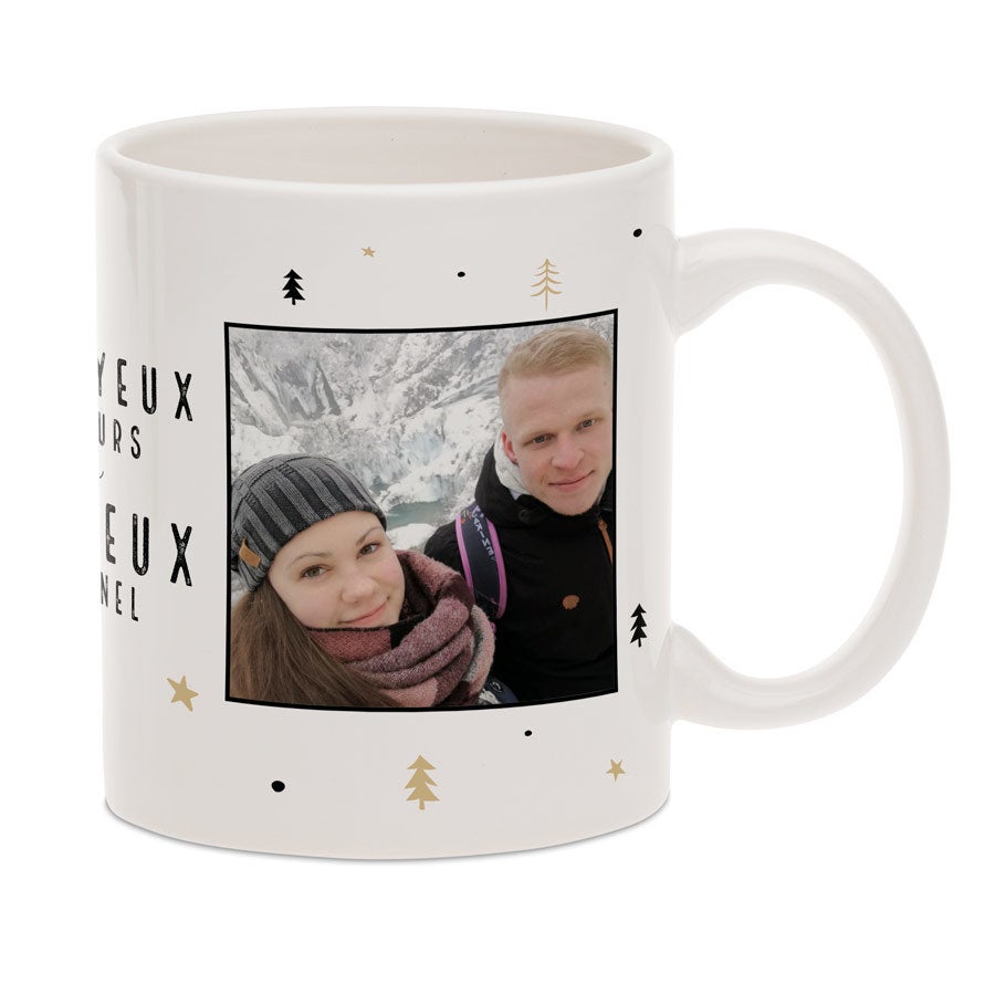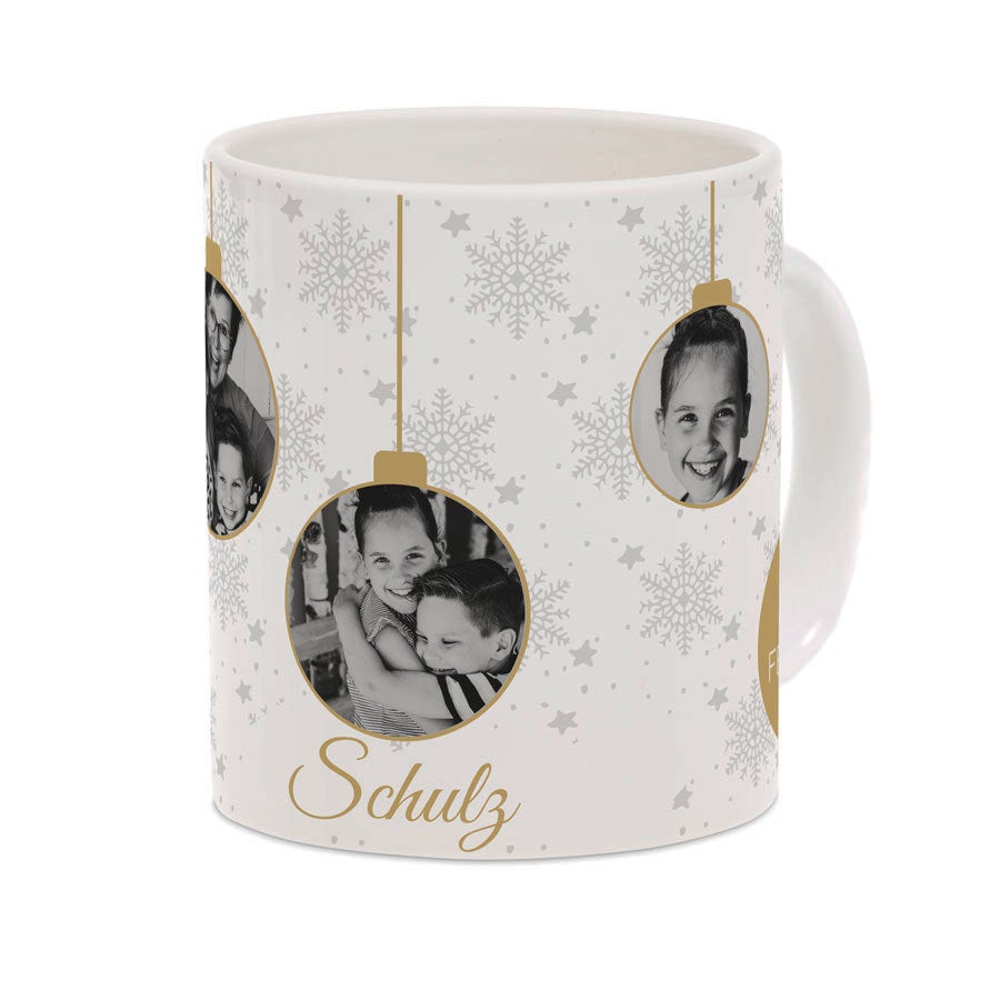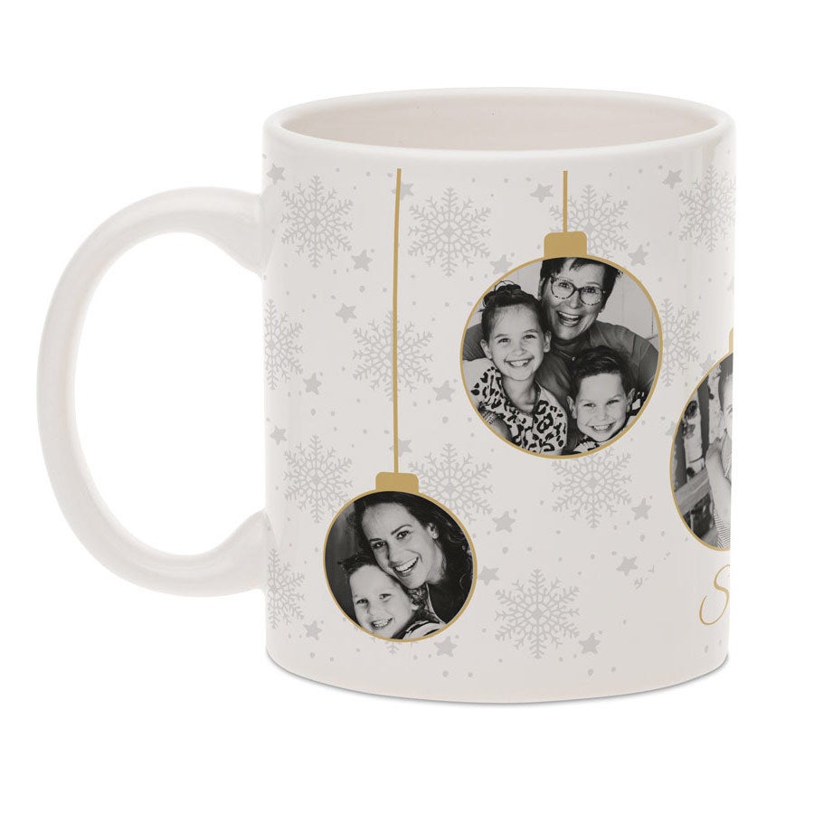 Подробнее о персонализированной рождественской кружке:Цвет: белый внутри и с ручкойМатериал: высококачественная глянцевая керамикаВысота: 9,5 см / 3,7 дюймаДиаметр: 7,5 см / 3 дюймаОбъём: 325 млПерсонализация: с фотографией и/или текстомПечать: высококачественная и полноцветнаяДополнительно: кружку можно мыть в посудомоечной машине и использовать в микроволновой печи