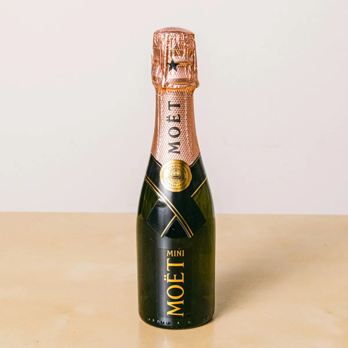 Дополнения:Яркое растение пуансеттия и мини-бутылка шампанского Moët, идеально подходящая для тоста.