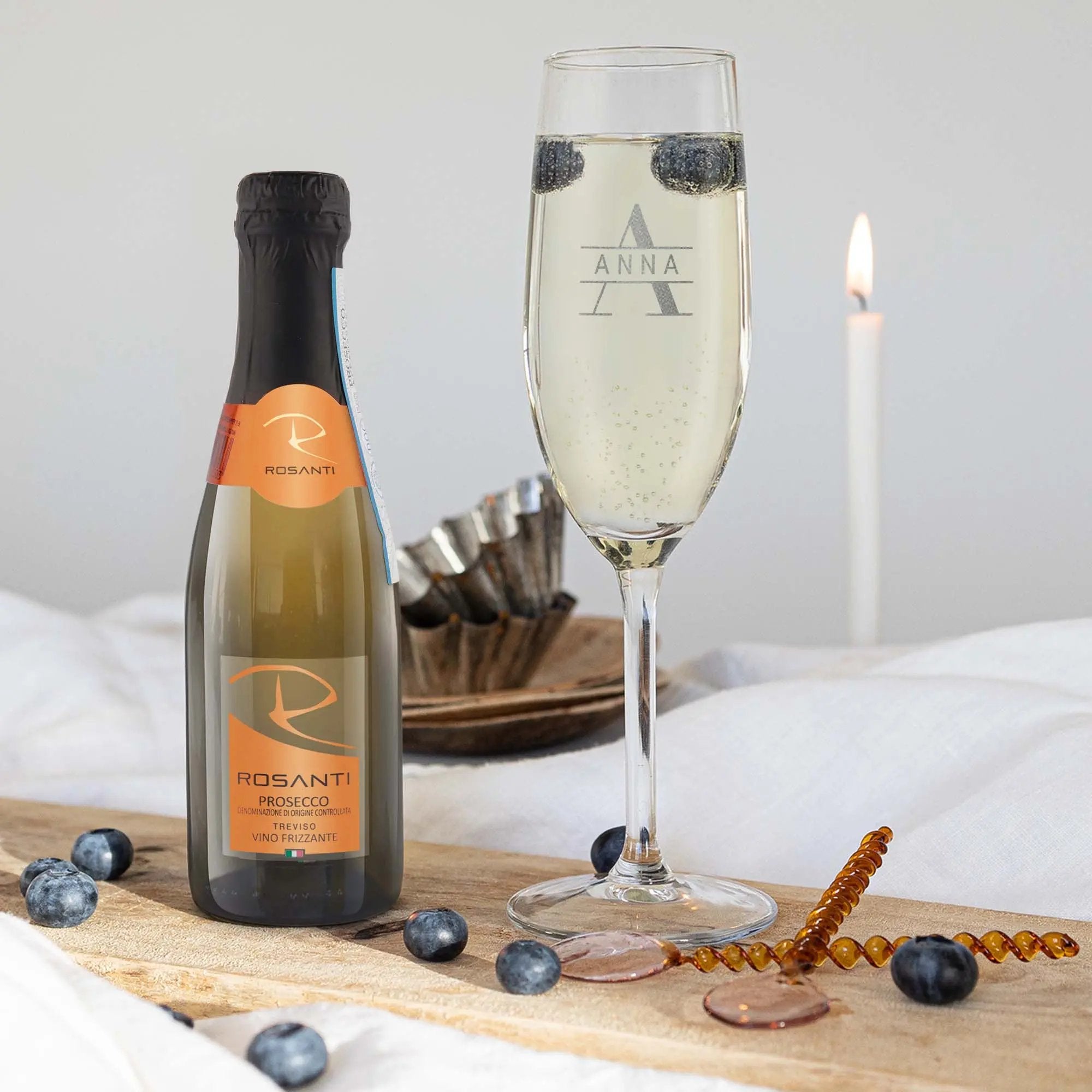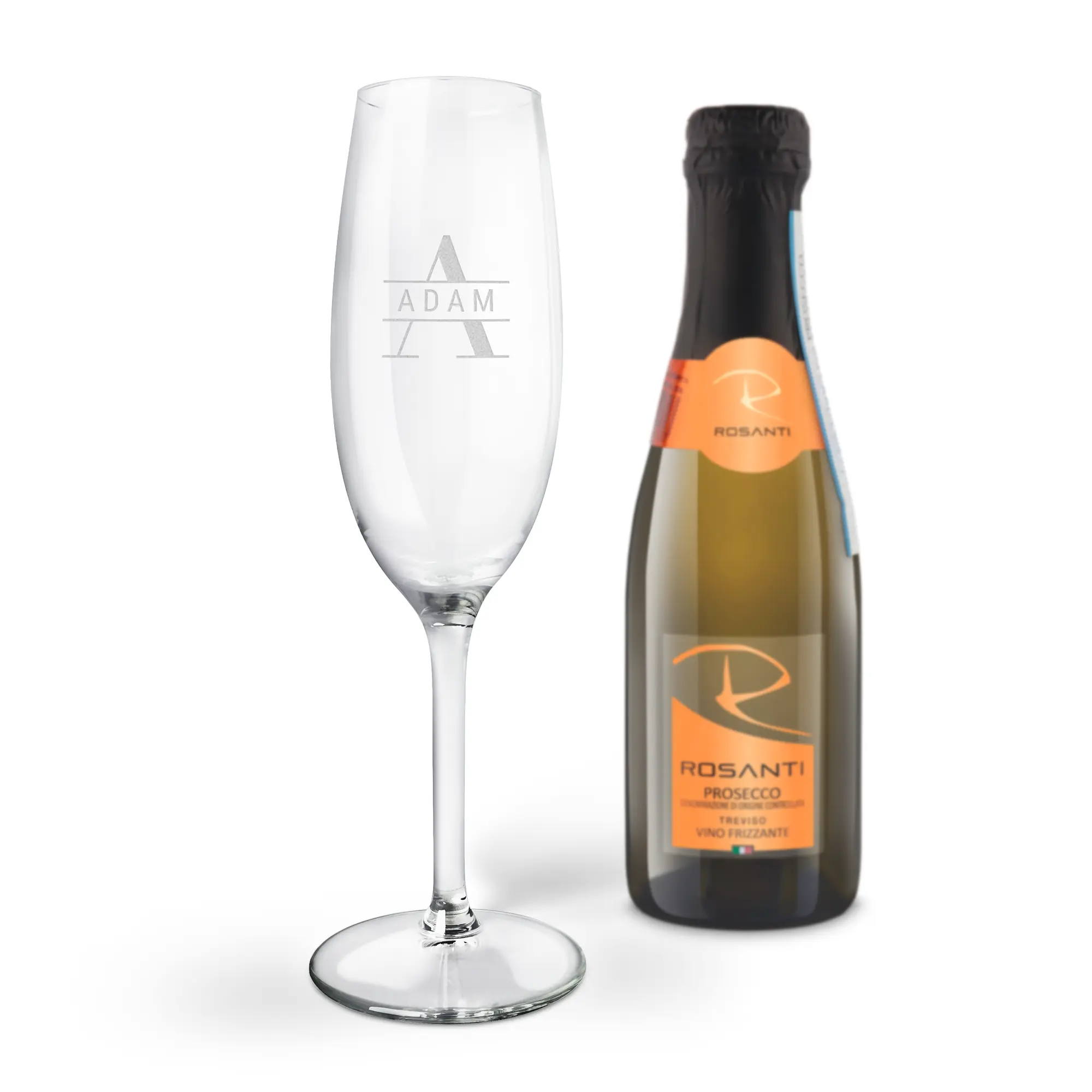 Очаровательная мини-бутылочка Rosanti Vino Frizzante с гравированным бокалом. Высококачественная лазерная гравировка по вашему дизайну. Ура!