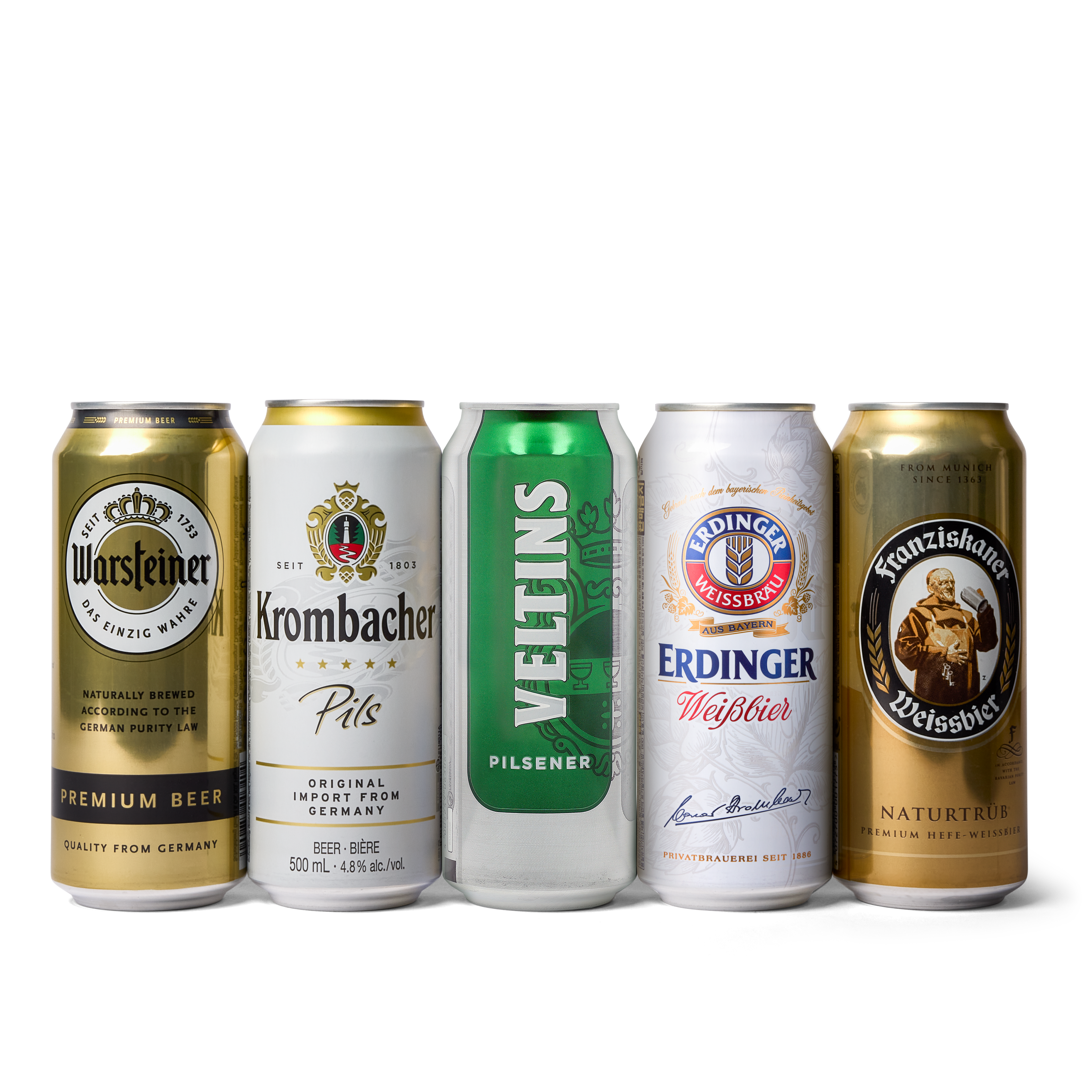 Подробнее о персонализированном наборе пивных банок:Тип набора: немецкийКоличество банок: 5 x 500 млРазмеры: 40,1 x 29,4 x 7,4 смПерсонализация: с именем, фотографией и/или логотипомПечать: безупречная и полноцветнаяВ набор входит:Warsteiner - 500 мл - 4,8%Veltins Pilsener - 500 мл - 4,8%Krombacher - 500 мл - 5,0%Franziskaner Hefe Weisse - 500 мл - 5,0%Erdinger Weisse - 500 мл - 5,3%