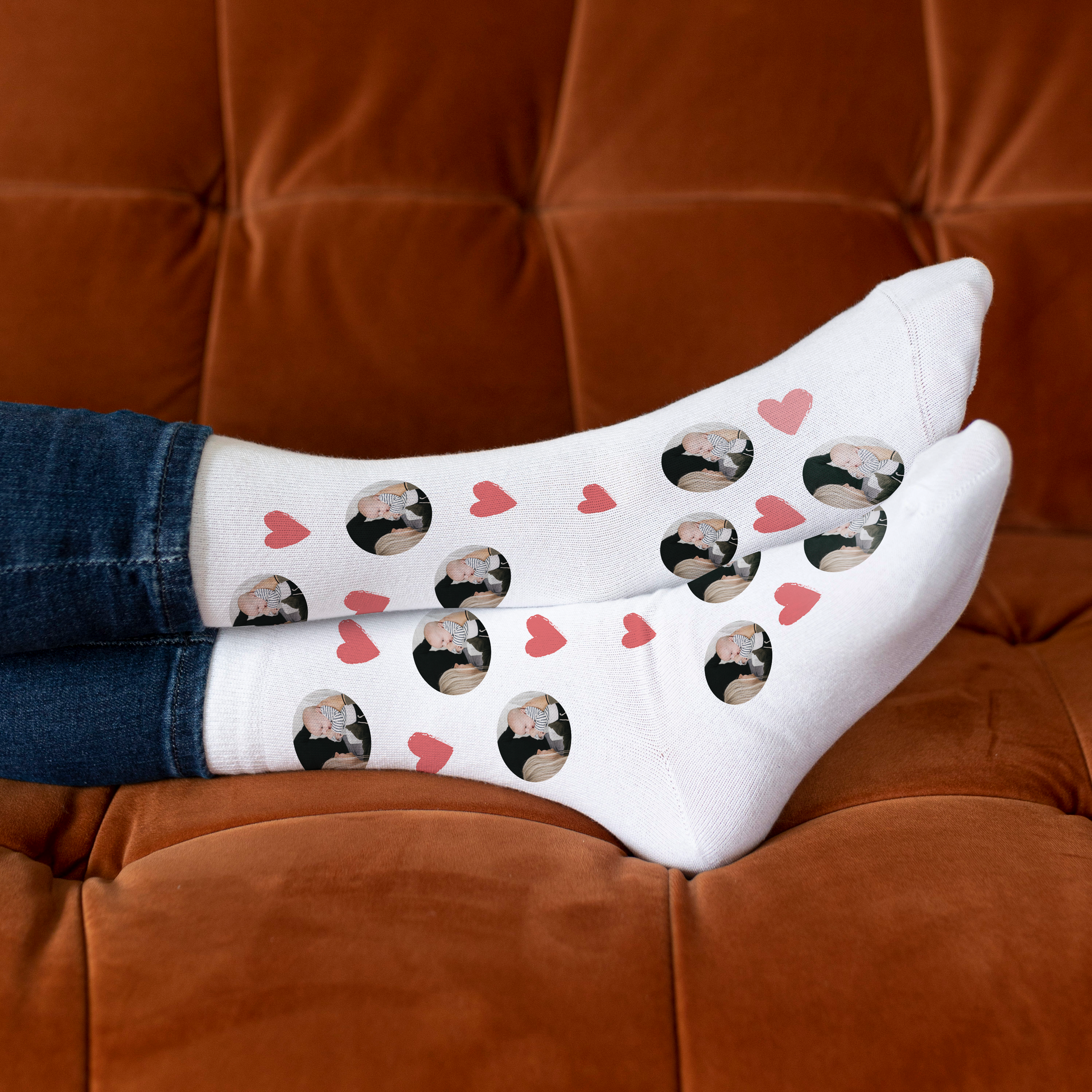 Создайте элегантный образ с помощью пары носков с принтом. По-настоящему персонализированные носки с фотографией или логотипом. Закажите прямо сейчас!