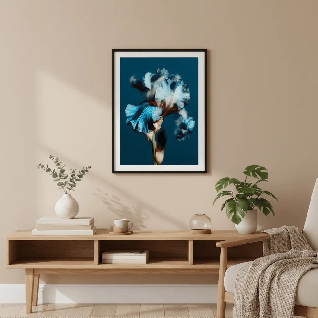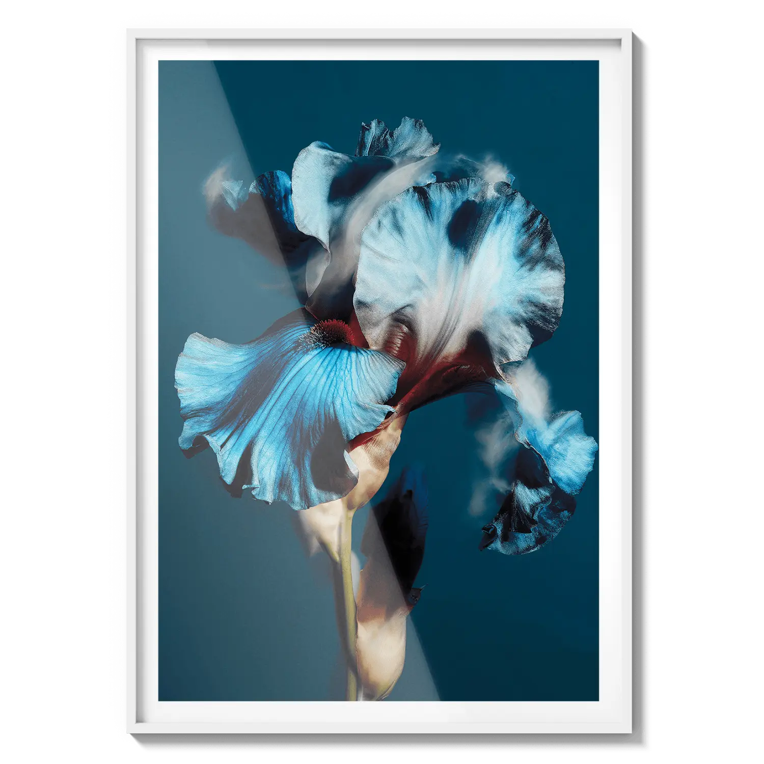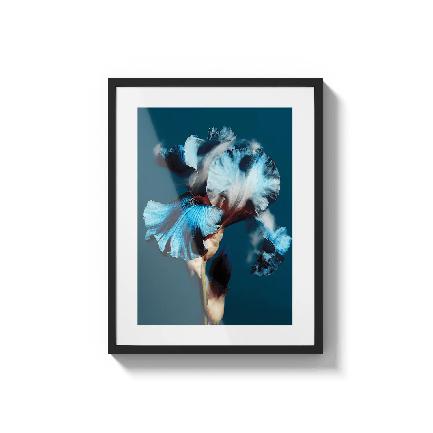 Вихревая синяя фигура, вдохновленная цветами, наполненная движением и свежестью. Яркий и воодушевляющий жест.