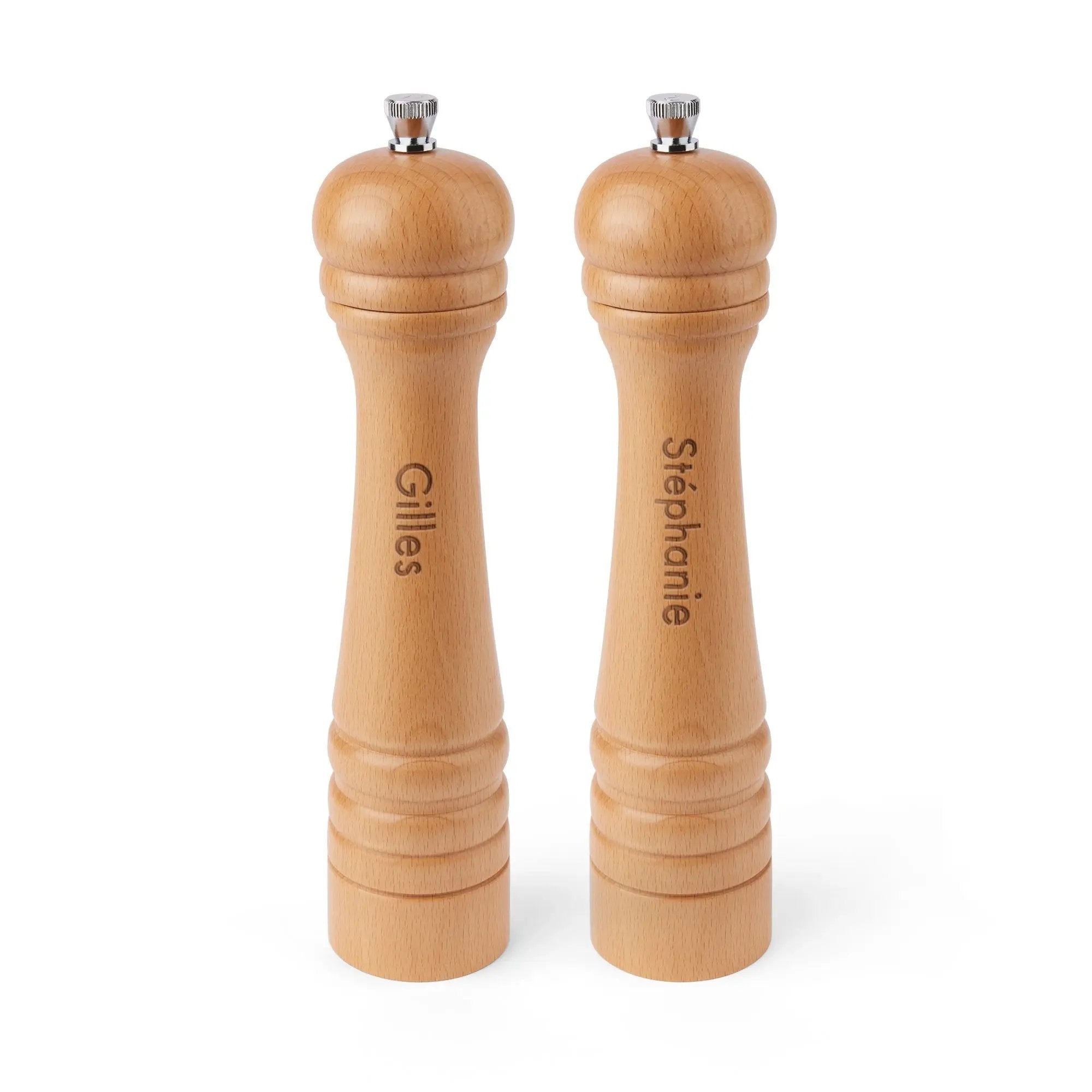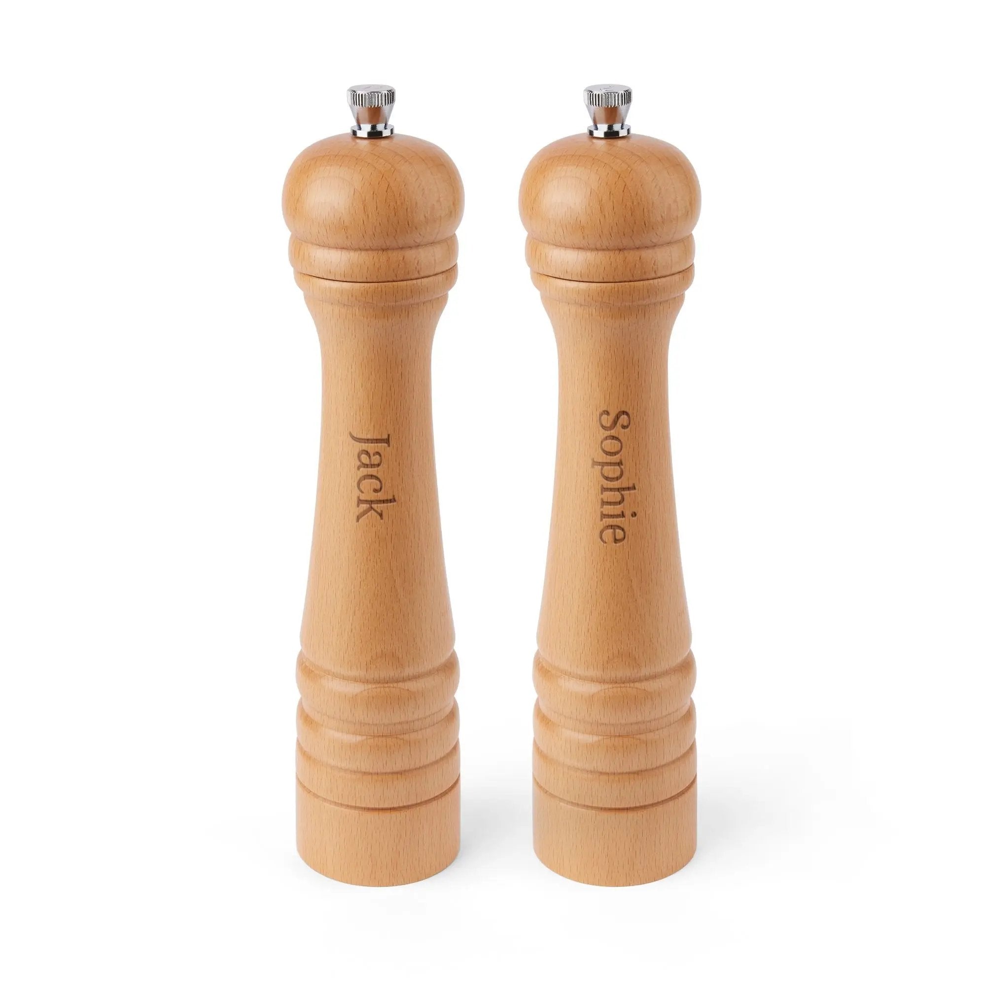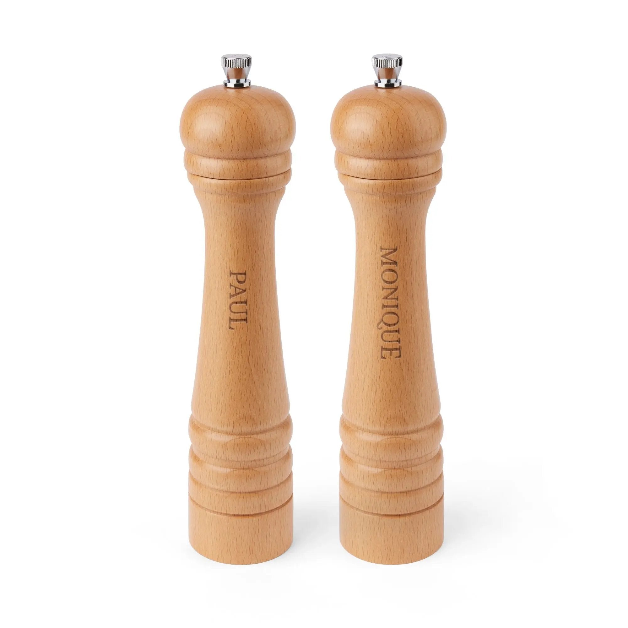 Усовершенствуйте свою коллекцию кухонной утвари с помощью нашего изысканно выполненного персонализированного деревянного мельнички для перца. Изготовленная из высококачественного бука, эта мельница выделяется своим элегантным дизайном и функциональным совершенством. С прочным механизмом помола она обещает эффективность и долговечность. Настоящим акцентом является возможность персонализации, позволяющая вам выгравировать имя по вашему выбору, добавляя очаровательный личный штрих. Идеальна как для перца, так и для соли, она является универсальным инструментом для любого шеф-повара. Утончённая натуральная отделка дополняет любой кухонный декор, что делает её отличным подарком на новоселье, свадьбы или для любителей кулинарии. Легкая в перезаправке и использовании, эта мельница сочетает в себе практичность и стиль. Обратите внимание, что из-за натурального материала древесная текстура может варьироваться, придавая уникальный характер каждому изделию. Овладейте искусством кулинарии с мельницей, которая является как свидетельством мастерства, так и персонализированным сувениром.