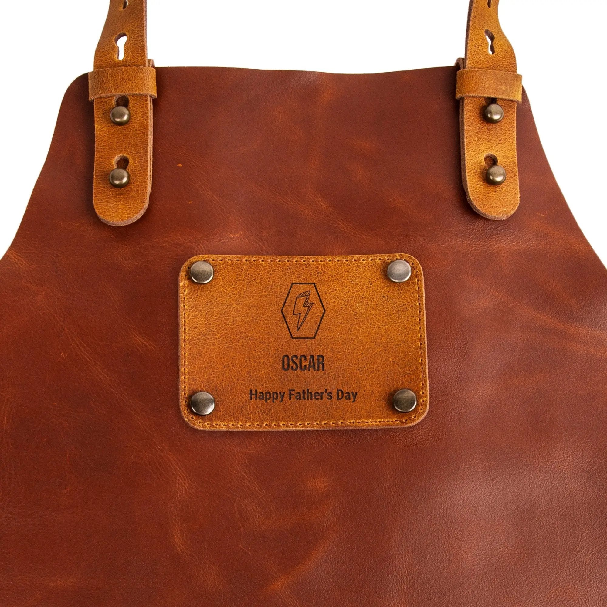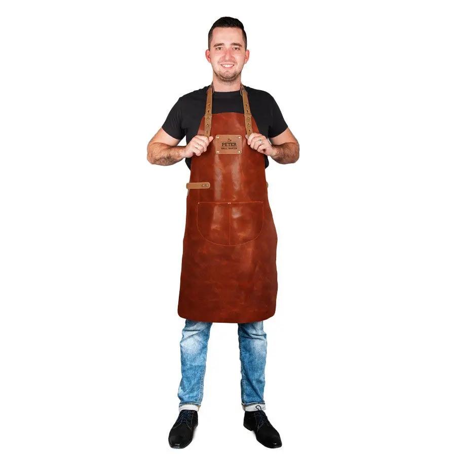 Очень стильный кожаный фартук с гравировкой уникального дизайна и имени. Этот персонализированный кожаный фартук станет отличным подарком для каждого (начинающего) шеф-повара!
