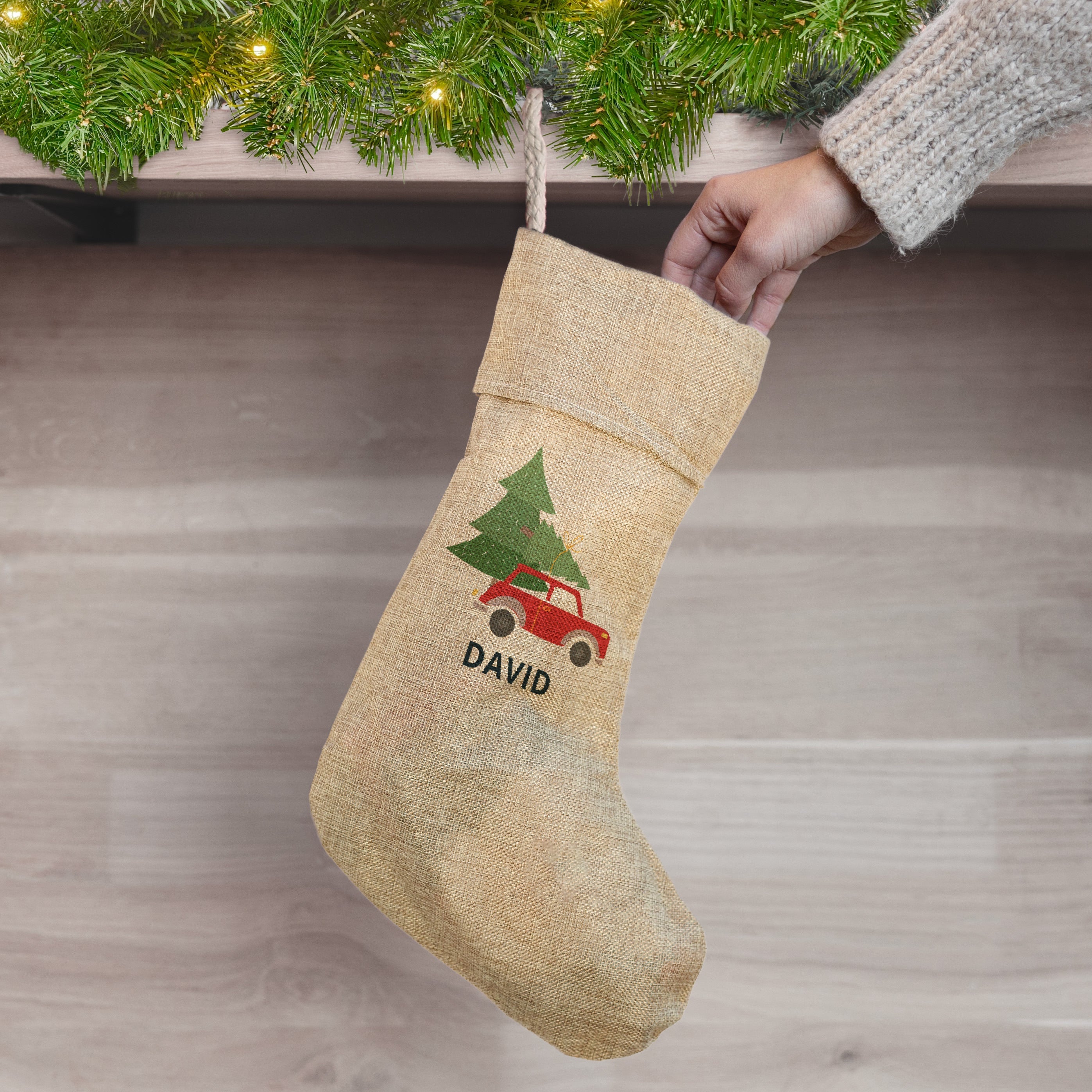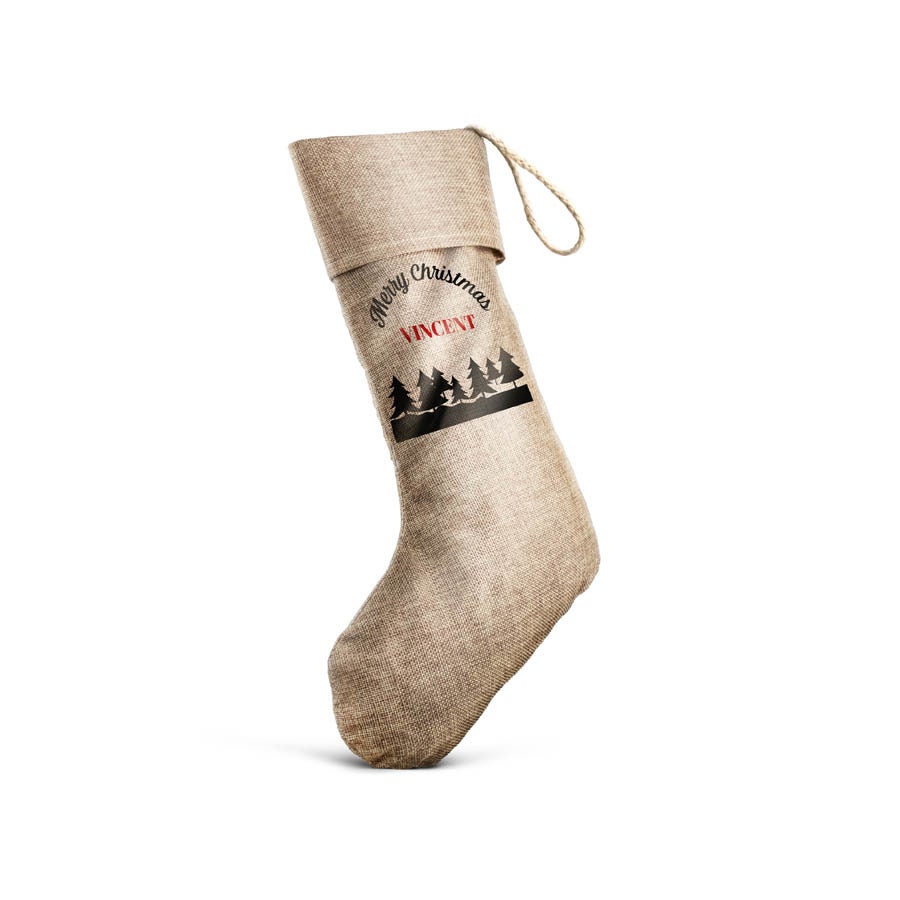 Подробнее о рождественском носке:Материал: мешковина с полиэстеровой подкладкойДлина: 44 смШирина: 17 смДлина стопы: 27 смПечать: идеальная, полноцветнаяПерсонализация: с именем или текстом