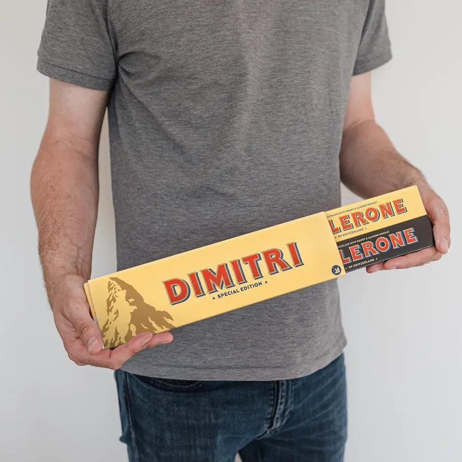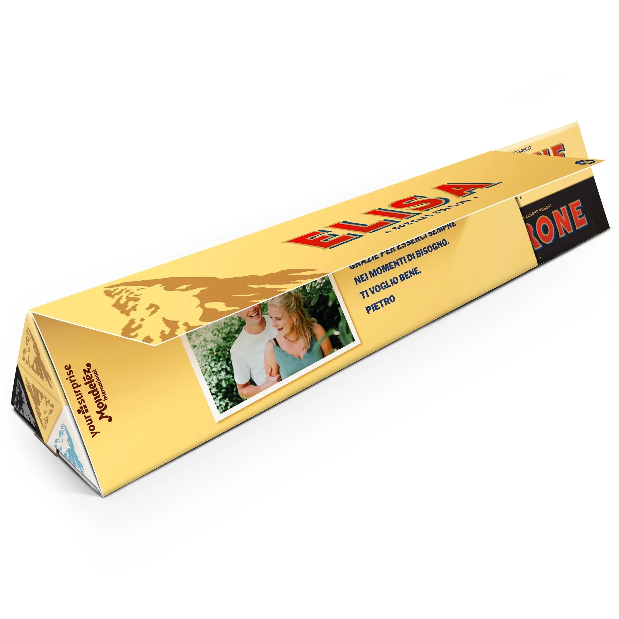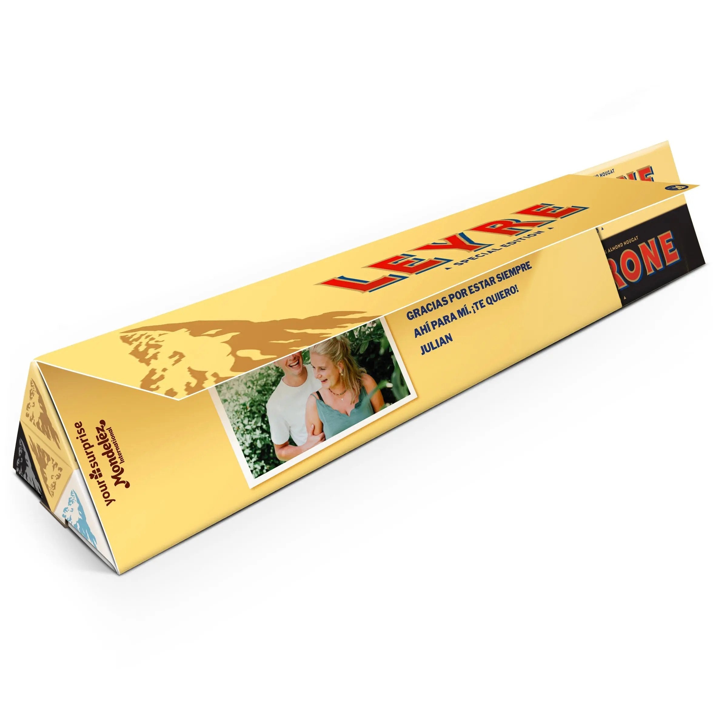 Персонализируйте огромную шоколадку Toblerone с вашим фото, именем и личным сообщением, создавая незабываемый и вкусный подарок.