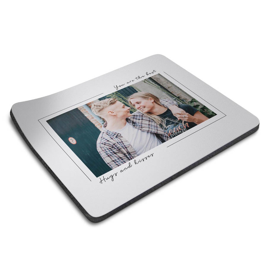 Форма: прямоугольникРазмеры: 23 x 19 x 0,5 смПерсонализация: с фотографией и/или текстомПечать: идеальная и полноцветнаяМатериал: коврик для мыши изготовлен из черной резины и имеет белый слой полиэстера сверхуДополнительно: с нескользящей основой