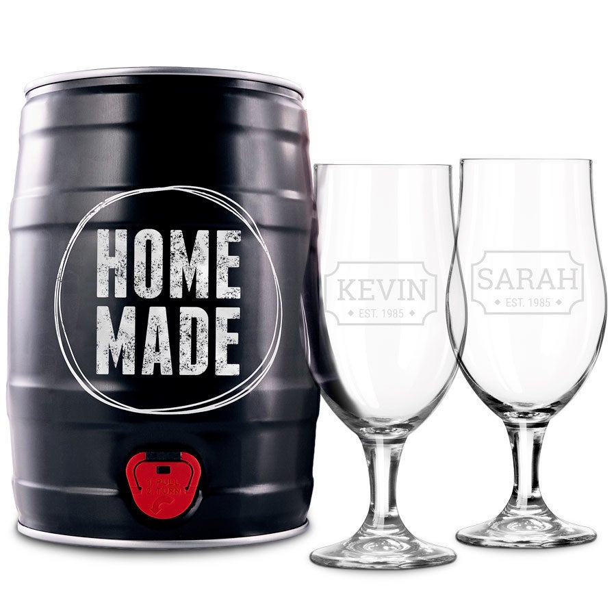 Заварите пиво самостоятельно с помощью этого персонализированного набора для домашнего пивоварения, включающего два роскошных пивных бокала!