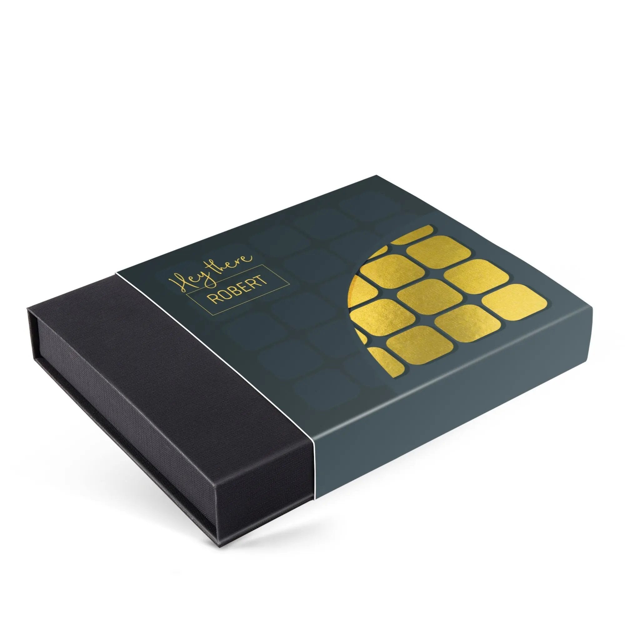 Подробнее о роскошной подарочной коробке из шоколада: Шоколад: ручной работы Количество конфет: +/- 36 Размеры: 21,5 x 21 x 3,7 см / 8,5" x 8,3" x 1,5" Персонализация: фотография и/или текст, напечатанные в цвете по всей упаковке Вкусы: от экзотического гибискуса и апельсина до традиционного пралине и карамели Обратите внимание, что некоторые шоколадные конфеты содержат алкоголь Состав: сахар, какао-масло, какао-тертое, сухое молоко, сливки, глюкозный сироп, масло, фундук, миндаль, арахис, кофе, чай, различные ароматизаторы, алкоголь, специи, цукаты, кокос, воздушный рис, мед, имбирь, эмульгатор (соевый лецитин), ваниль (в разных количествах). Информация об аллергенах: содержит молоко/лактозу, орехи, сою, Арахис. Подробнее о шоколаде Geruba: Geruba работает исключительно с шоколадом Callebaut, Belcolade и Valrhona, сертифицированным UTZ. Благодаря тщательному контролю каждого этапа производства шоколада, шоколад отличается высочайшим качеством. Сертифицированный UTZ шоколад производится фермерами, которые заботятся о своем сообществе и окружающей среде, обладая опытом и знаниями, необходимыми для полного цикла производства – от бобов до шоколада. Этот шоколад обрабатывается с заботой, энтузиазмом и мастерством.