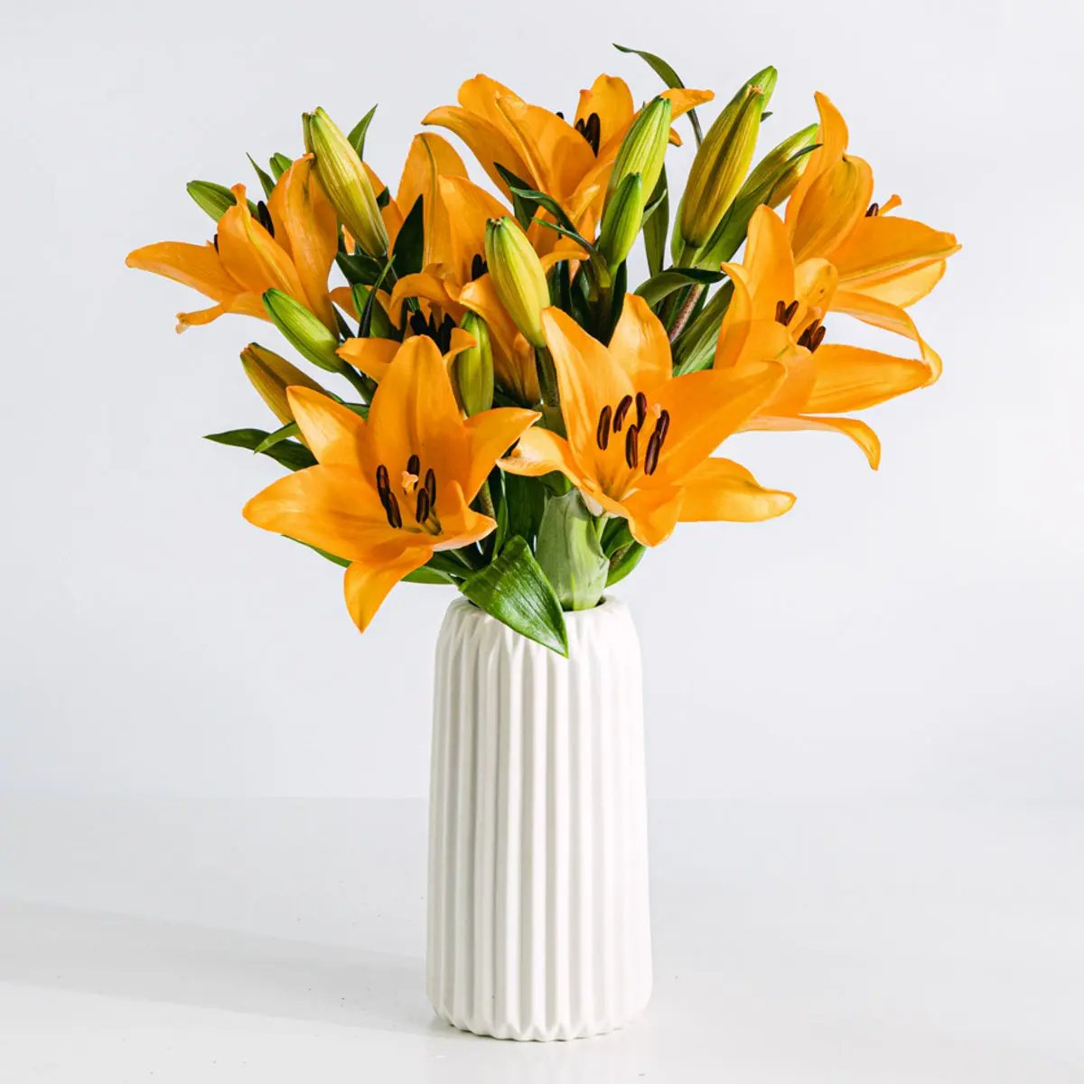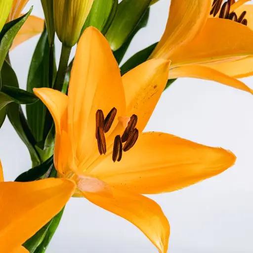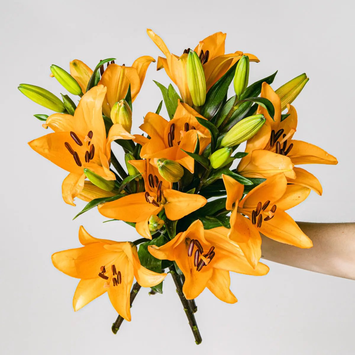 Отпразднуйте любой великий момент в вашей жизни с любимыми и в компании крупных цветков оранжевой азиатской лилии, широкие лепестки которой говорят о любви, преданности и интенсивности, с которой мы беремся за любую задачу. Идеально подходит для... Признания приложенных усилий.