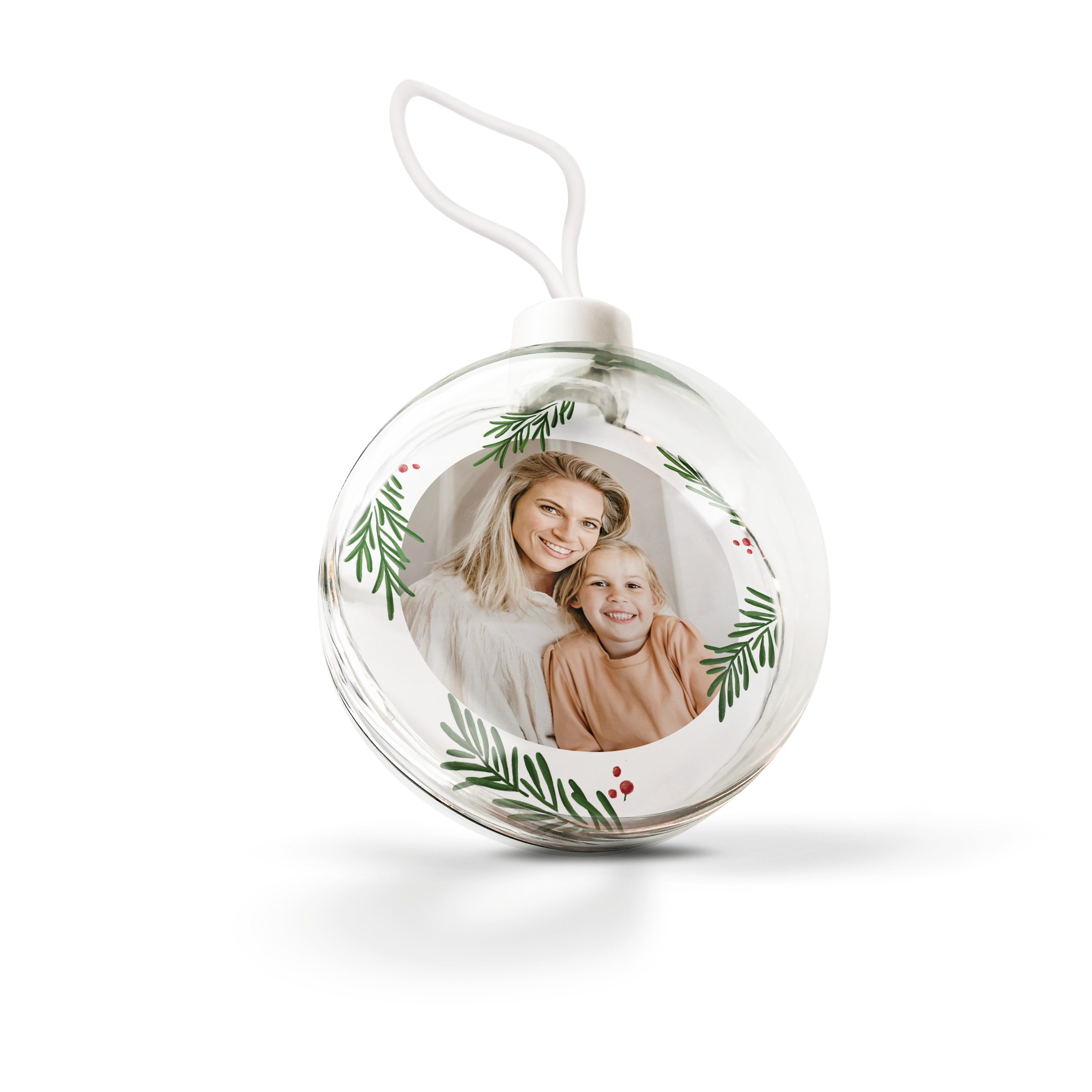 Подробнее о прозрачных рождественских шарах:Количество: 1Размеры: Ø 8 смМатериал: высококачественный синтетический материалЦвет: прозрачныйПерсонализация: с фотографией и/или текстомРазмещение персонализации: двусторонняя, внутри рождественского шараПечать: идеальная, полноцветная