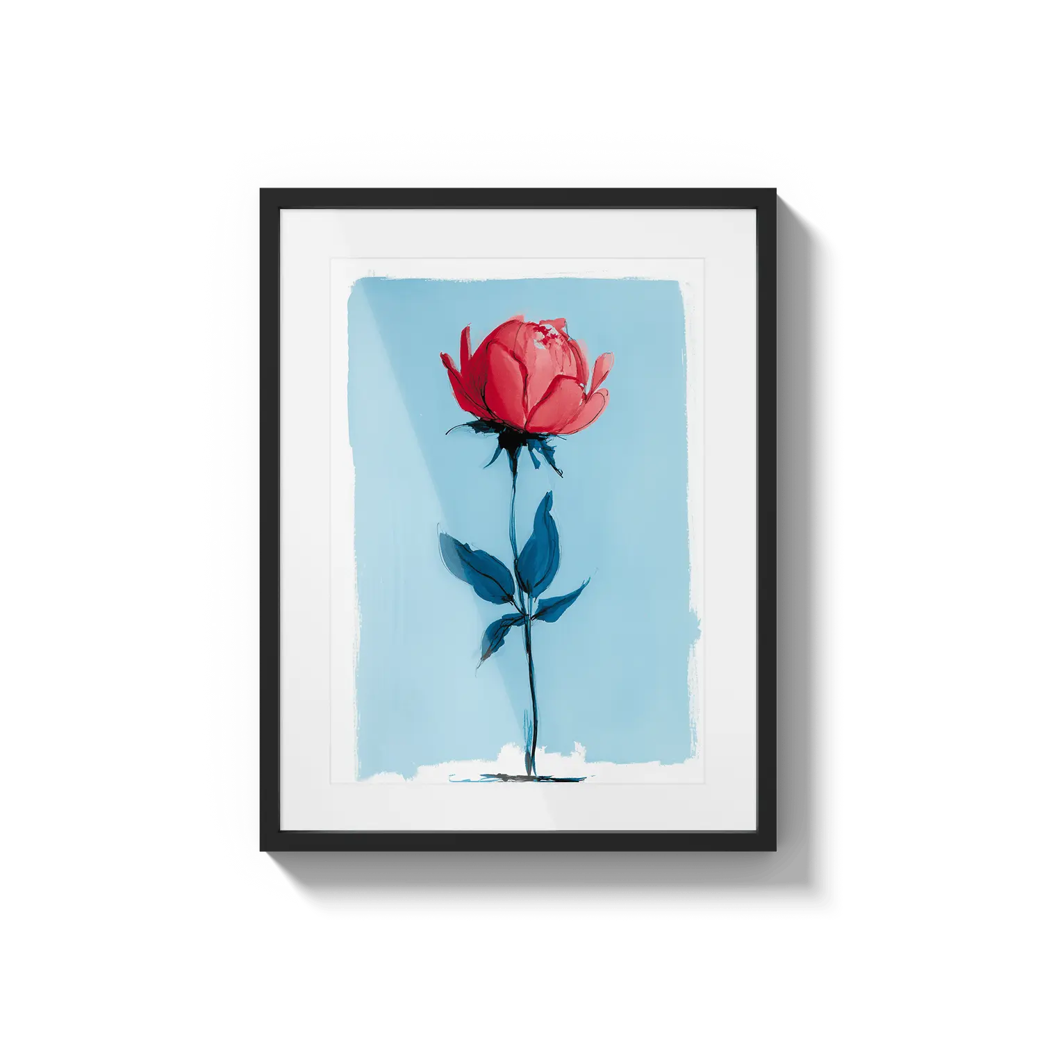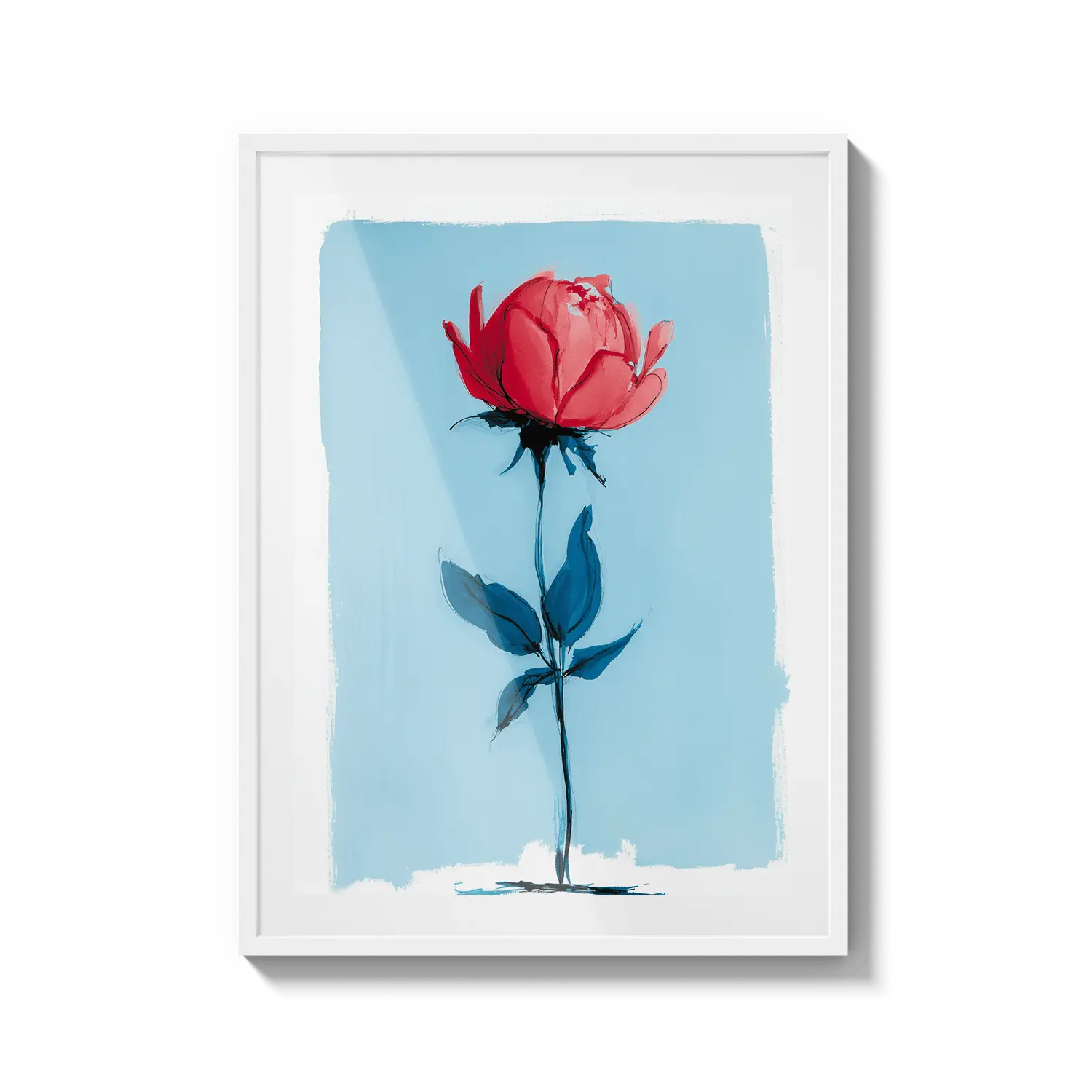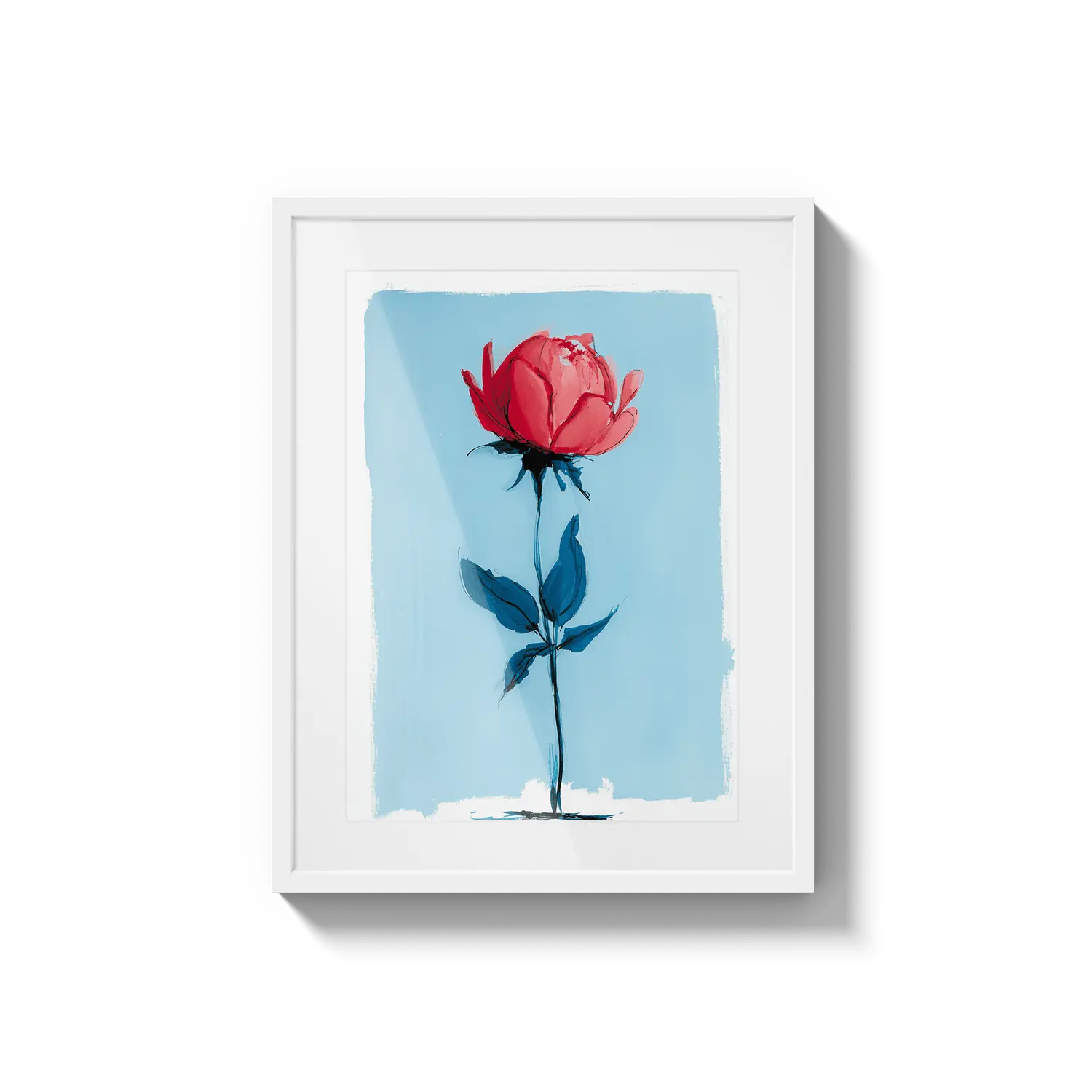 Минимальная роза, стоящая с нежной силой на нежно-голубом фоне. Нежный подарок, говорящий о тихой красоте.