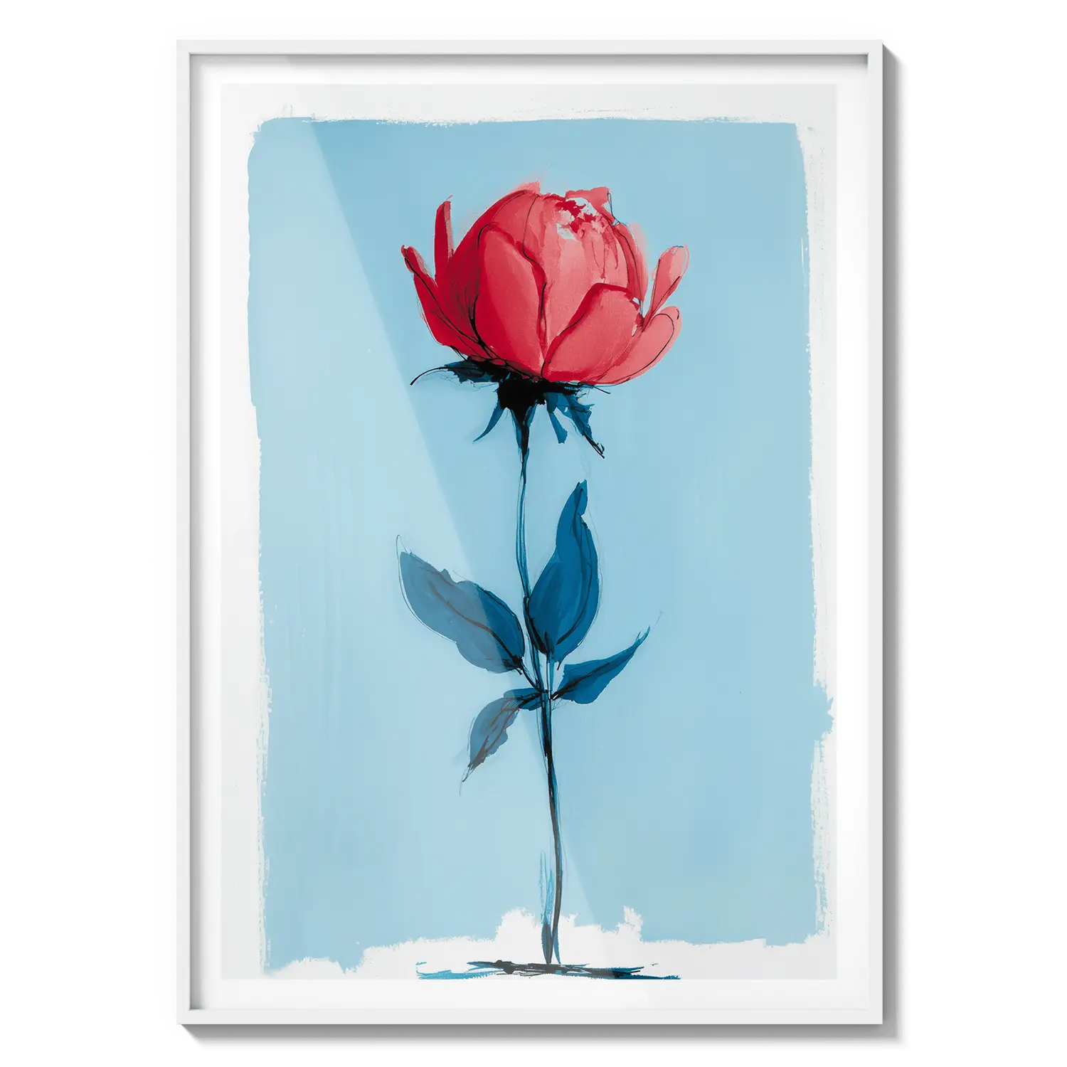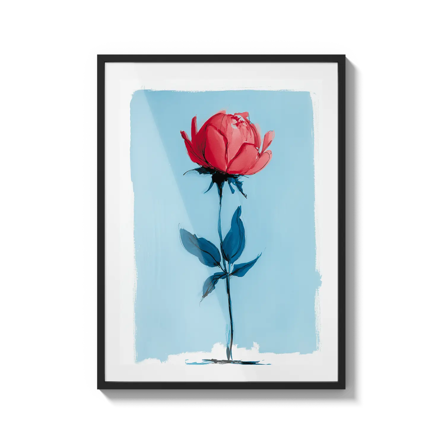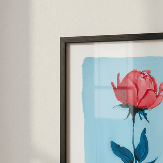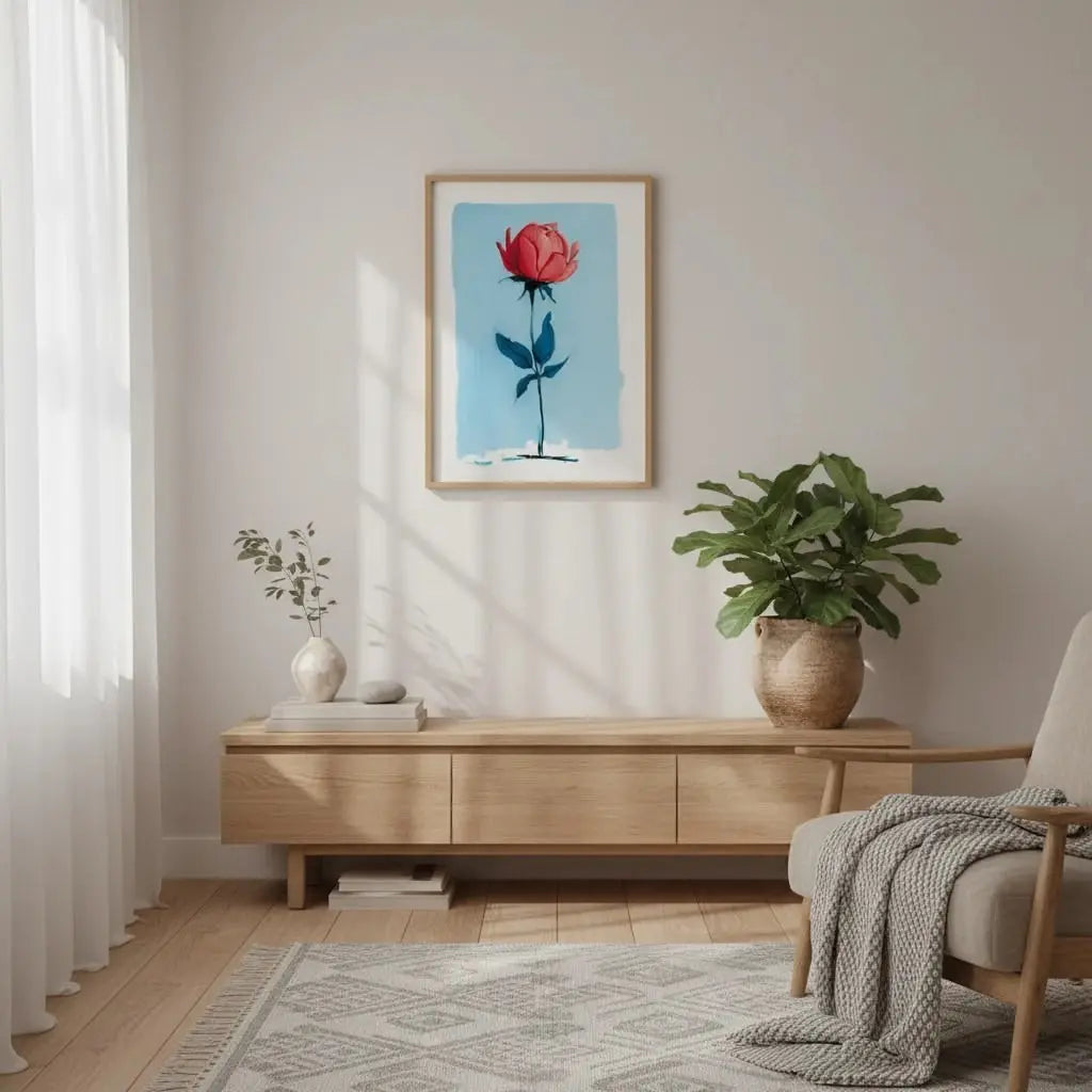 Минимальная роза, стоящая с нежной силой на нежно-голубом фоне. Нежный подарок, говорящий о тихой красоте.