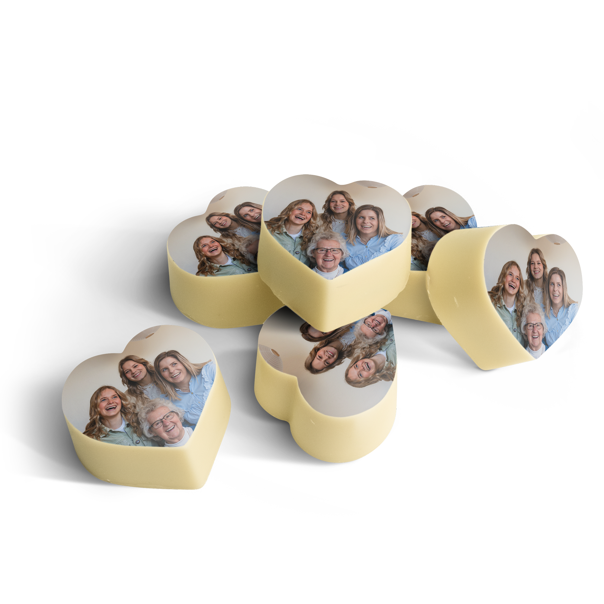 Дополнительная информация о персонализированных шоколадных конфетах в форме сердца:Количество: набор из 24 конфетШоколад: молочный шоколад со слоем белого шоколада сверхуФорма: в форме сердцаРазмеры одной конфеты: 2,7 x 1,6 см, могут незначительно отличаться для каждой шоколадкиНачинка: пралинеПерсонализация: печать с помощью фотографии или логотипаПечать: съедобная печать в полном цветеПри температуре наружного воздуха 25 градусов Цельсия или выше мы не сможем гарантировать качество шоколада.Важно: Невозможно использовать разные фотографии для каждой отдельной конфетыСовет по хранению: Можно хранить до 10 недель в прохладном, темном месте при температуре от 14 до 18 °C. Информация об аллергенах: содержит сою, молоко и может содержать следы орехов и глютена. Состав: шоколадные конфеты пралине с фундуковой начинкой и съедобной печатью: сахар, фундук, какао-масса, какао-масло, сухое цельное молоко, эмульгатор (соевый лецитин), натуральный ванильный ароматизатор. Съедобная печать: кукурузный крахмал, модифицированный крахмал: E1422, картофельный крахмал, вода, сухой куриный белок, сухое обезжиренное молоко, оливковое масло, соль, увлажнитель: E422, эмульгатор: E433, красители: E102, E110, E122: может отрицательно влиять на активность или концентрацию внимания у детей, E133, E151. Покрытие: E904.
