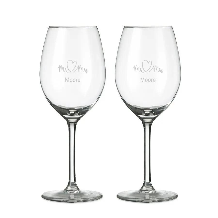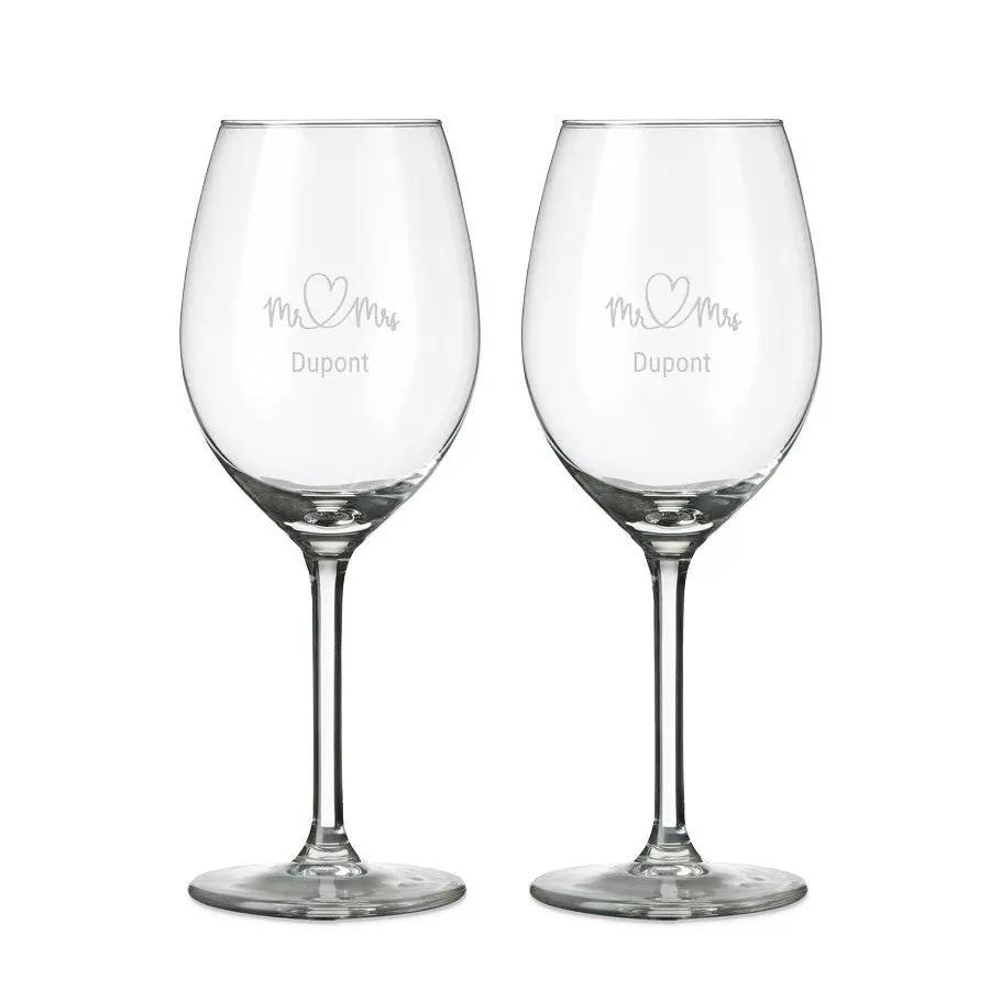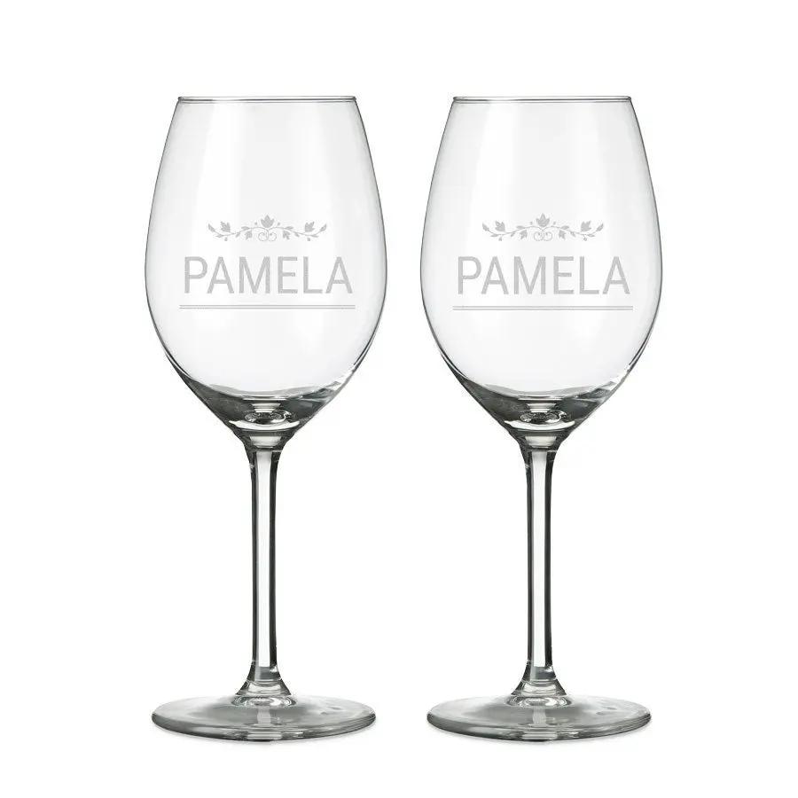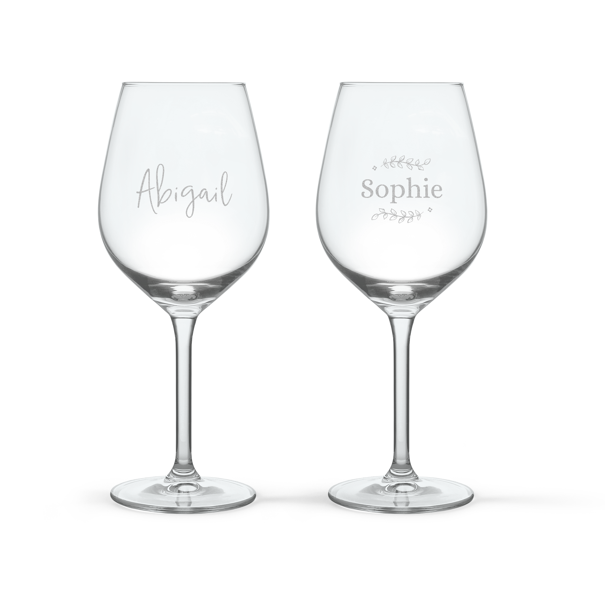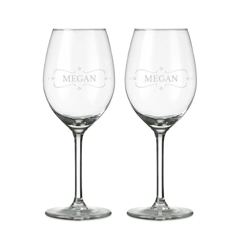 2 красивых бокала для вина с гравировкой вашего текста или имени.