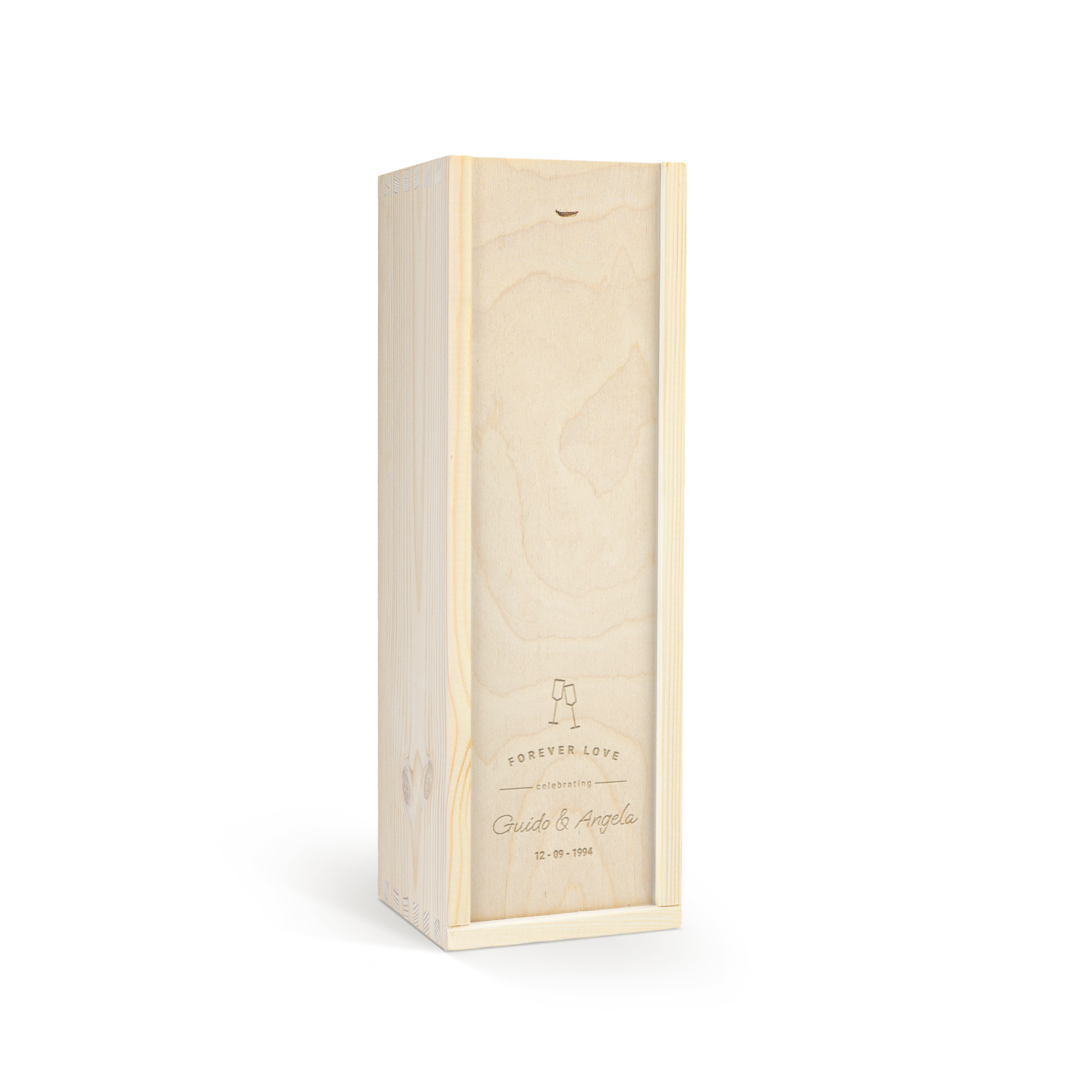 Подробнее об этом деревянном футляре:Подходит для одной стандартной бутылки объёмом 750 мл. Персонализация: именем или текстом. Место персонализации: на крышке. Способ персонализации: высококачественная гравировка. Внешние размеры: 36,5 x 12 x 11 см. Внутренние размеры: 34 x 9,5 x 9 см. Размеры крышки: 35,6 x 10,2 x 0,3 см. Дополнительно: стильная съёмная инкрустация. Изготовлен из сертифицированной FSC древесины. Дерево — натуральный продукт. Поэтому ваш подарок может незначительно отличаться от представленных на сайте образцов.